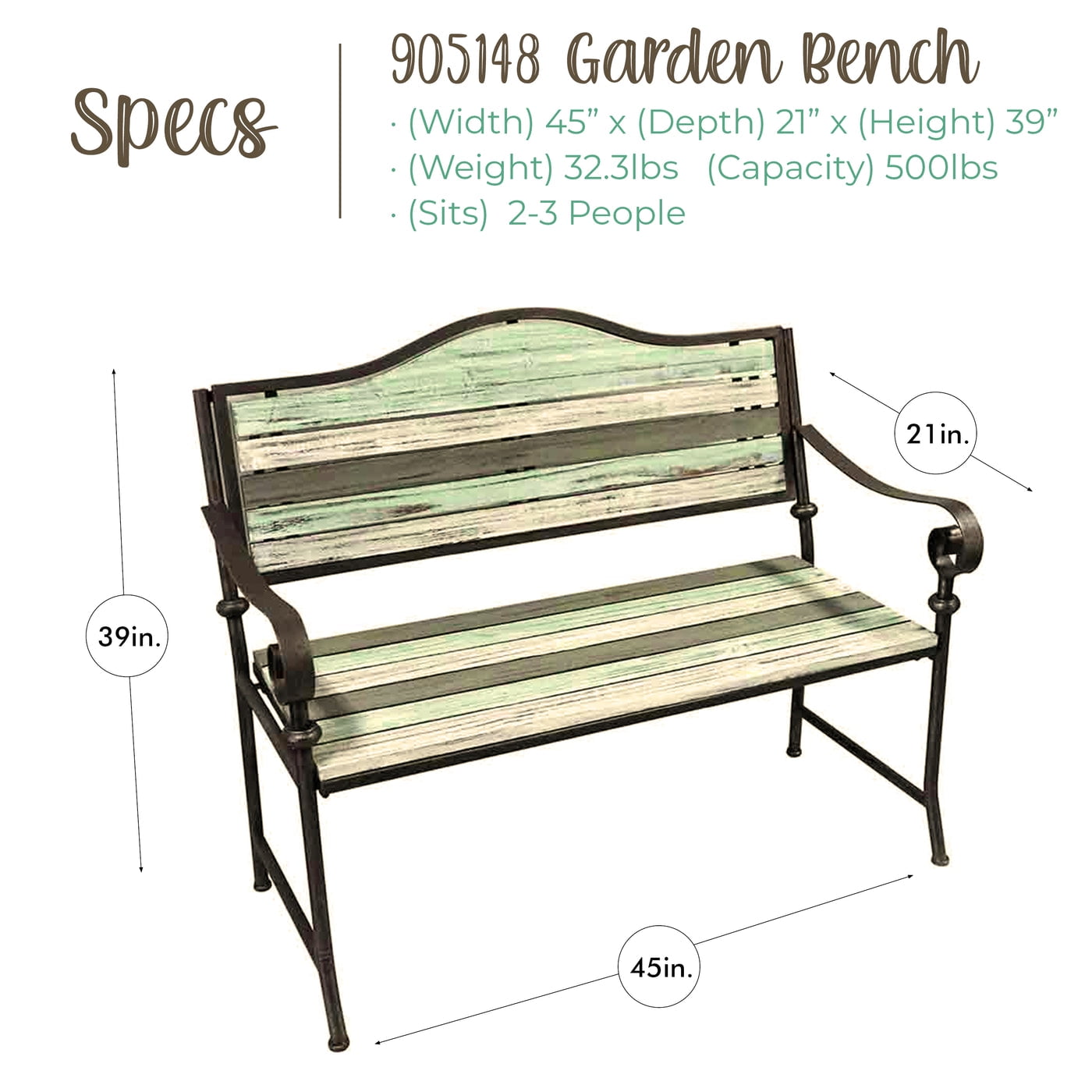OUTDOOR GARDEN BENCH – Outdoor Garden Bench – In Rustic Farmhouse Colors – Cream, Brown, Teal VERSATILE PLACEMENT – Ideal for Garden, Yard, Patio,or Deck DURABLE CONSTRUCTION – Strong Metal Frame with a Brushed Finish in Teal, Cream,Brown PRACTICAL SIZE – Perfect Size To fit In Any Space SPECS – 45 x 21″ x 39″- 32.3 LBS – Weight Capacity 550 LBS EASY SETUP – Easy To Follow Instructions Included