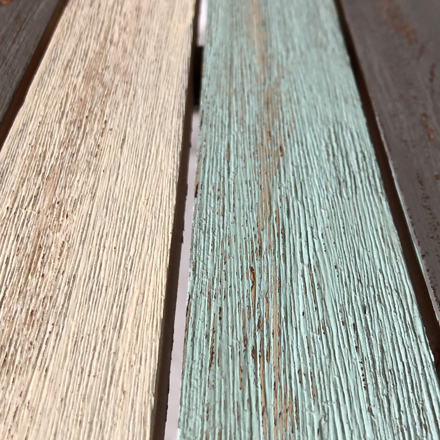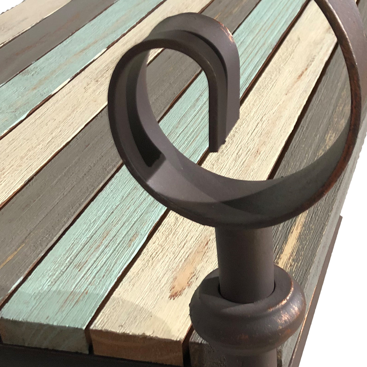 Backyard Expressions Rustic Outdoor Steel and Wood Slat Patio Bench – Blue, Cream and Grey