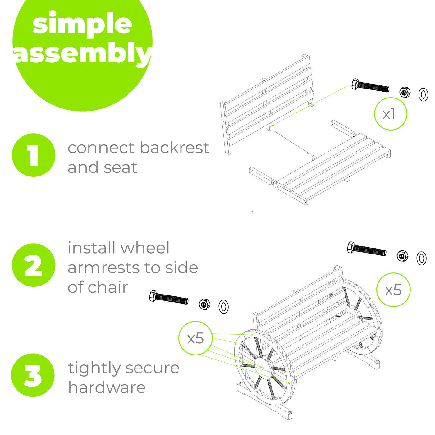 WESTERN OUTDOOR/INDOOR ADIRONDACK CHAIR | Easily make your patio, garden, or other outdoor area inviting and useful with this well-constructed, comfortable adirondack arm chair Burnt Look Wood Finish with Natural Wood Knots and Natural Wood Grain Make This Outdoor Bench Visually Appealing Recommended Weight Capacity 275 Lbs Wood Slatted Backrest and Seat and Wagon Wheel Armrests | Adding This Gem to Your Outdoor Furniture will Definitely Be A Conversation Piece Constructed of Solid Fir Hardwood and Treated With Water Resistant Formula For Added Protection; Made To Lasts Years; Instructions and Hardware Included