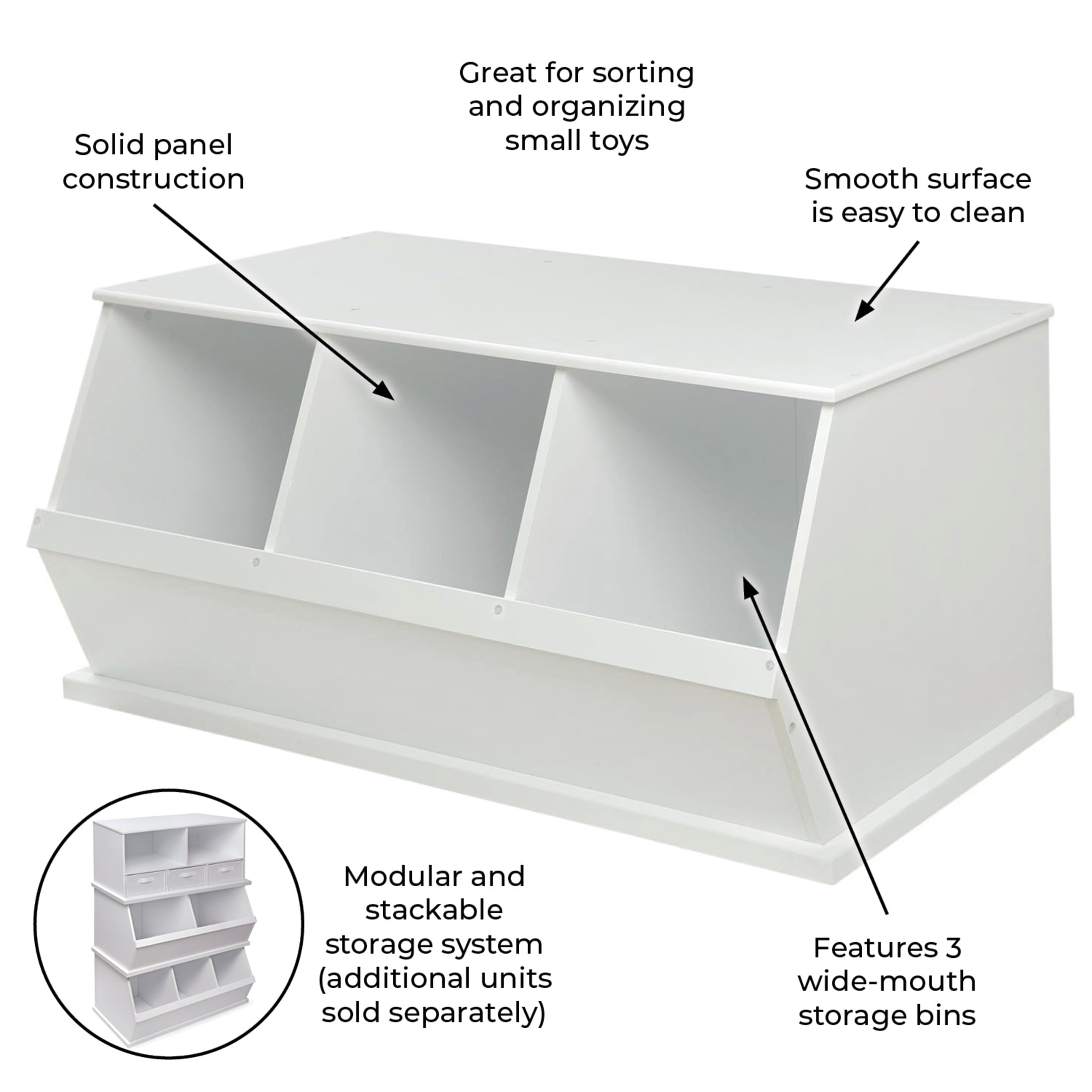 Badger Basket Children’s 3-Bin Stackable Wooden Storage Cubby 5.2 Cu ft.- White