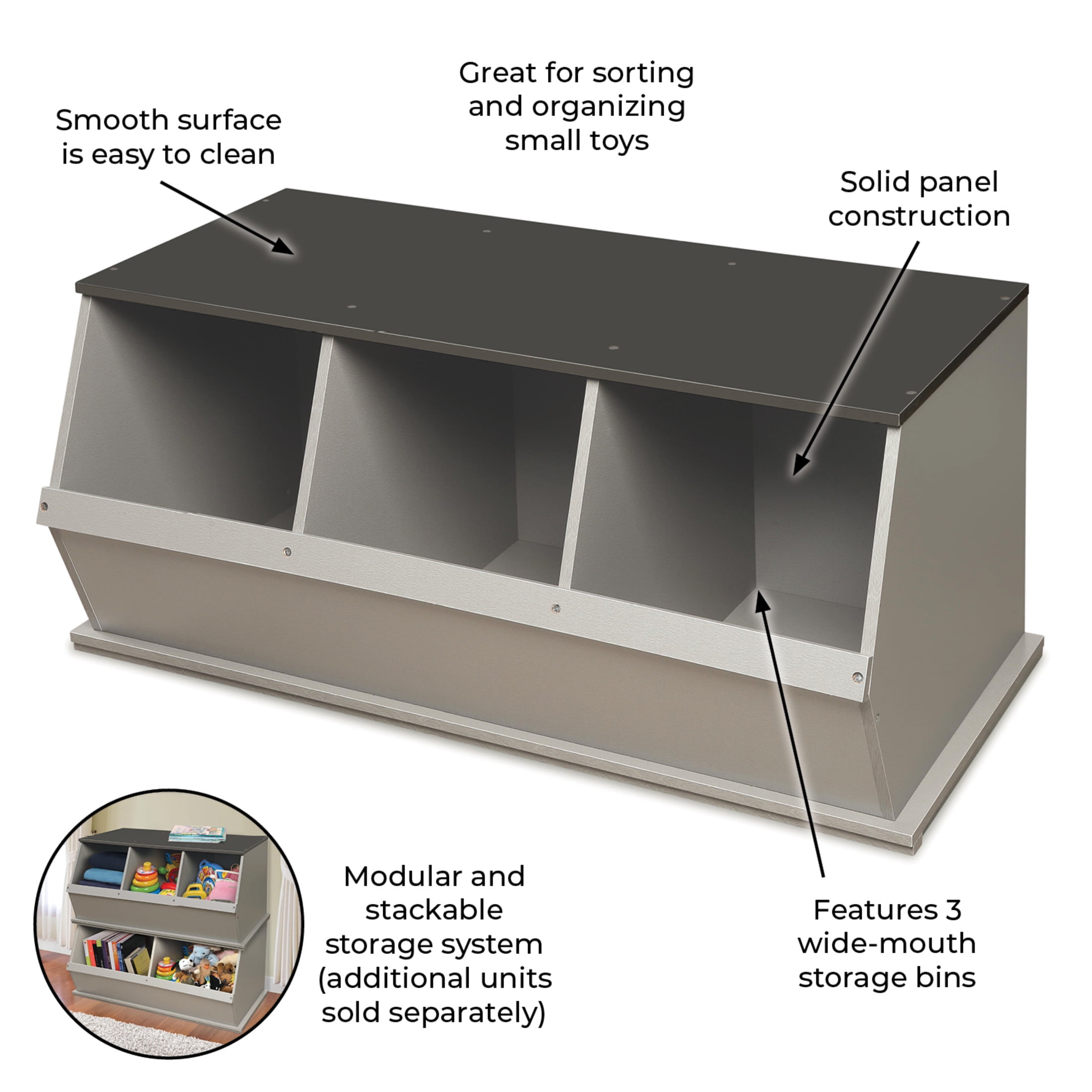 Badger Basket Children’s Stackable Wooden 3-Bin 33 gal Toy Storage Cube, Woodgrain Gray
