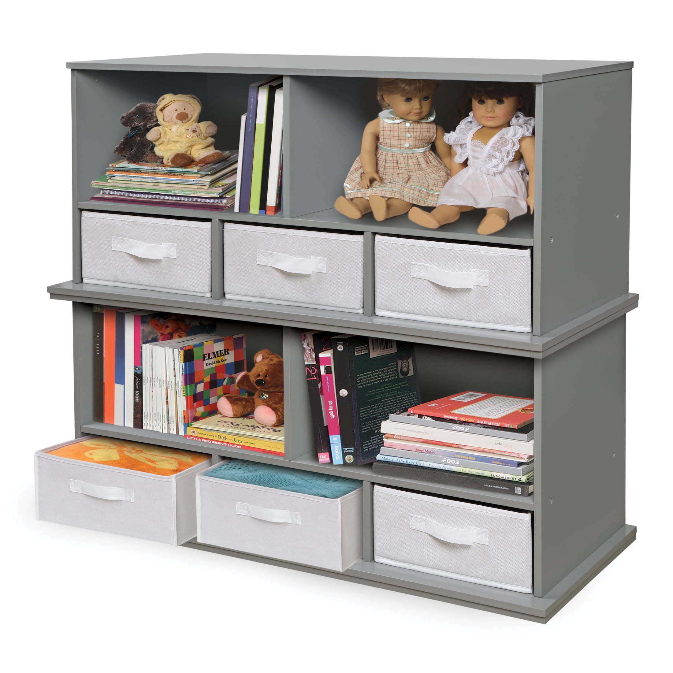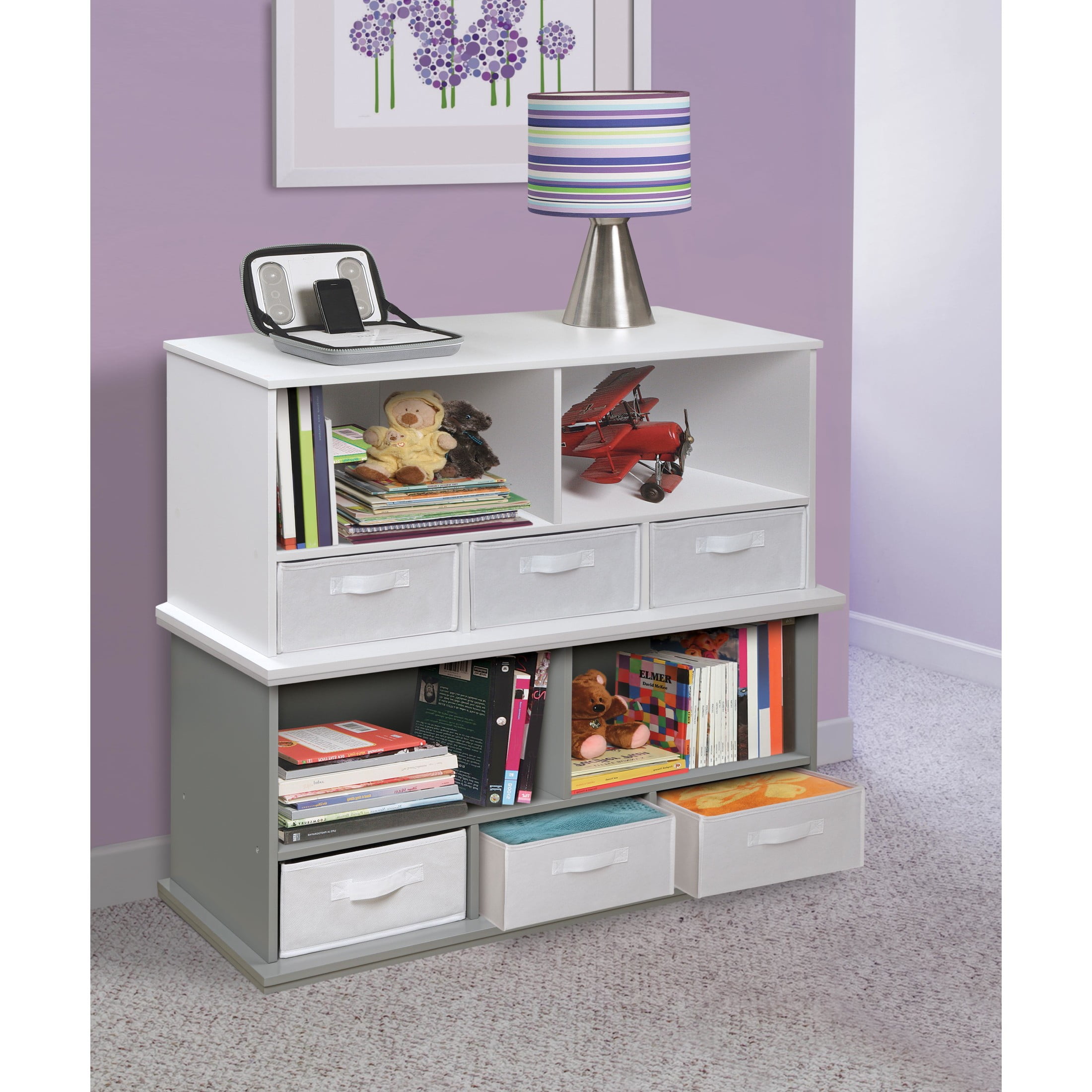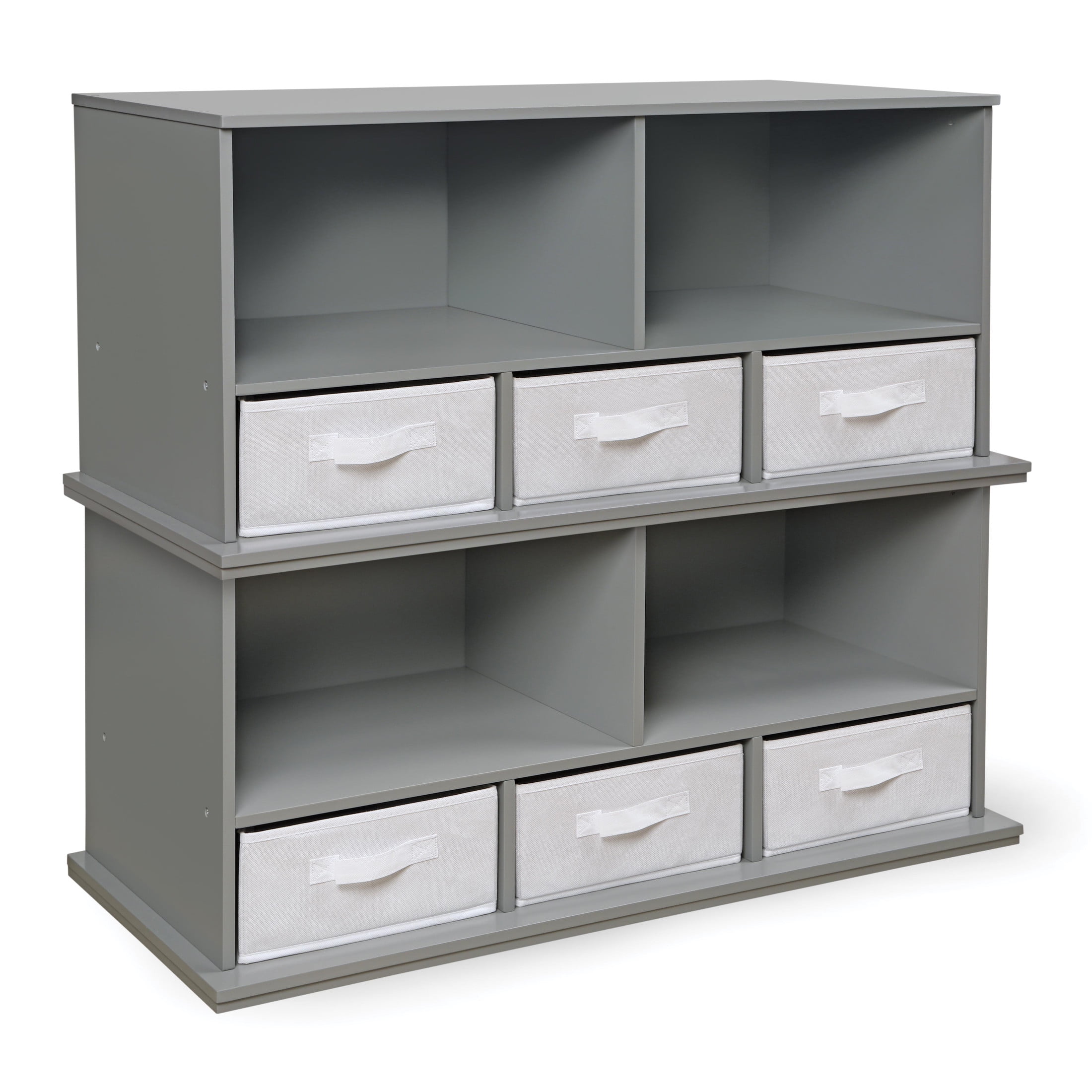 Make sure everything in your home, has a home of its own! Badger Basket’s Storage Cubby with three baskets can be stacked, paired, mixed, and matched; allowing you to build the perfect storage solution to fit your needs. This versatile storage unit features a pair of open storage compartments that sit above a trio of baskets that each have a cubby of their own. This unit is ideal for children as it offers plenty of storage at a height that any child can navigate. Perfect for sorting and organizing toys, crafts, and more. Solid panel construction. Baskets are fully removable. Wipe and spot clean. Overall size 37 inches L x 16.5 inches W x 17.25 inches H. Adult assembly required. Can be stacked with coordinating Badger Basket modular storage furniture (sold separately).