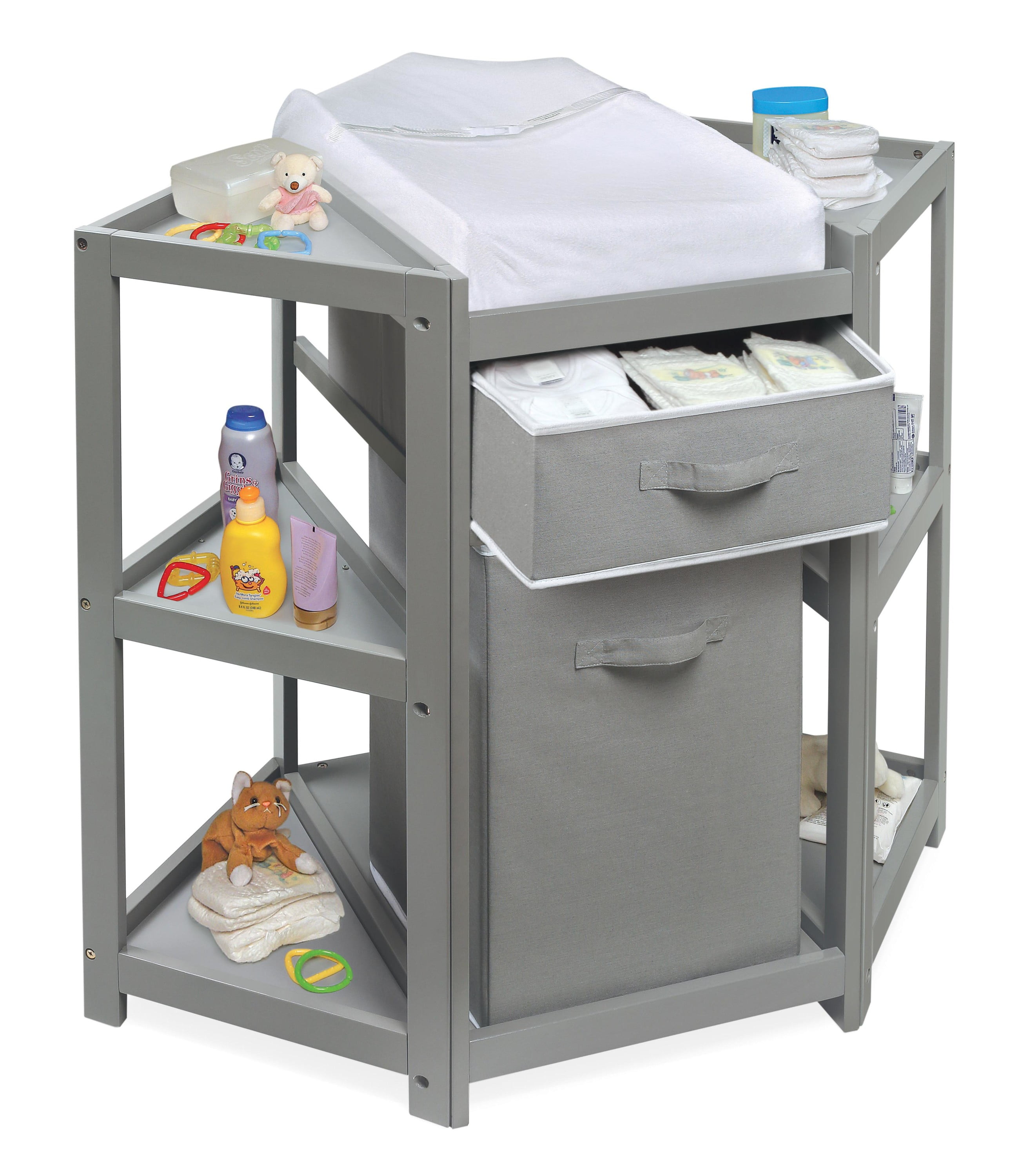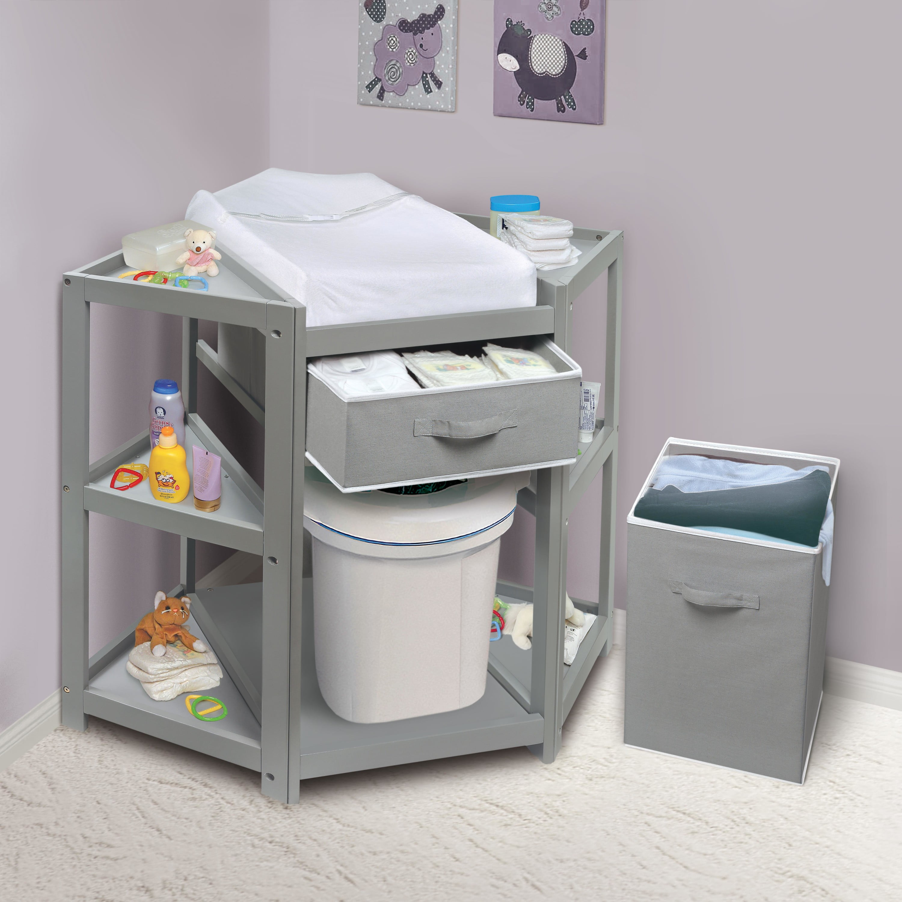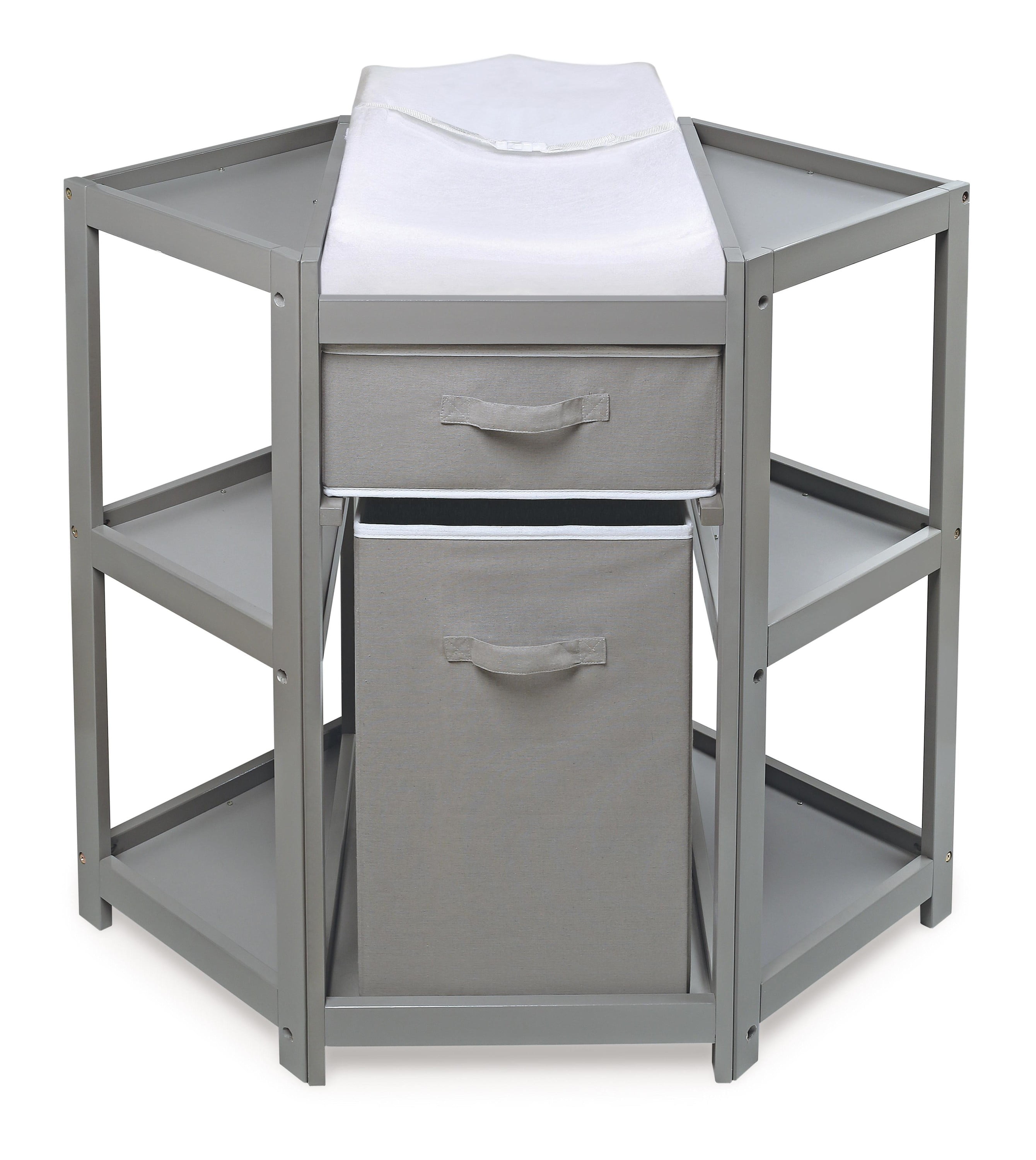 Badger Basket Diaper Corner Baby Changing Table with Hamper and Basket – Gray