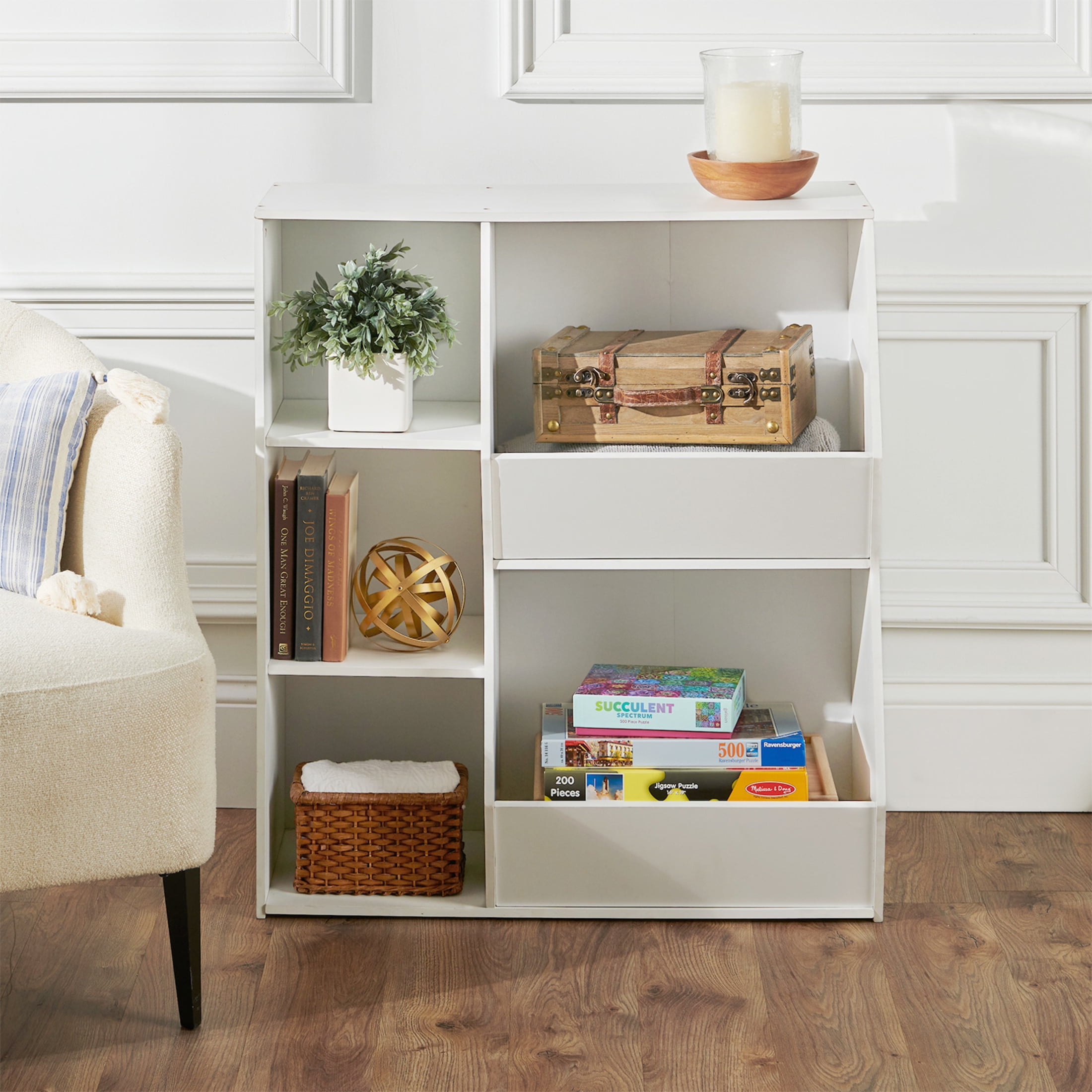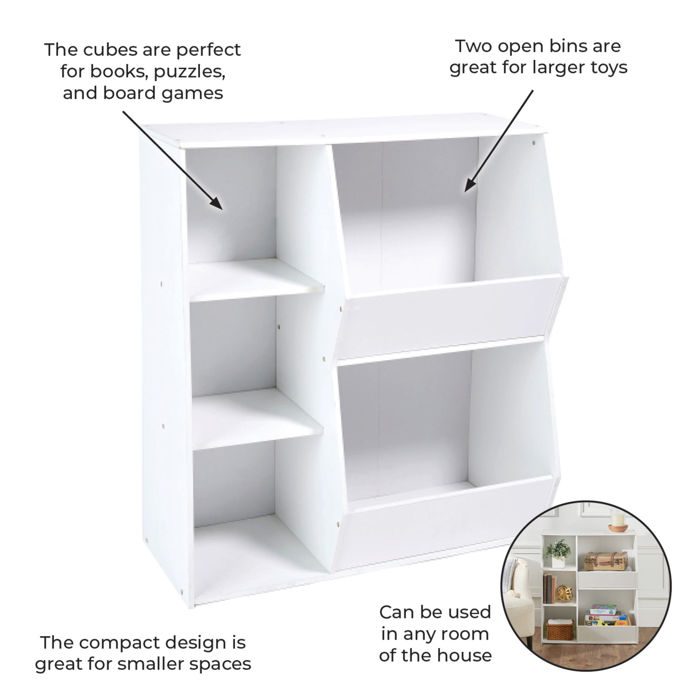Badger Basket Side-by-Side Children’s Combo Bin Wood Toy Storage Bookshelf with 5 Cubbies 7.7 Cu ft. – White