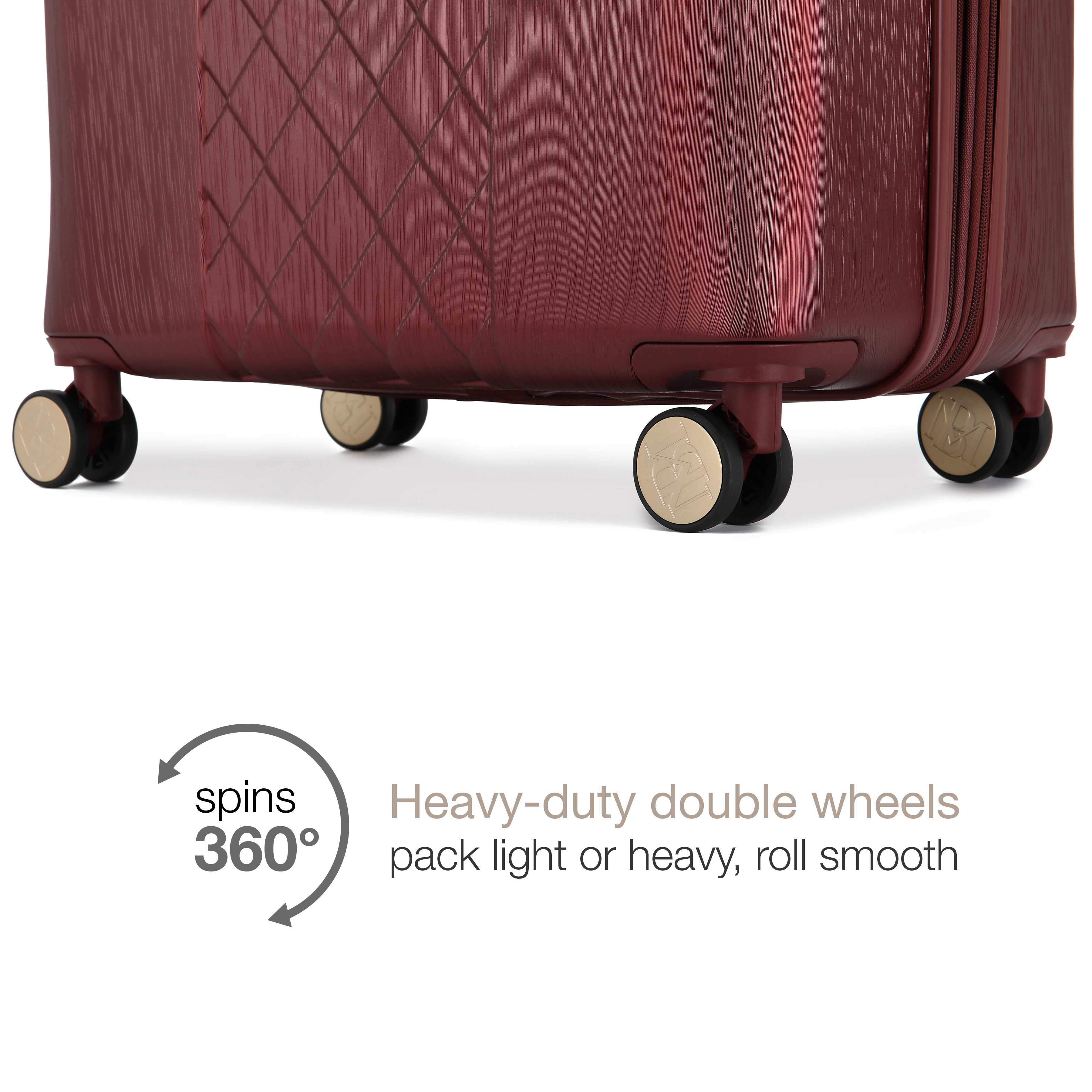 The Diamond collection is made for travelers with a bold sense of style. This beautifully designed luggage stands out with its distinct panel design that offers style and storage for every trip. Made from thick ABS which makes it durable and lightweight. A multi-level trolley system that provides strength and lightness. Eight spinner wheels that roll smooth, and allows for heavyweight handling. The luggage is 25% expandable for more packing capacity. Interior features Separate compartments. Zipper mesh pocket. Small zipper pocket. Compression straps. Interior dimensions Small 20″ x 9″ x 14″ Medium 24″ x 11″ x 17″ Large 28″ x 12″ x 19″ Overall dimensions (Includes wheels and handles) Small 22″ x 9″ x 14″ 6.6 lbs Medium 26″ x 11″ x 19″ 8.5 lbs Large 30″ x 12″ x 21″ 10.7 lbs BADGLEY MISCHKA Vogue has hailed Mark Badgley and James Mischka as one of the “Top 10” American Designers and as the darlings of the Hollywood set. The design duo has made their mark over the past three decades with glamorous, stylish and wearable evening wear and accessories.