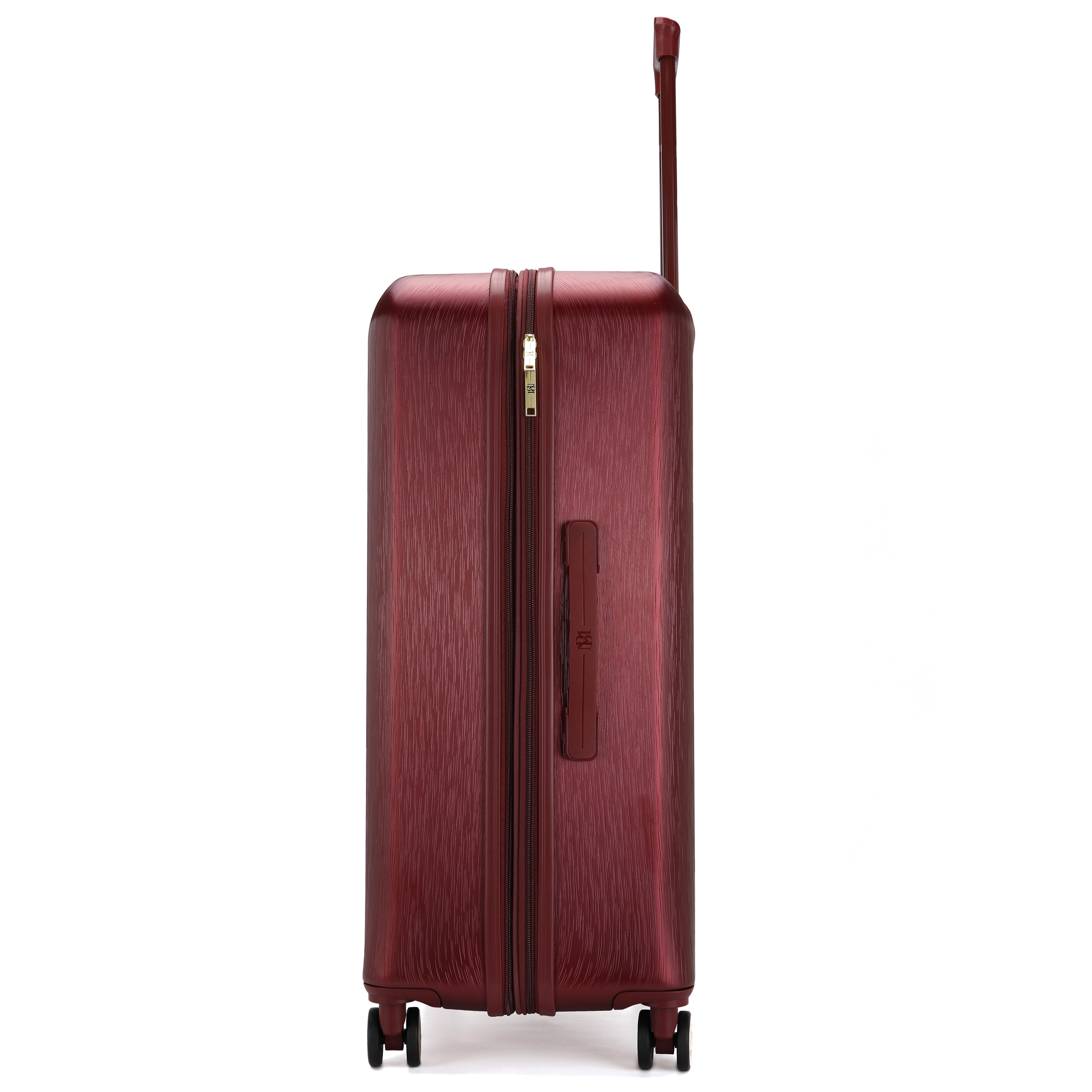 Made from thick ABS which is both durable and lightweight The multi-level trolley system is made for comfort and strength 8 spinner wheels that roll smooth, allowing the luggage to handle heavy weights Interior includes separate compartments, a mesh pocket, a small pocket, and elastic straps The luggage is expandable for more packing capacity, allow yourself to go wild