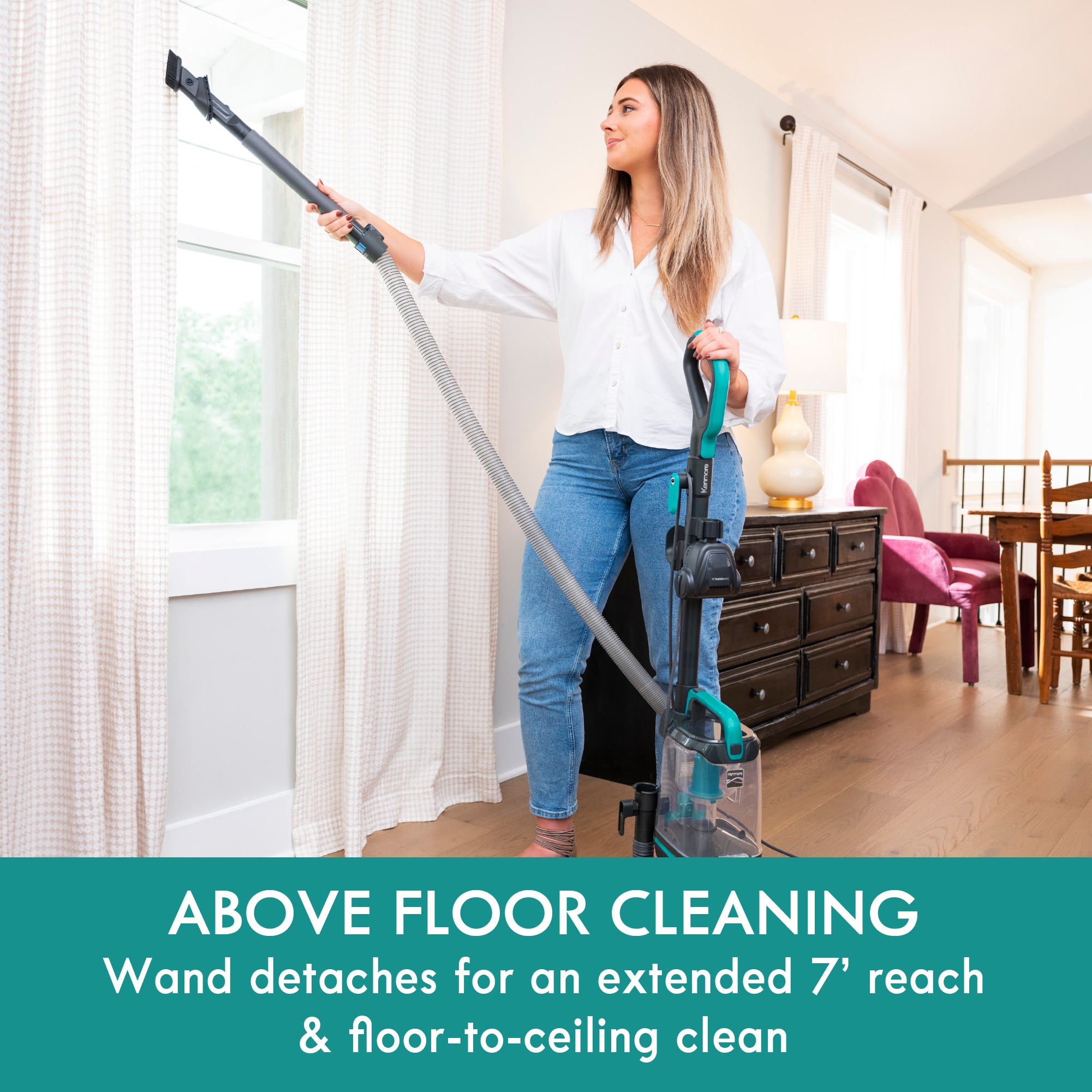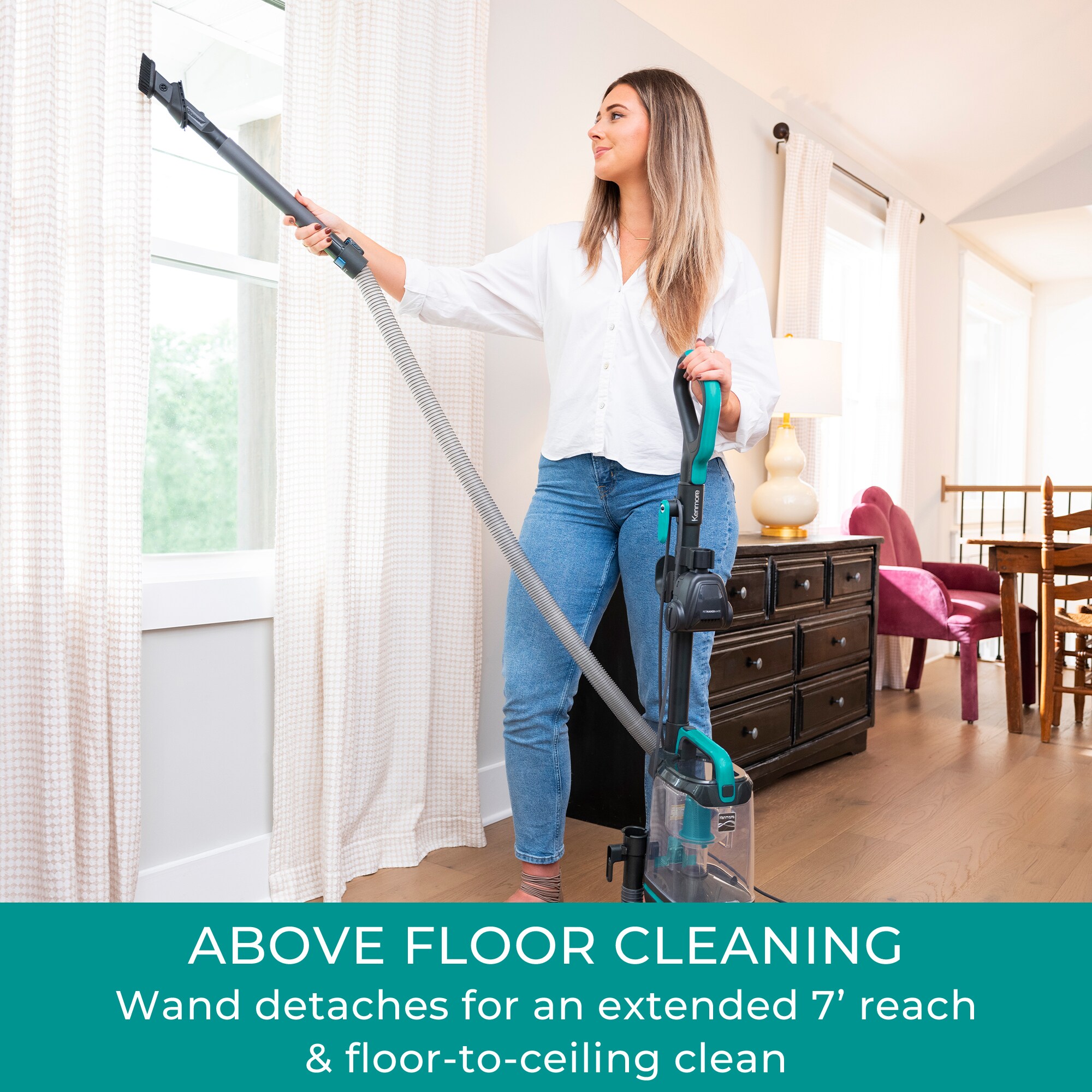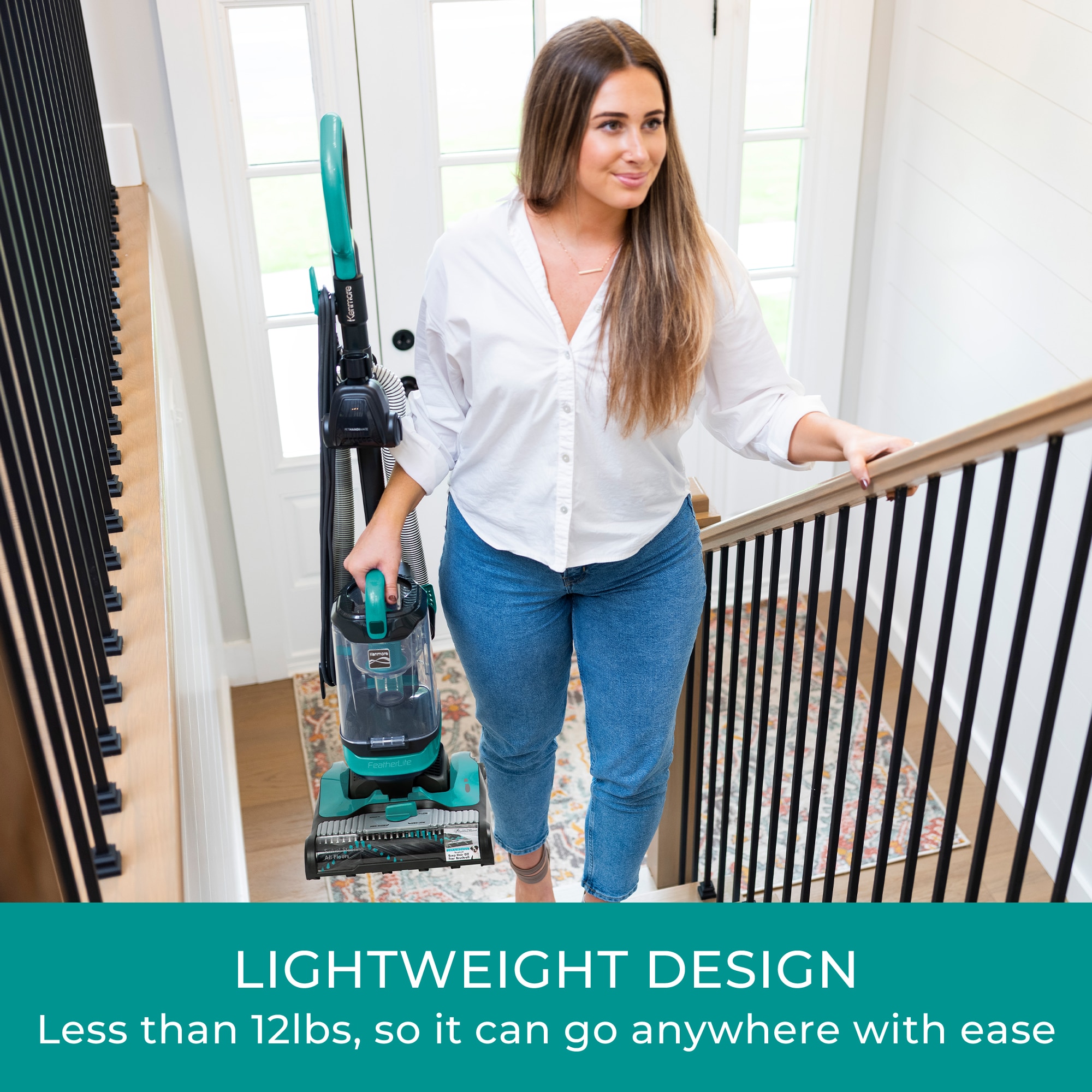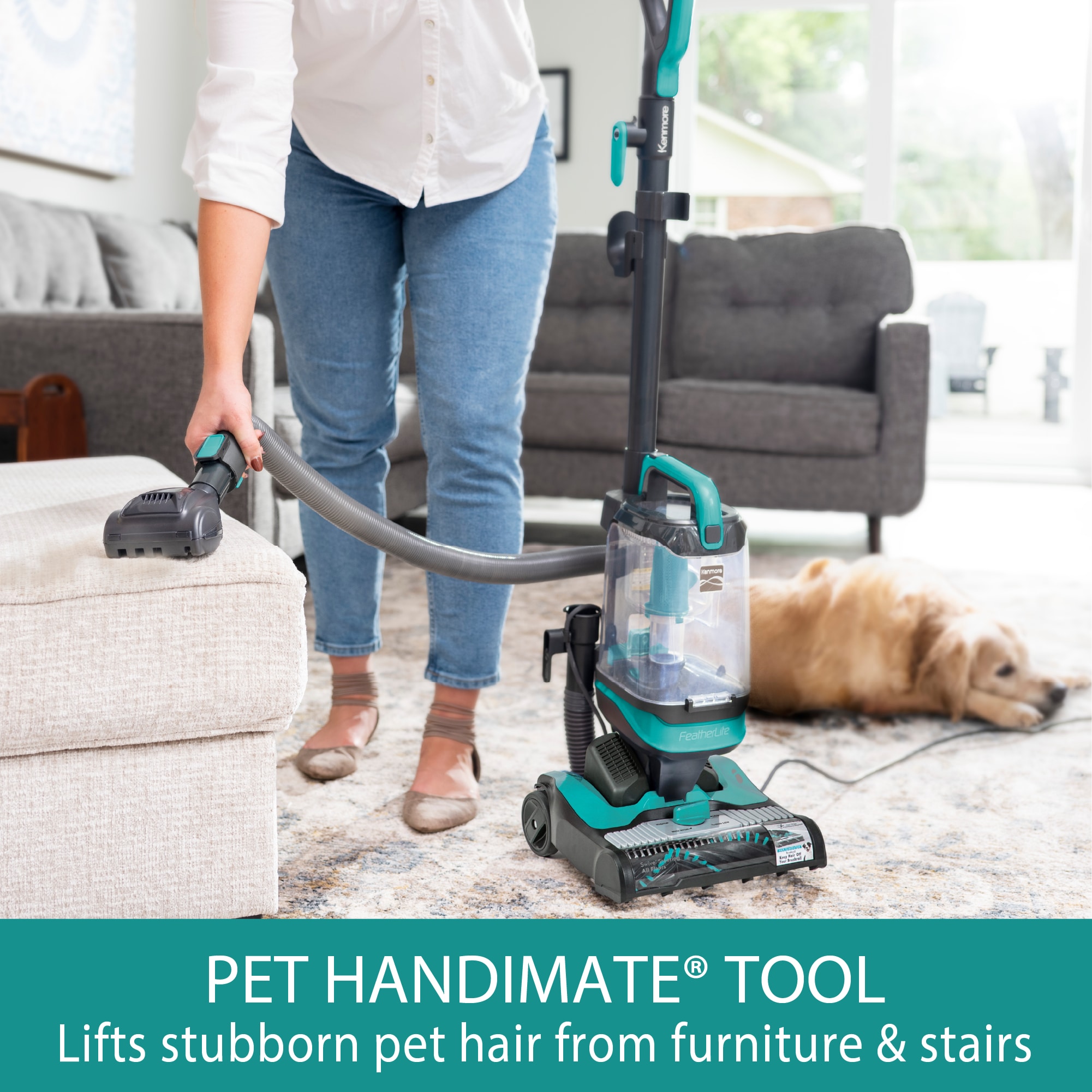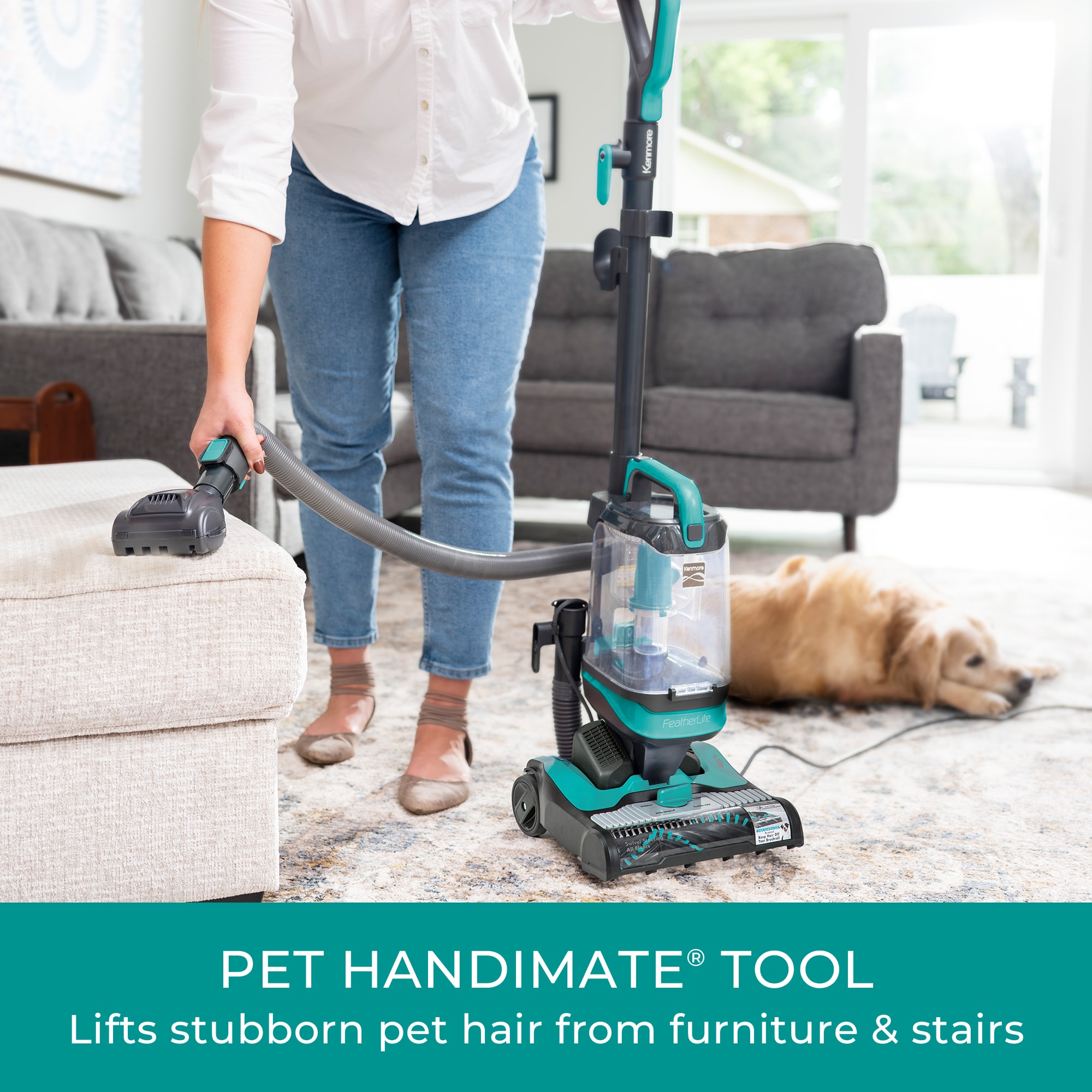 The Kenmore FeatherLite™ bagless upright can tackle all your cleaning needs. At under 12lbs, this full-featured upright maneuvers around furniture with swivel steering to powerfully remove ground-in dirt from carpets. Effortlessly transition to lightweight cleaning with 7’ of extended reach for stairs and above floor cleaning. No more manually cleaning your brushroll – the Hair Eliminator® feature automatically removes pet hair and debris from your brushroll, so it’s always ready to clean. On-board tools include a specialized Pet HandiMate® tool and 3-in-1 combination tool featuring a crevice tool, dusting brush and upholstery tool for a whole home clean.