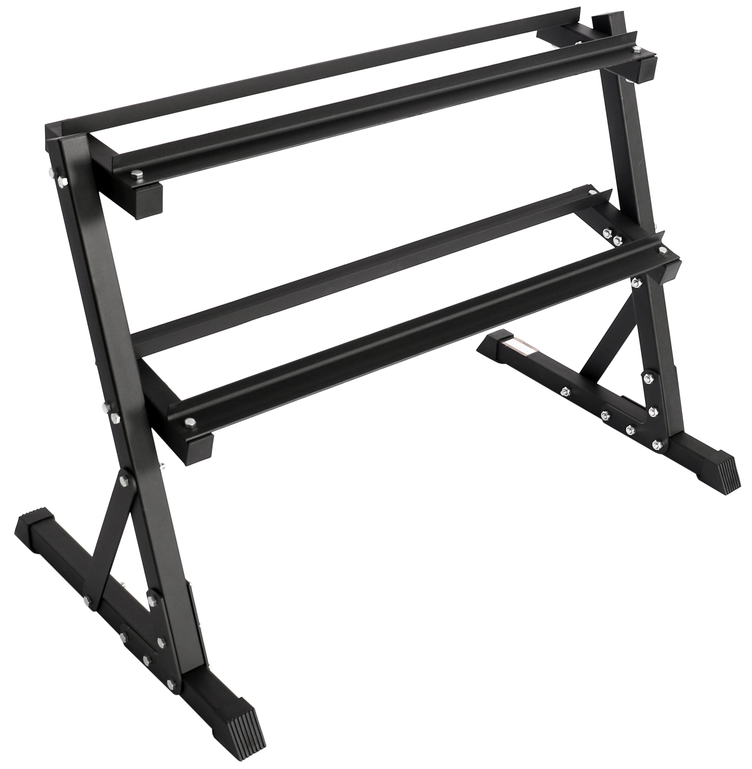 Includes five pairs of dumbbells: 20, 25, 30, 35, and 40 LB (300lbs Total) Two-tier rack included for convenient storage. Rack has a full capacity of 400lbs. Rubber hexagonal shape prevents dumbbells from rolling away during workouts. Knurled chrome handle provides a secure and comfortable grip. Dumbbells are made from high-quality materials for durability. Suitable for a variety of exercises, including curls, presses, squats, and lunges.