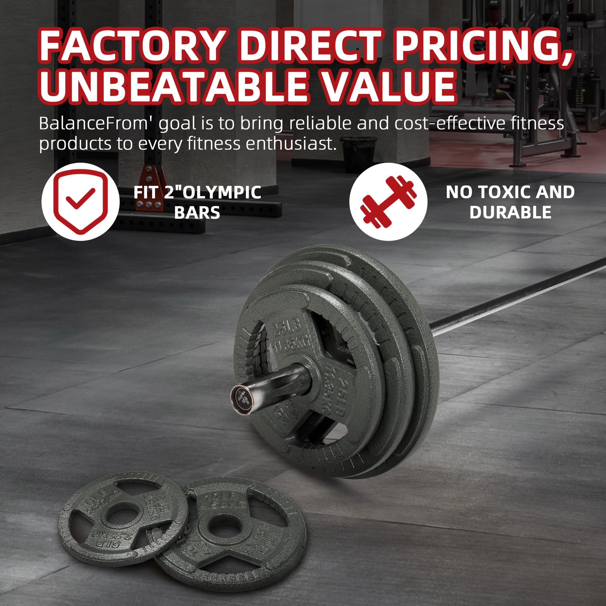 BalanceFrom Cast Iron Weight Plates,1-Inch or 2-Inch Center Hole, Multiple Sizes & Sets Available,for Strength Training & Weightlifting