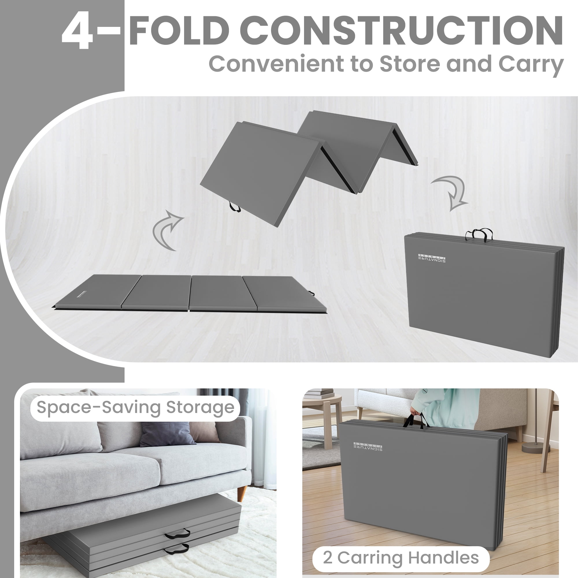 BalanceFrom Folding Exercise Mat, 10ft x 4ft Four Fold Exercise Mat with Carrying Handles for Yoga, MMA, Gymnastics and Home Gym Protective Flooring, 2-inch Thick, Gray