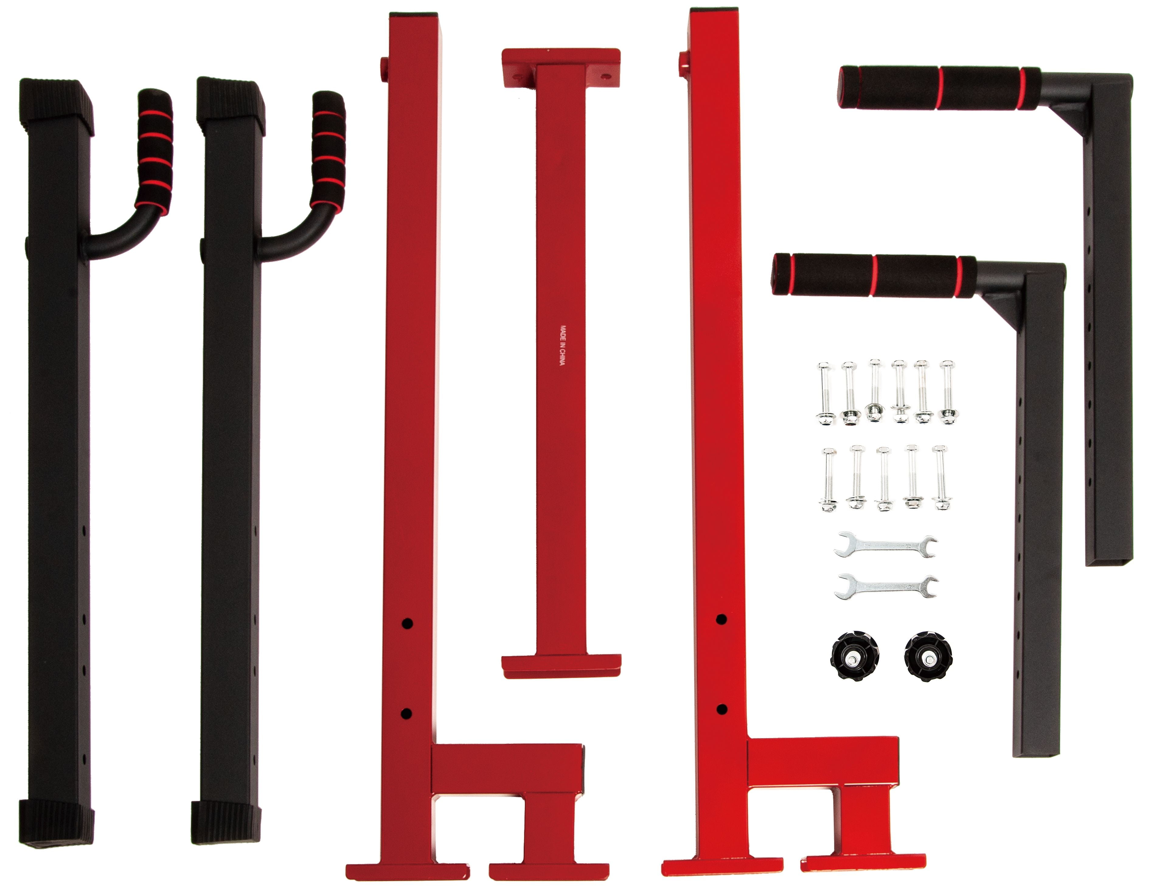 BalanceFrom Multi-Function Dip Stand Dip Station Dip bar with Improved Structure Design, 500-Pound Capacity: Dimensions: Height is 40.15-51.18 inches, with dimensions of 27.95″ wide and 29.52 long. At a glance: Improved design Adjustable height