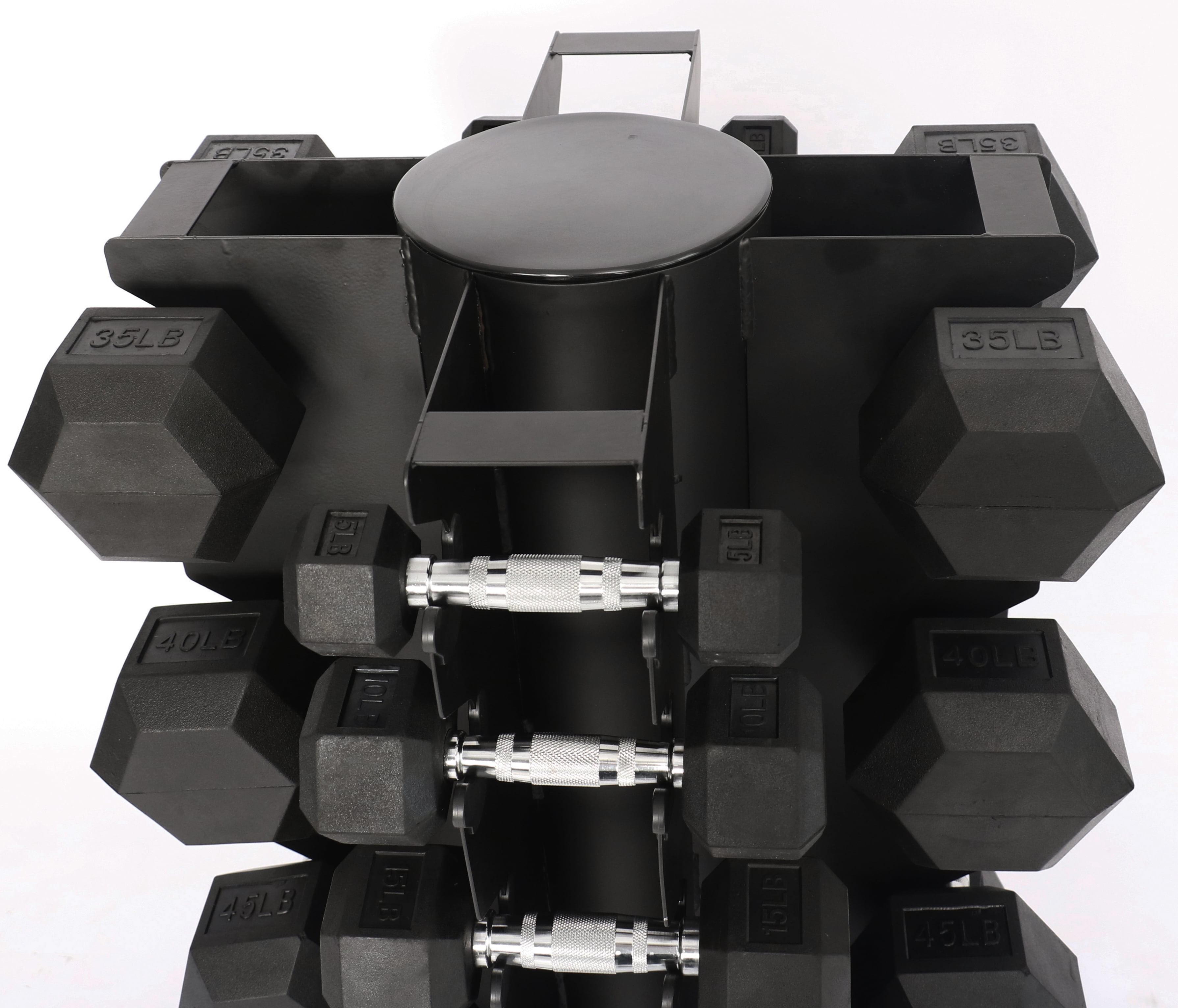 AT A GLANCE: Verticle dumbbell carousel that spins for easy equipment access Convenient storage solution, eliminates clutter and hazards. Holds up to 20 dumbbells, saves space. Spinning feature for easy access. Durable and sturdy, 550 lb capacity. Sleek design, modern touch for home gym. Compatible with various dumbbell sizes. Space-saving alternative to traditional racks. Secure and organized storage system. Fits any workout space. Enhances fitness routine efficiency.