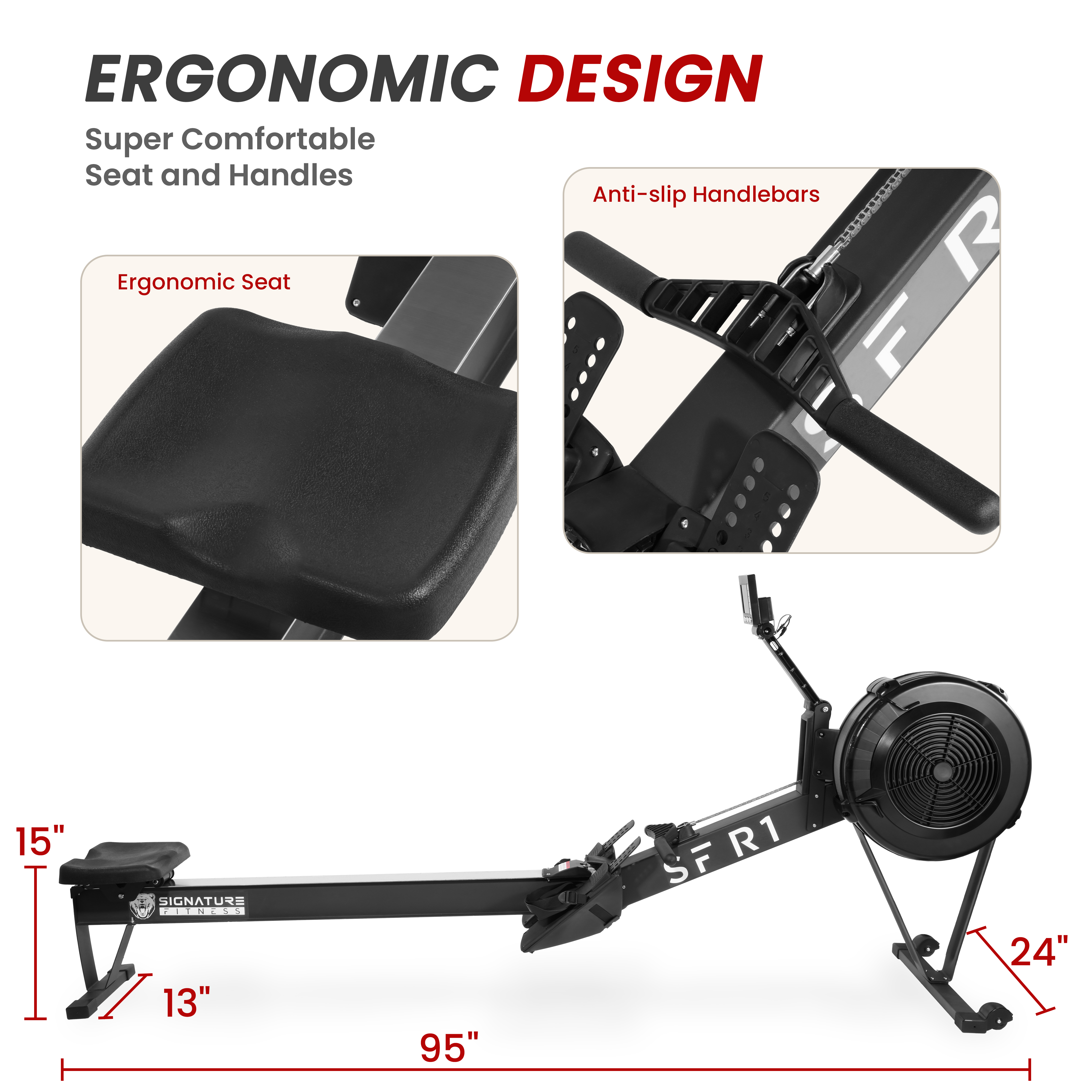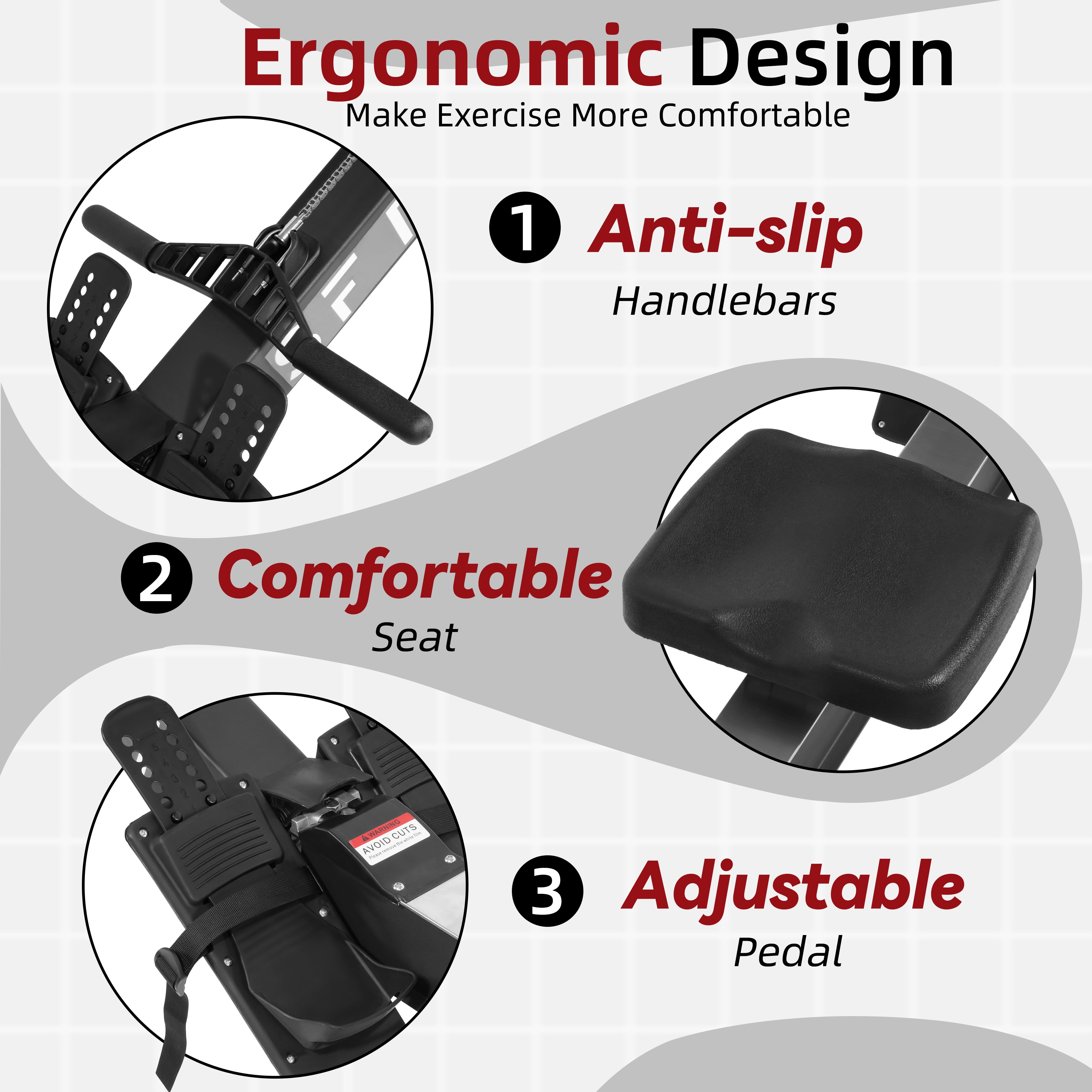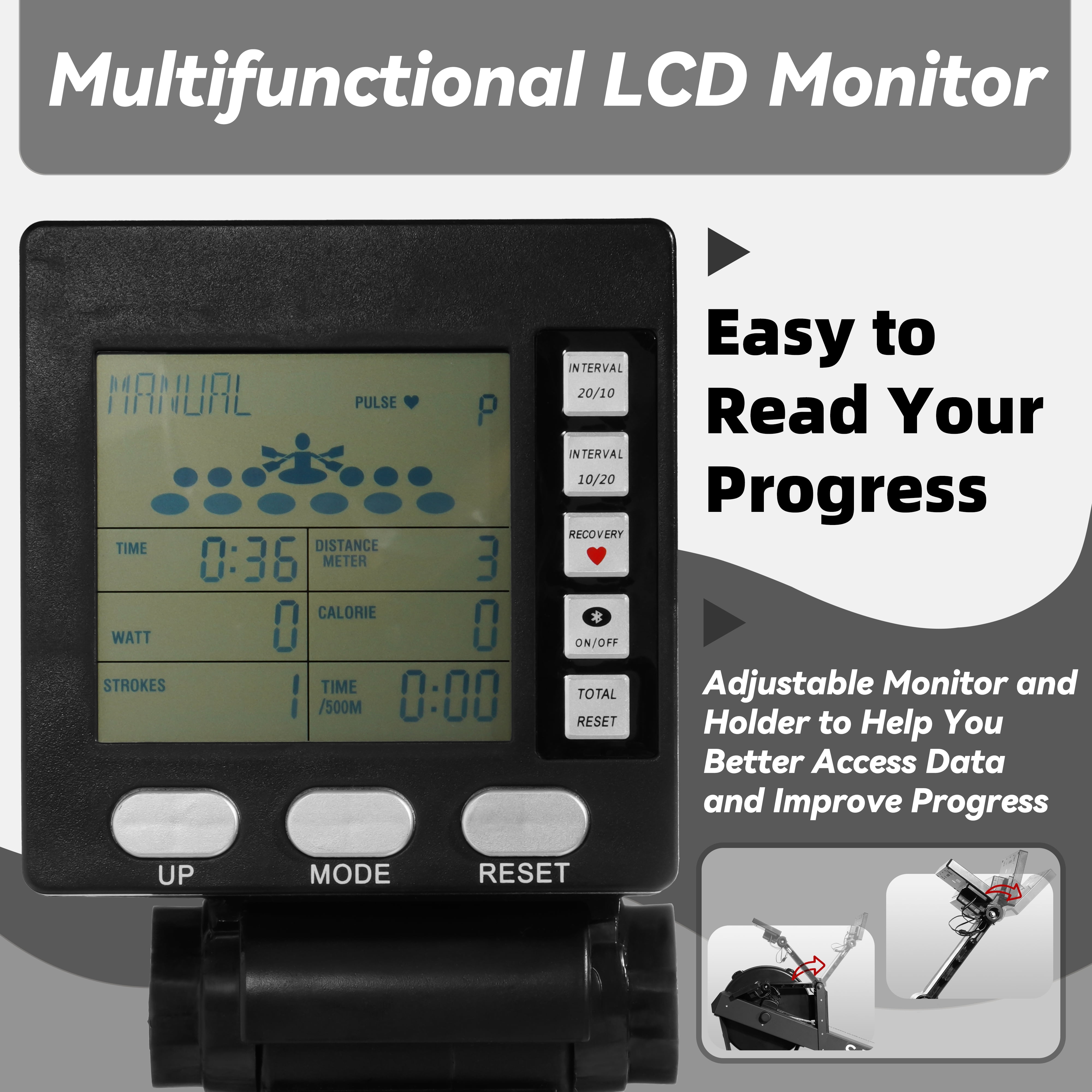 Enjoy Exercise: 15 inch high seat provides more space for leg flexion and extension, extended slide rail allows you to exercise multiple muscle groups during exercise. The ergonomic breathable soft seat allows you to enjoy exercise more fully. Quiet & Durable: Flywheel produces less noise during operation and will not affect others’ rest during exercise. Lightweight and sturdy steel pipes make the rowing machine more durable, with a maximum load of 330 pounds. The durable foot straps can better fix your feet. Adjustable Resistance: 10 level wind resistance design, both beginners and professionals can get full and effective exercise, making your rowing training more challenging. Full Body Muscle Exercise: The rowing machine can exercise most muscle groups. The design of the lengthened slide rail can fully and effectively train the legs, core, arm and back, and promote the balanced development of the whole body muscles. Intimate Design: Exercise monitor on the rowing machine can display your exercise time, distance, calories burned and heart rate, you can adjust the exercise intensity at any time according to the data. Rowing machine can be easily divided into two parts, and it is equipped with bottom wheels for easy movement and storage.