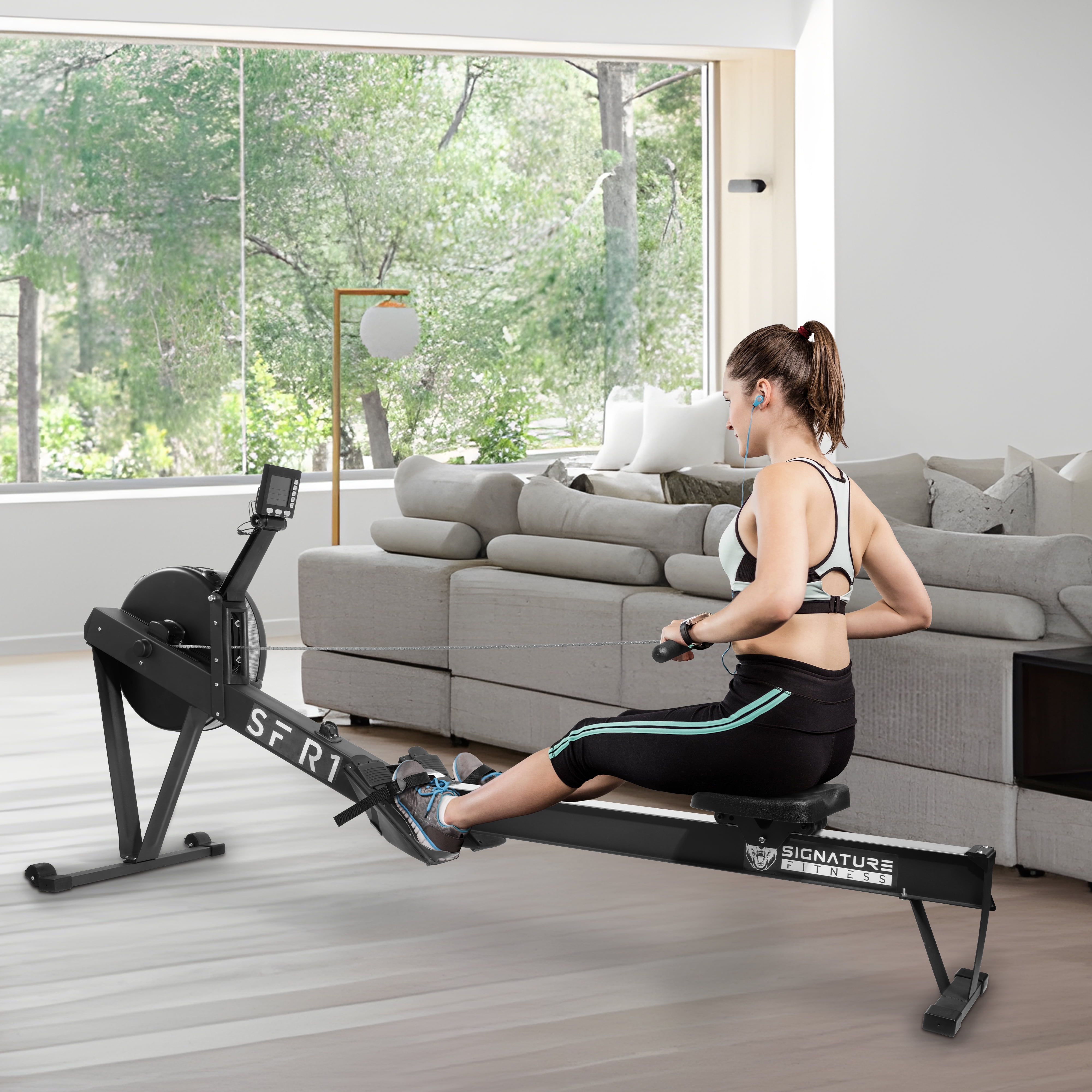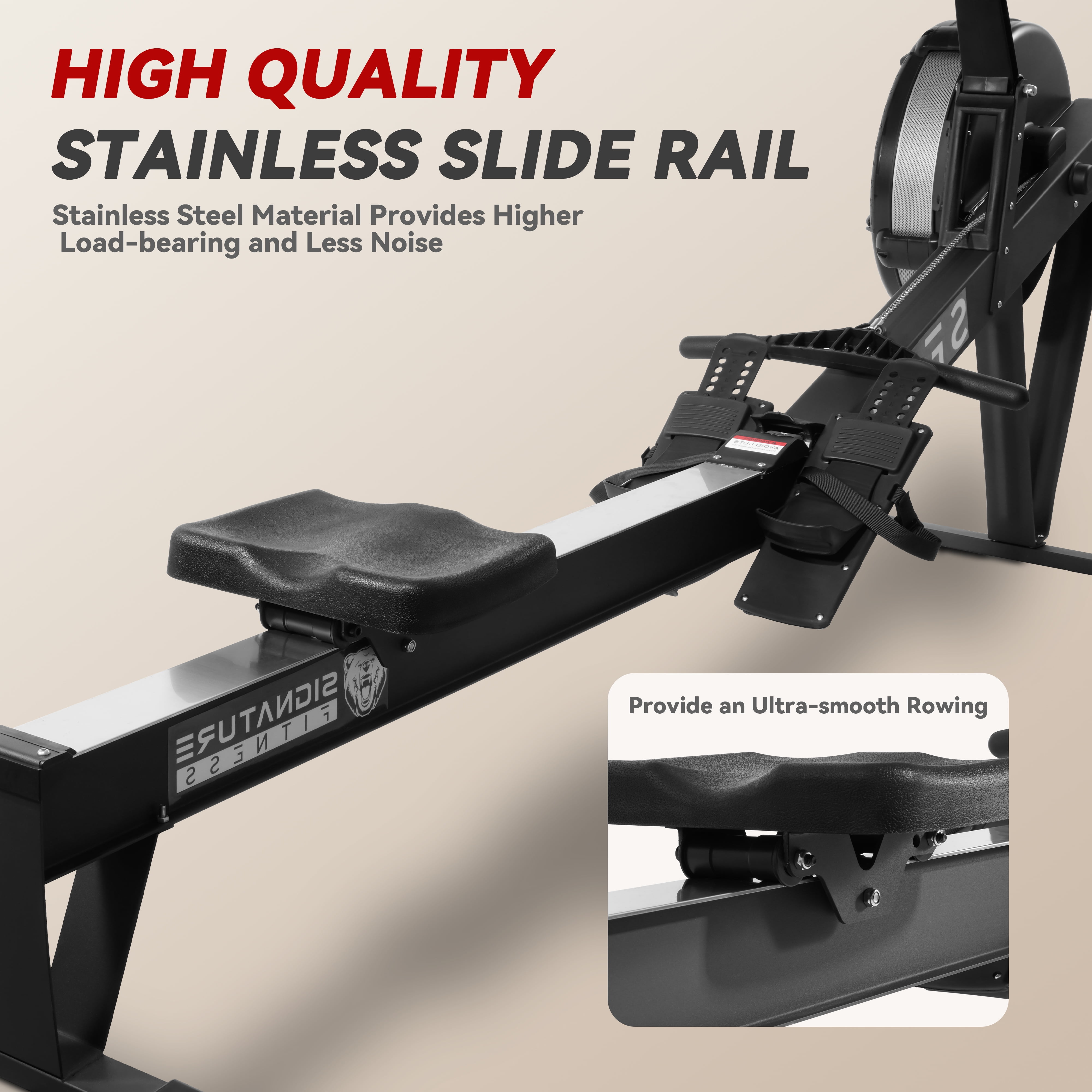 BalanceFrom Rowing Machine, Easy Storage Rowing Machine with Extended Slide Rail, Max 330 LBS Wind Resistance Rowing Machine with LCD, 10 Levels of Adjustable Air Resistance