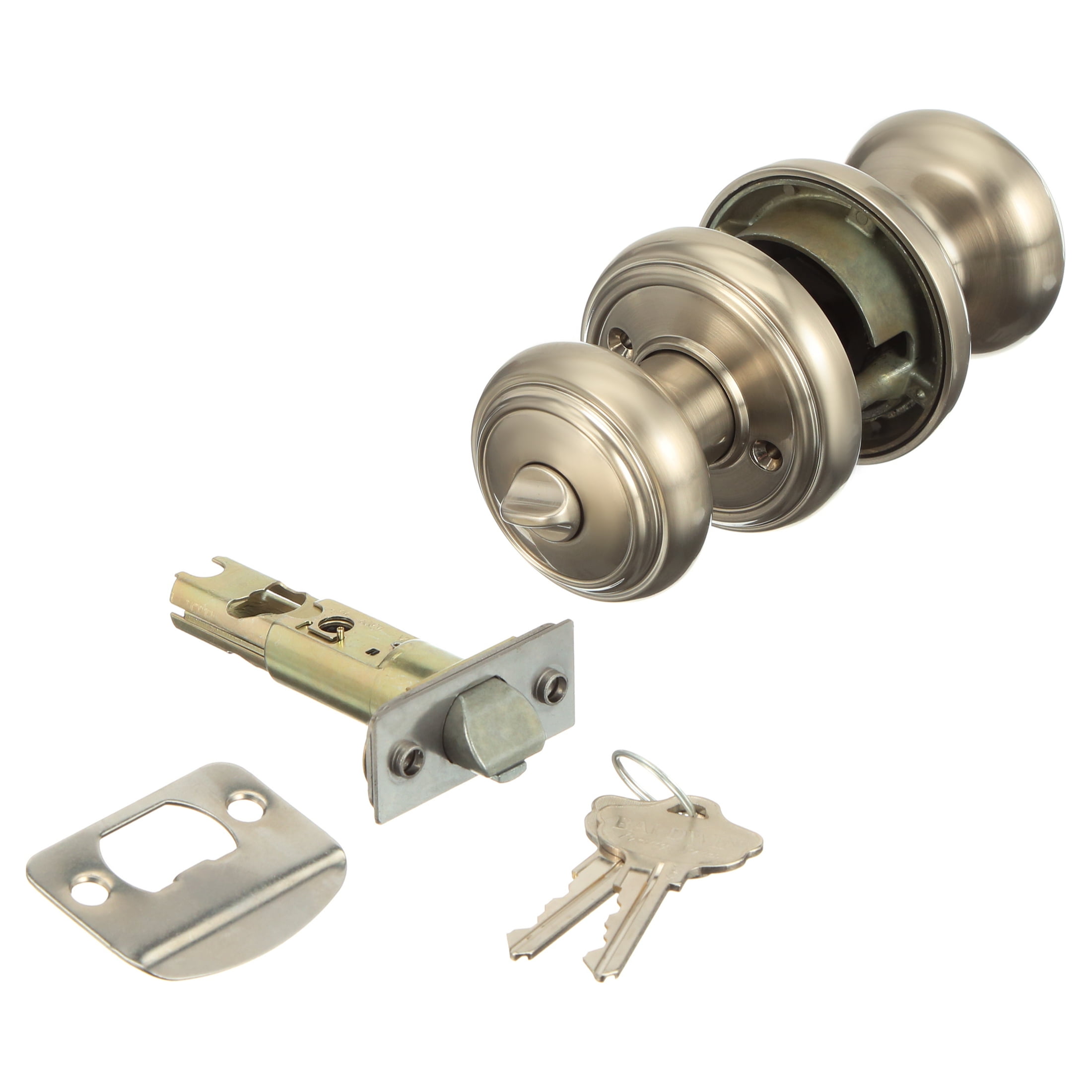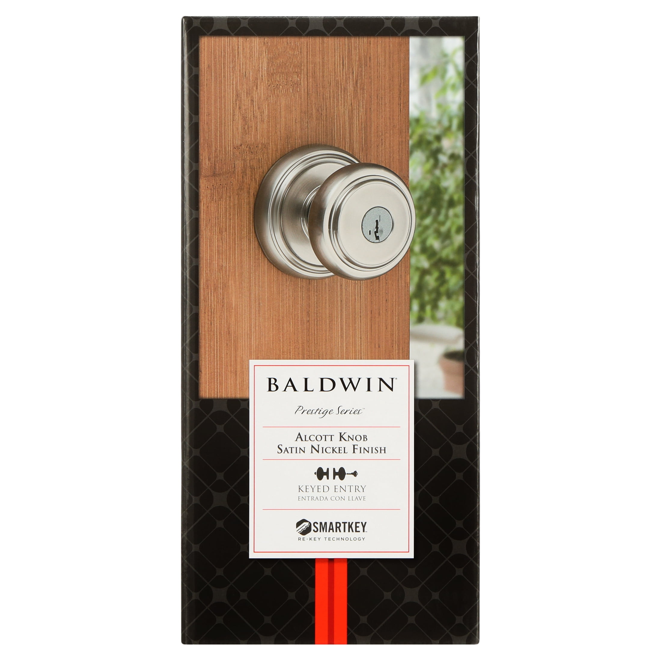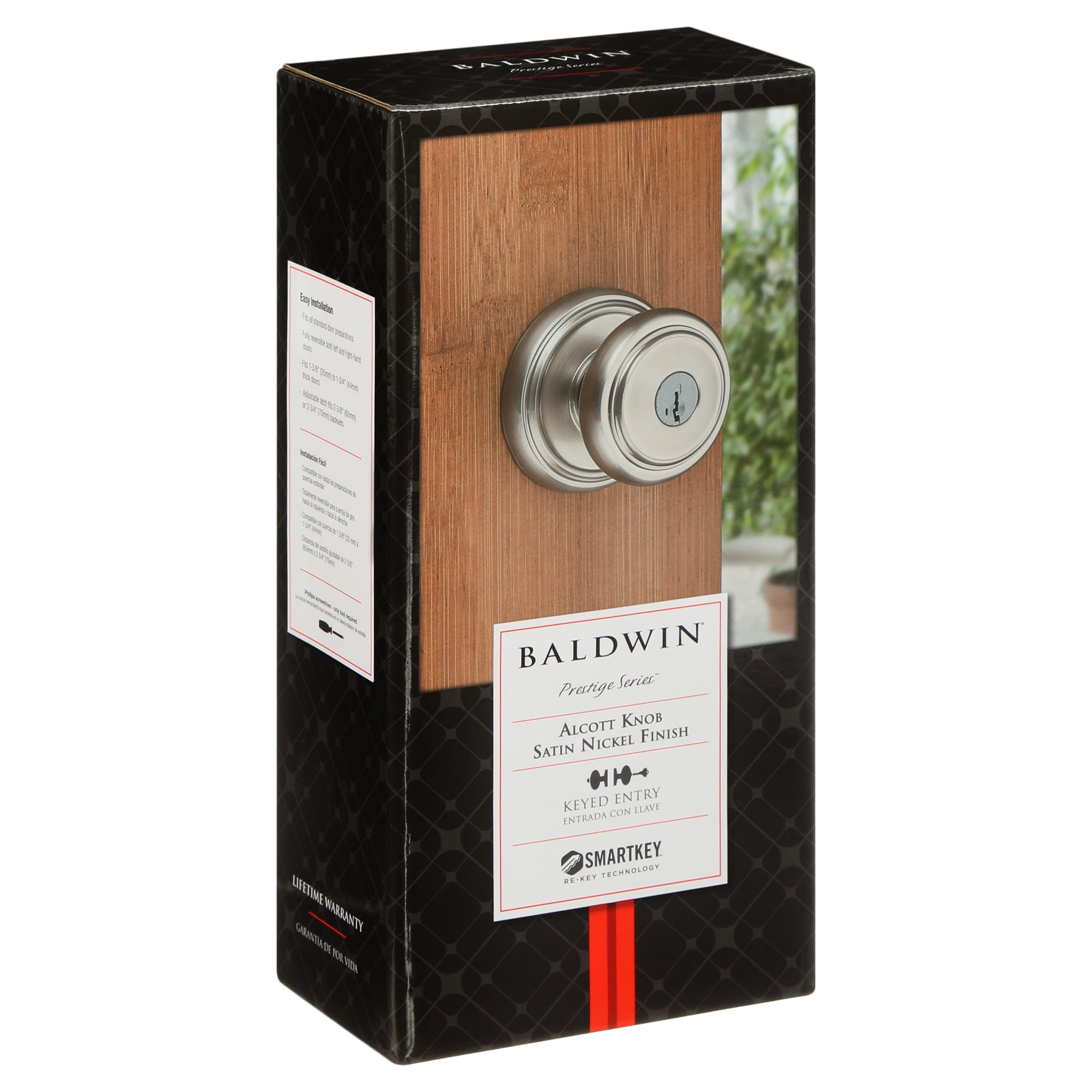 Baldwin Prestige offers effortless, accessible style and luxury with superior security Classic-round traditional design shown in a satin nickel finish Featuring SmartKey Security; re-key the lock yourself in seconds in 3 easy steps Fits standard door preparations: 1-3/8″ to 1-3/4″ thick Solid construction Superior chassis with powerpack compression springs for operational strength Featuring SmartKey Security&trade, which protects against advanced break-in techniques and allows you to re-key your lock yourself in seconds. SmartKey Security & trade; re-key technology is compatible with Kwikset (KW1) keyway Comes with 2 keys Latch has 2 interchangeable faceplates; round corner and square corner ANSI/BHMA grade 2 certified Latch has adjustable backset 2-3/8″ to 2-3/4″ to fit all standard door preparations Locking mechanism functions with turn piece on the interior of the lock Lifetime mechanical and finish warranty