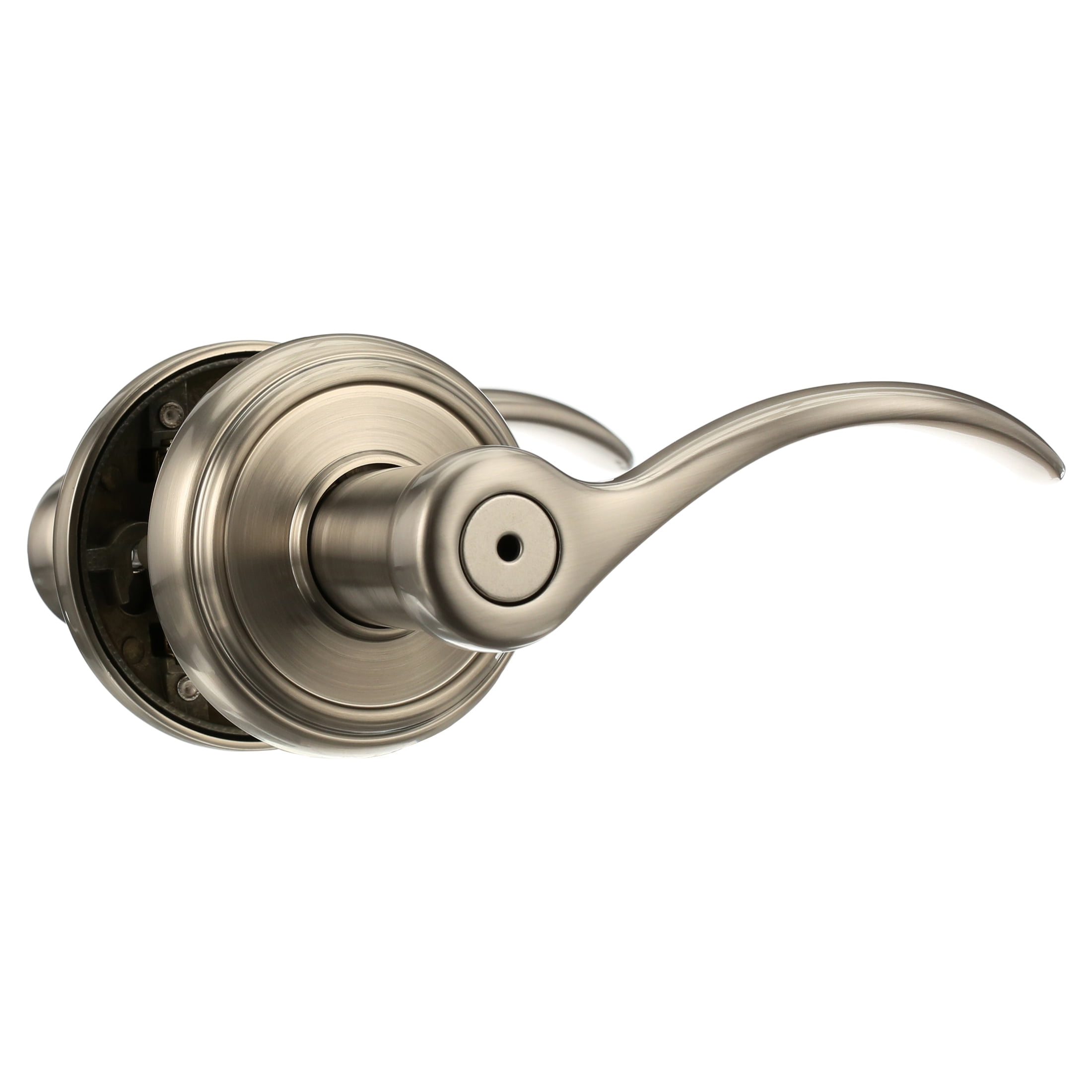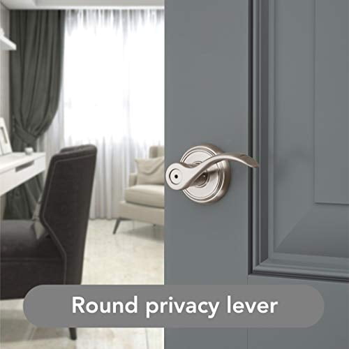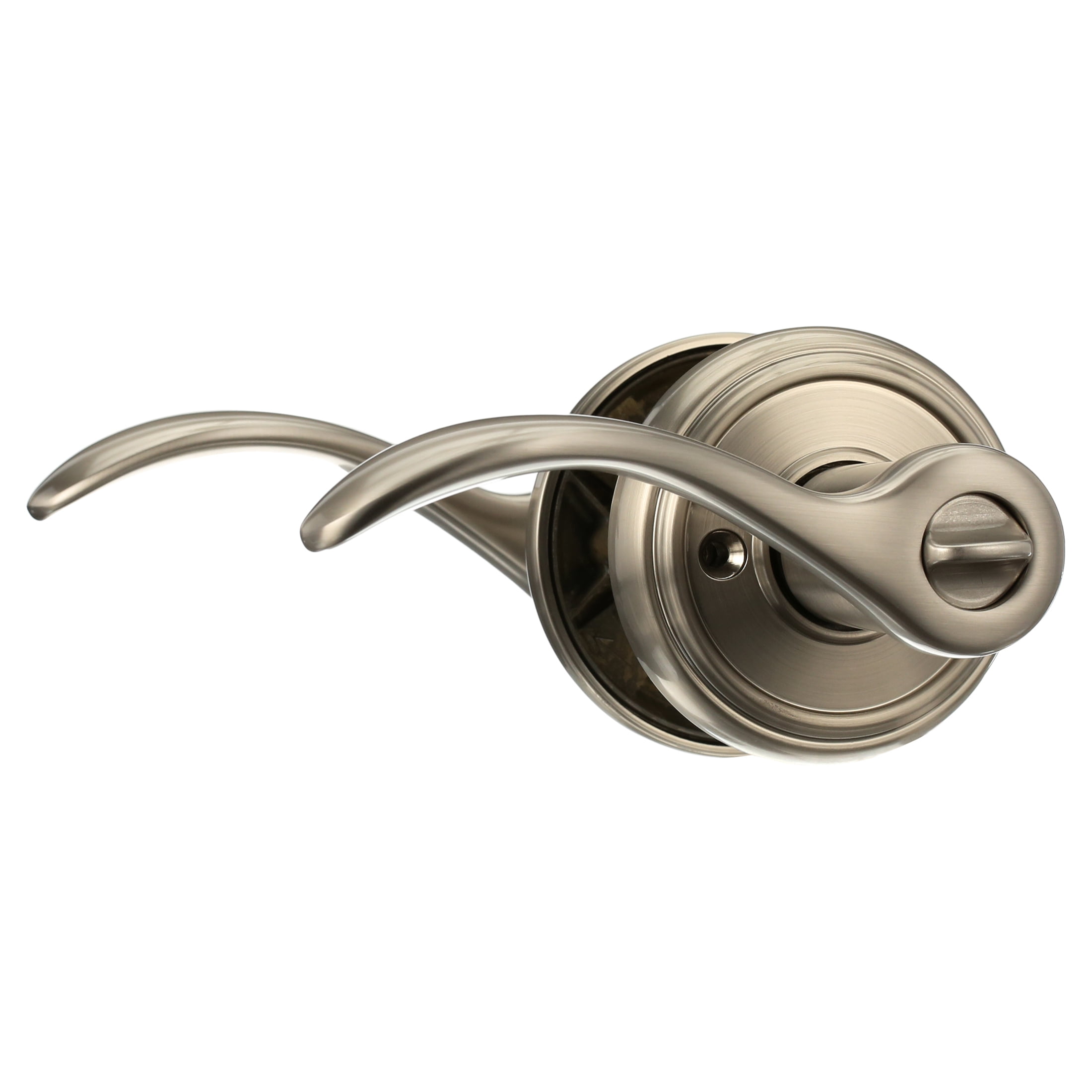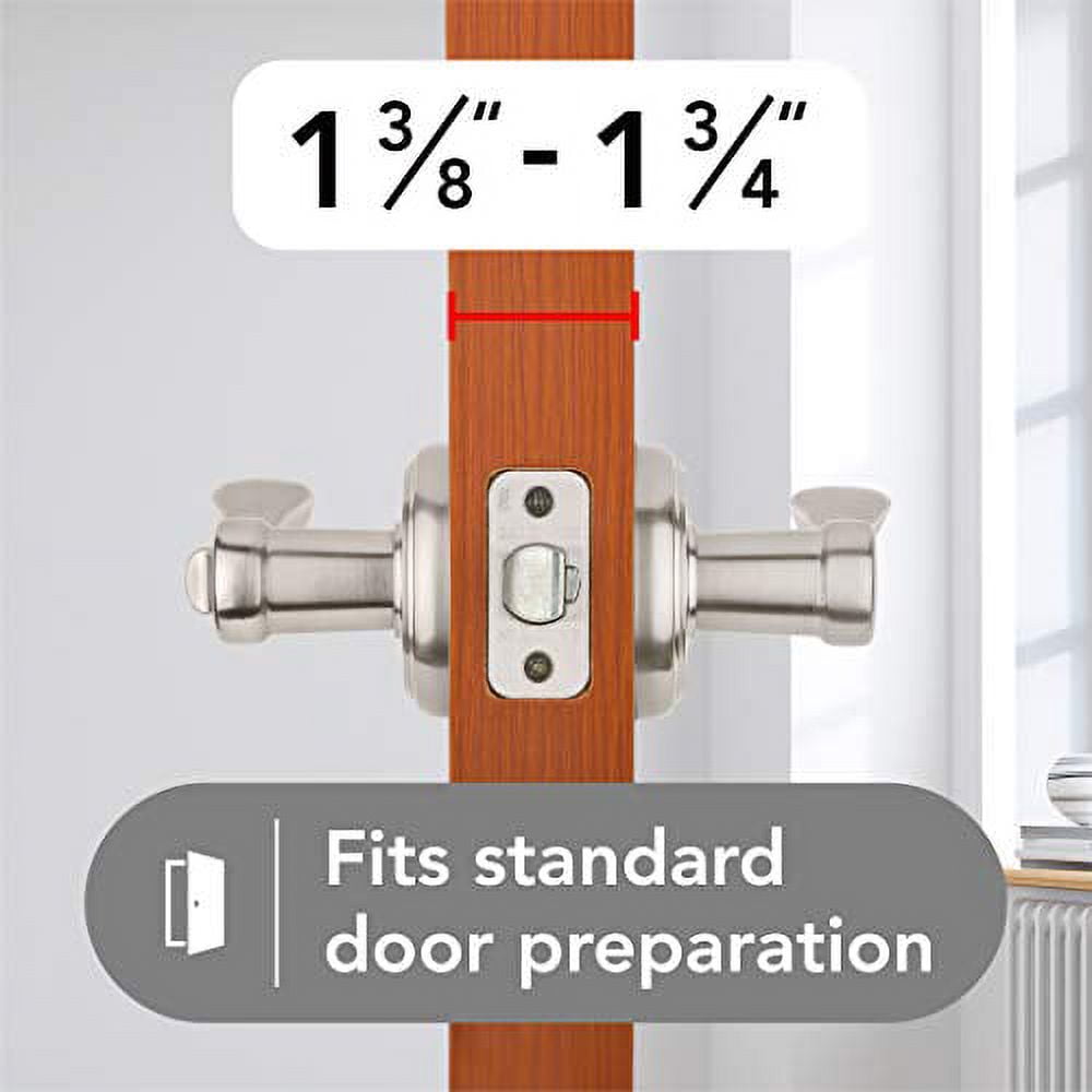 Baldwin Tobin Bed/Bath Lever Doorknob in Satin Nickel Latch has 3 interchangeable faceplates; round corner, square corner, and drive-in collar Latch has an adjustable back set 2-3/8″ to 2-3/4″ to fit all standard door preparations A fully reversible lever can be installed on both right-handed and left-handed doors