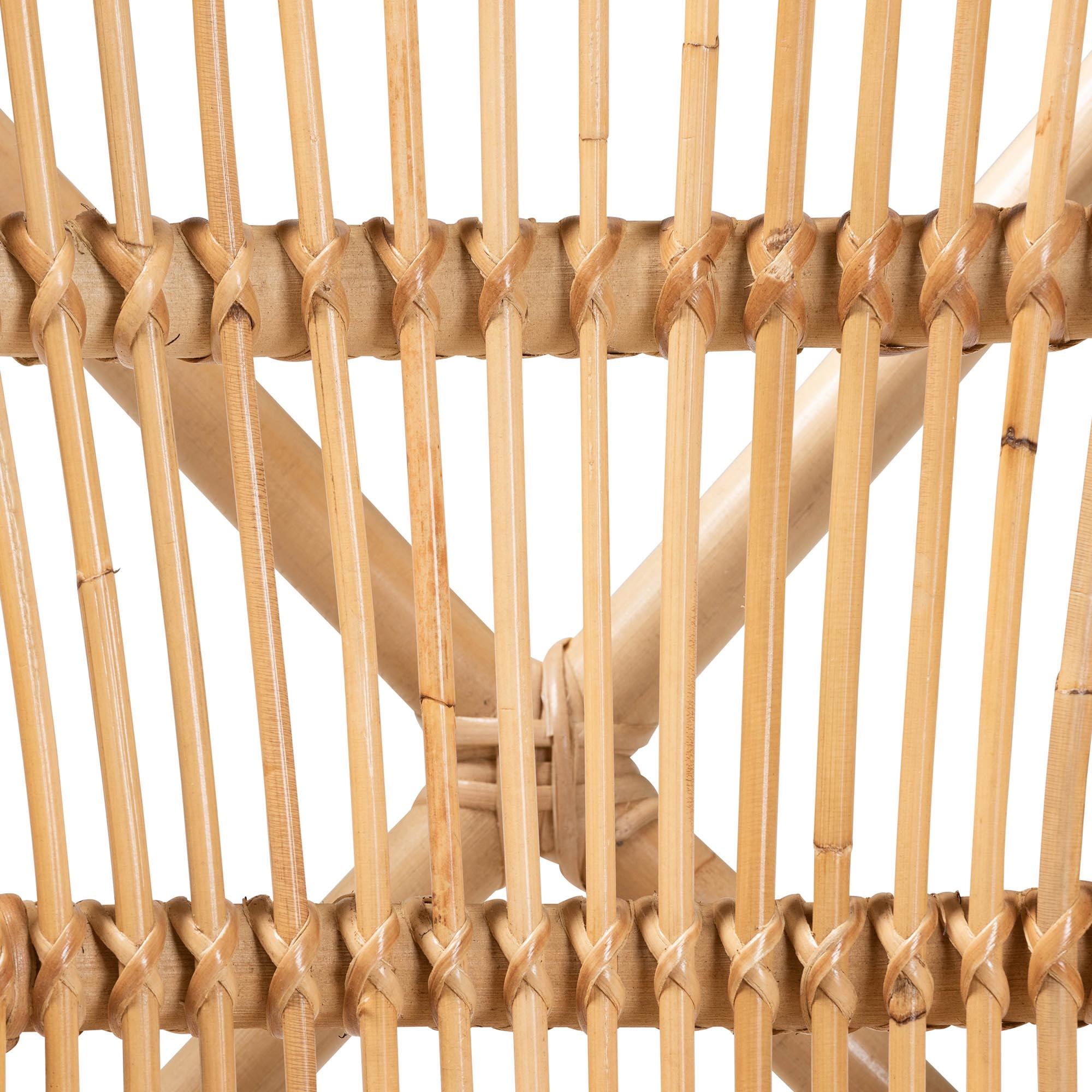 Build a charismatic yet carefree scene in your space with the alluring design of the Ammi dining chair. Made in Indonesia, this chair is made from natural rattan with woven embellishments. Its prominent backrest features slim rattan rods that form a smooth embrace while allowing light to flow naturally throughout the room. The Ammi will arrive fully assembled and utilizes angled legs connected by a crisscross base for excellent stability and support. Expertly made with distinct craftsmanship, the Ammi dining chair grants an unforgettable impression to any occasion. Due to the nature of the natural materials used in this product, it may have variations in areas such as, but not limited to, color, pattern, grain and texture. The hair-like strands of rattan/rattan-fiber are common due to nature of the material.