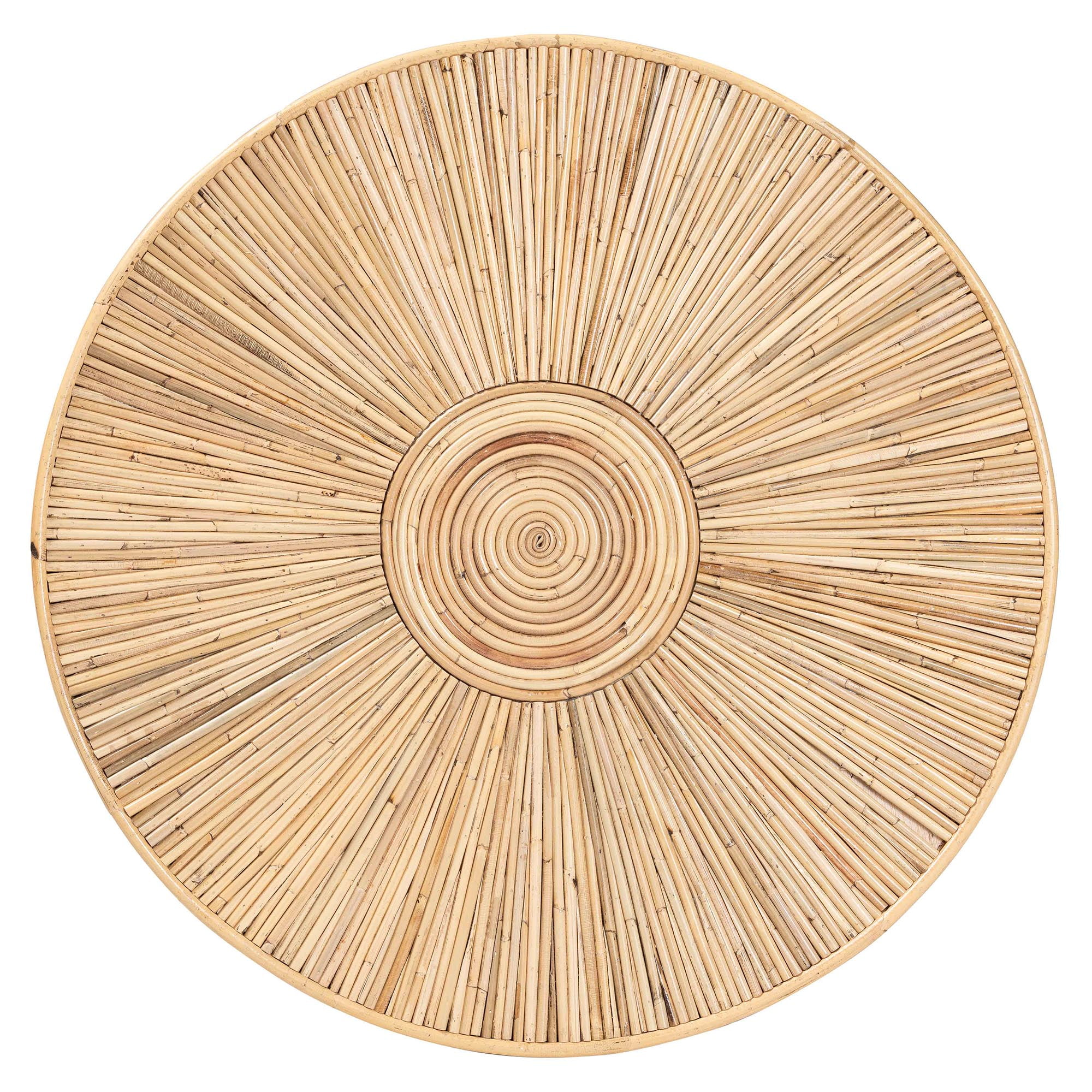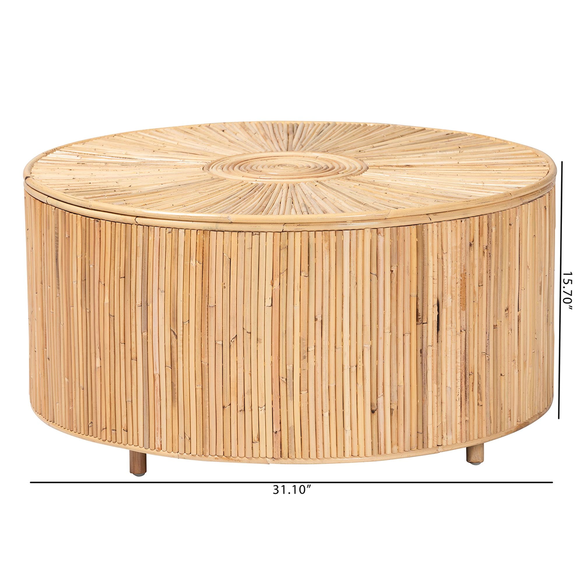 Bohemian coffee table Constructed from Natural Rattan Laminated Natural Rattan Embellishments Round tabletop Minimalist legs Fully assembled