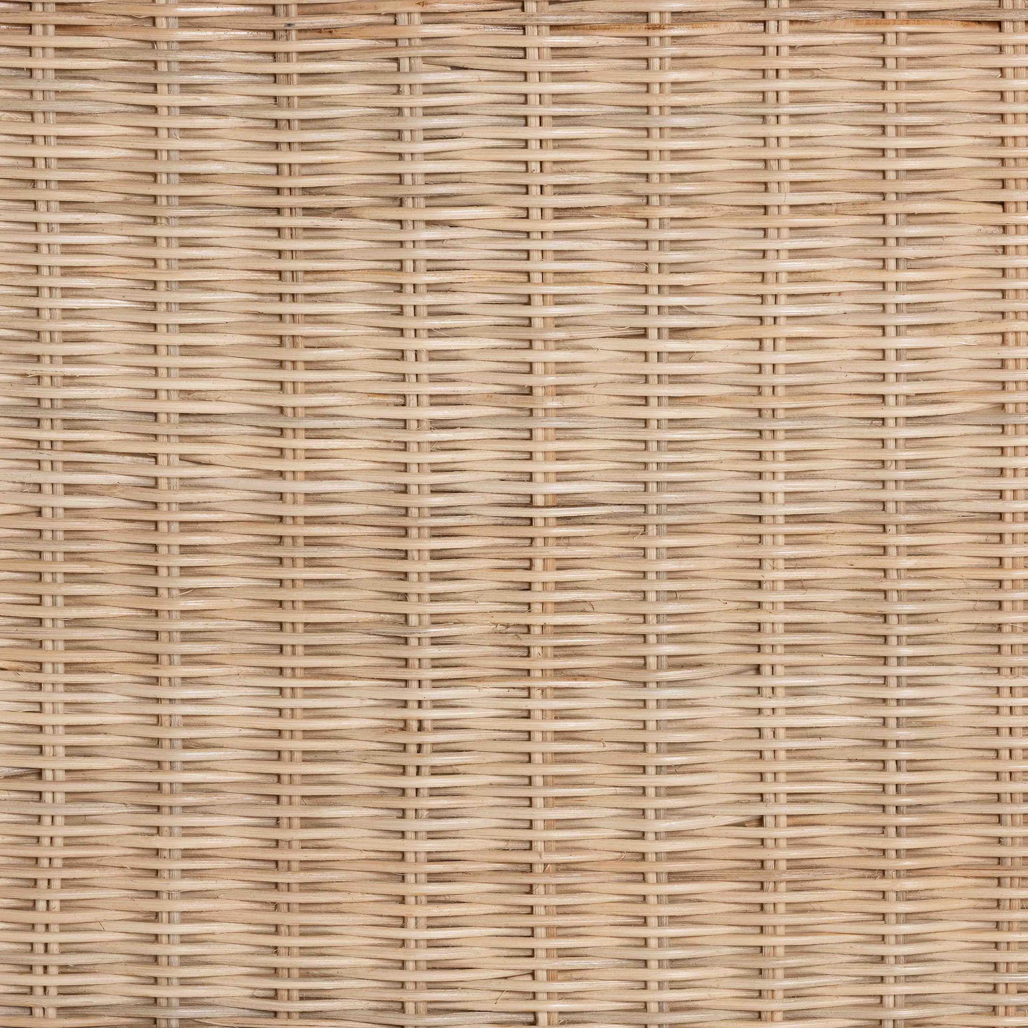 Cultivate a feel of timeless serenity in your space with the stunning Sumana side table. Made in Indonesia, this bohemian piece consists of a solid mahogany wood frame wrapped in handcrafted natural rattan by skilled artisans. Its broad tabletop is bordered by raised, scalloped edges that create a captivating display of exquisite geometry. The Sumana will arrive fully assembled and features an open shelf between its legs to beautiful organize your belongings. Beautifully adapting to serve as a nightstand, end table, or entryway accent, the Sumana side table rejuvenates any arrangement. Disclaimer: Rattan is a product of nature and may have variations in areas such as, but not limited to, color, pattern, grain and texture. The hair-like strands of rattan/rattan-fiber are common due to the nature of the material. Overall: 25.60″ W x 18.70″ D x 27.20″ H; Upper Shelf: 24.40″ W x 17.70″ D x 3.50″ H; Bottom Shelf: 20.50″ W x 16.90″ D x 13.40″ H; Clearance(floor to bottom of bottom shelf): 6.70″ H;