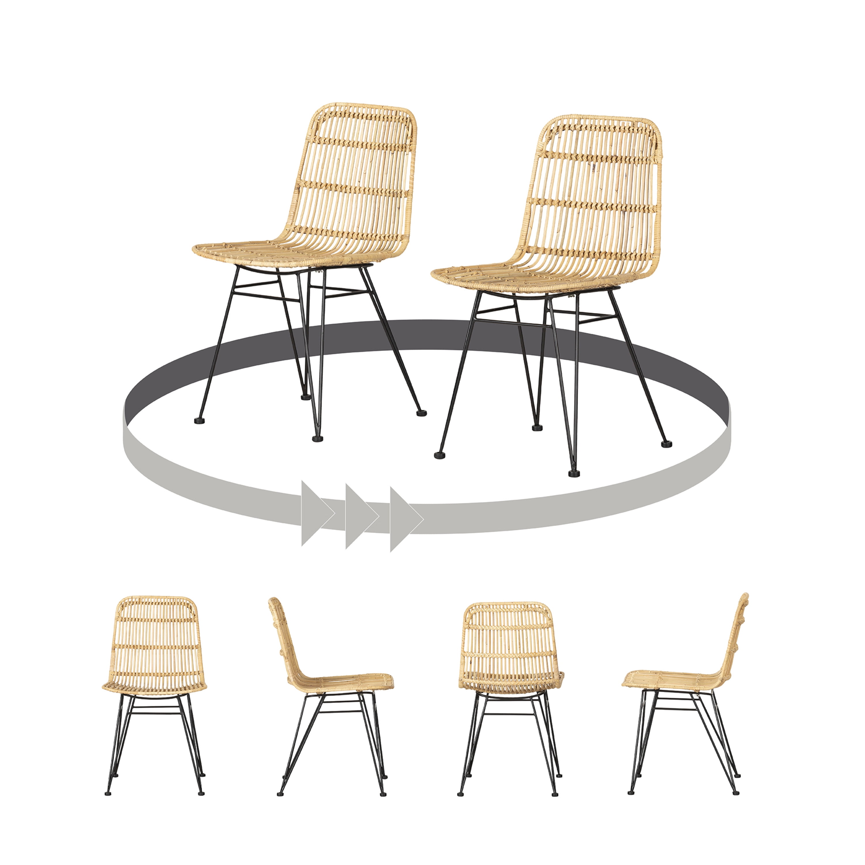 Balka Rattan Dining Chair, Set of 2 Rattan and Black