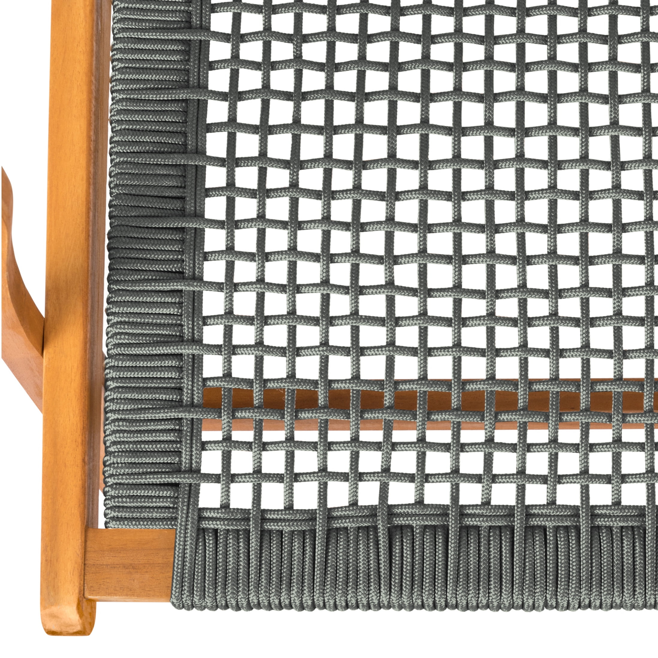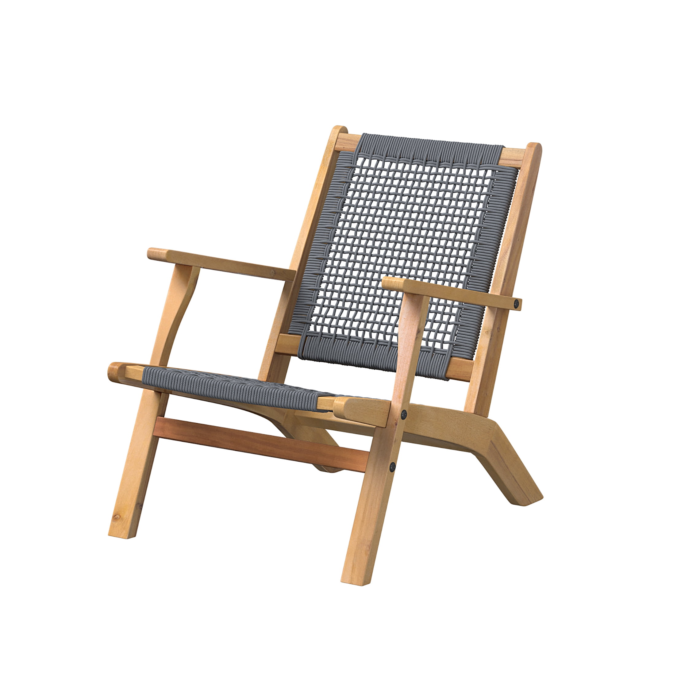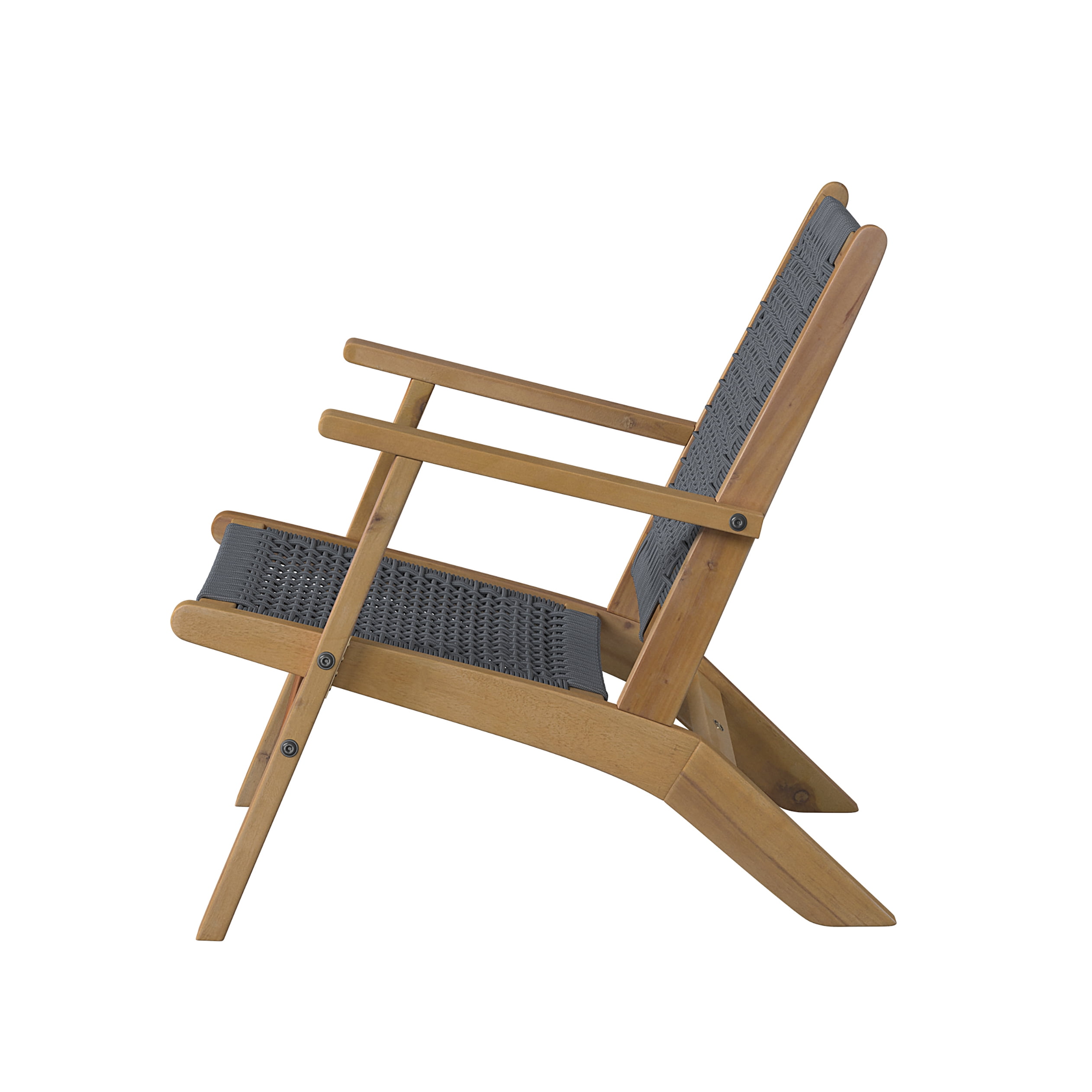 Balkene Home Gray Lounge Outdoor Chair | Acacia Wood | Woven Web Seat Mid Century Reclining Armchair