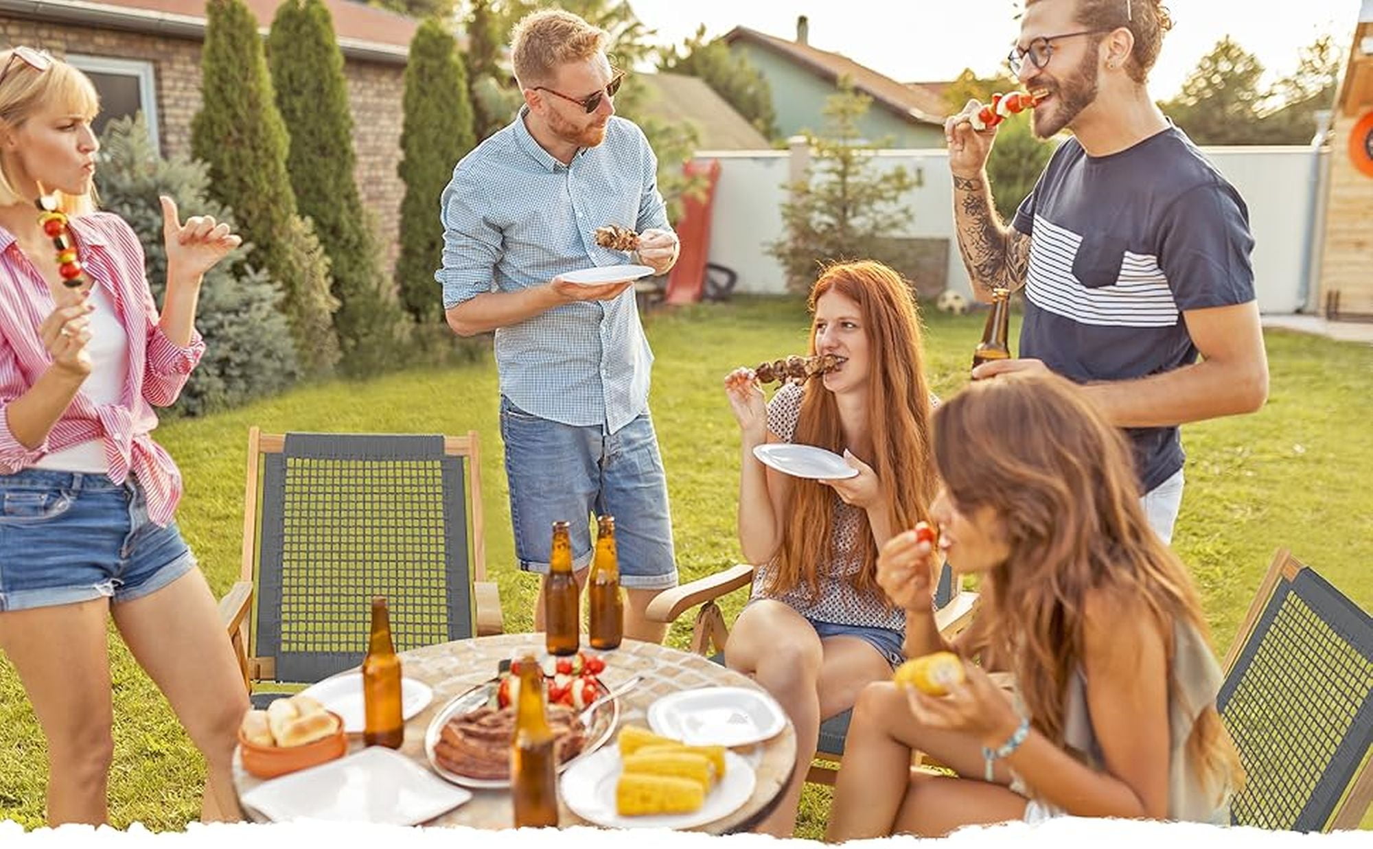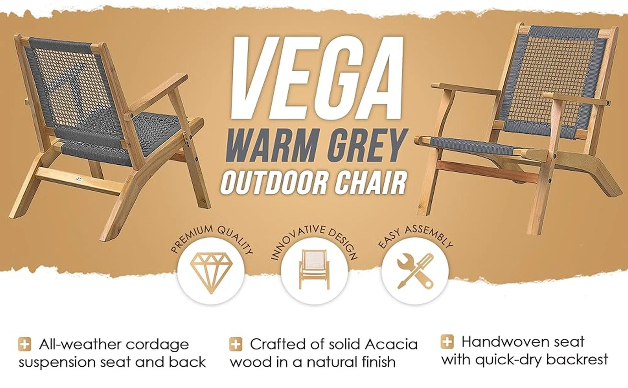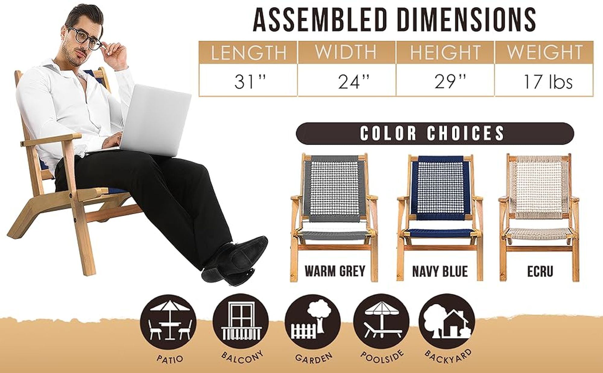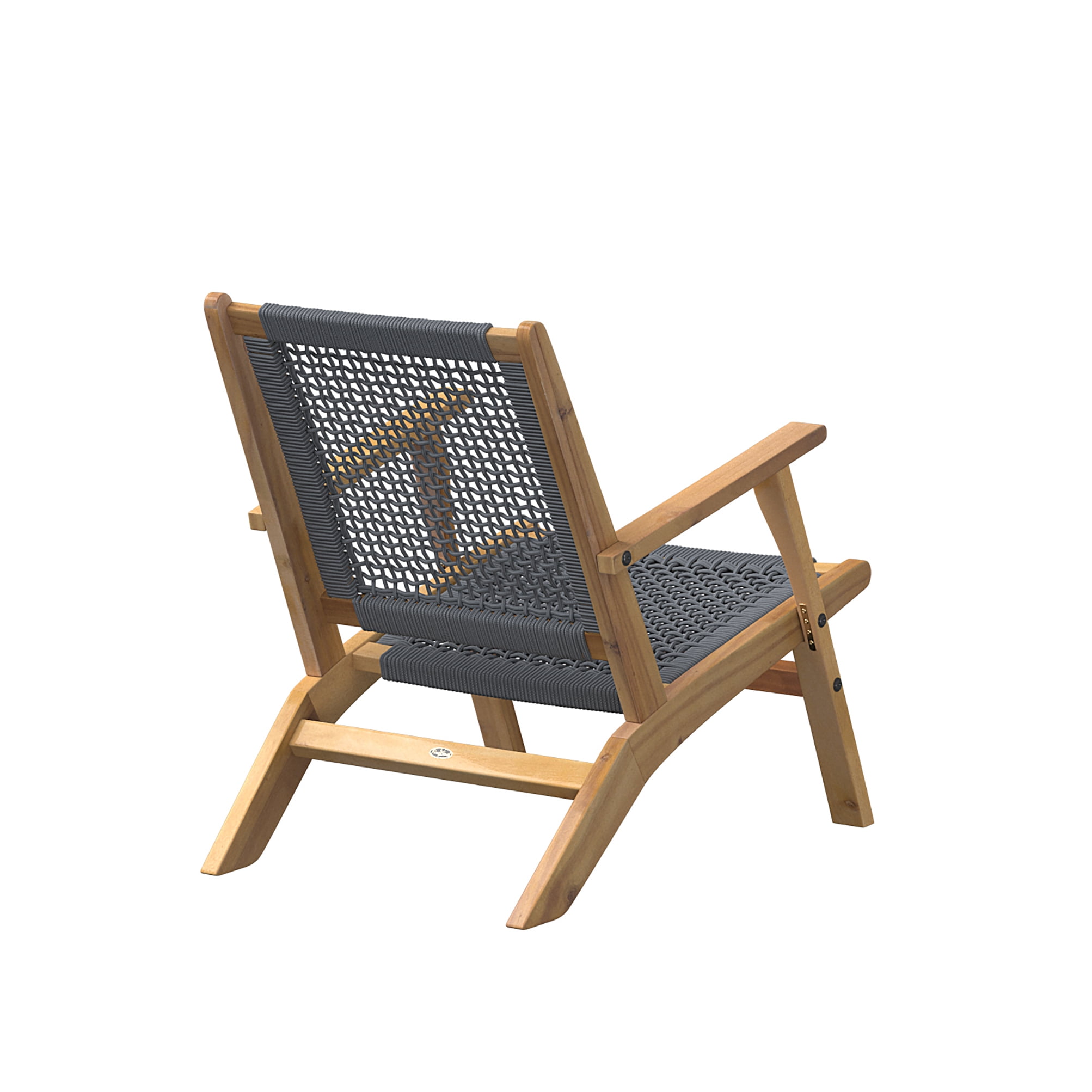 Balkene Home Gray Lounge Outdoor Chair | Acacia Wood | Woven Web Seat Mid Century Reclining Armchair