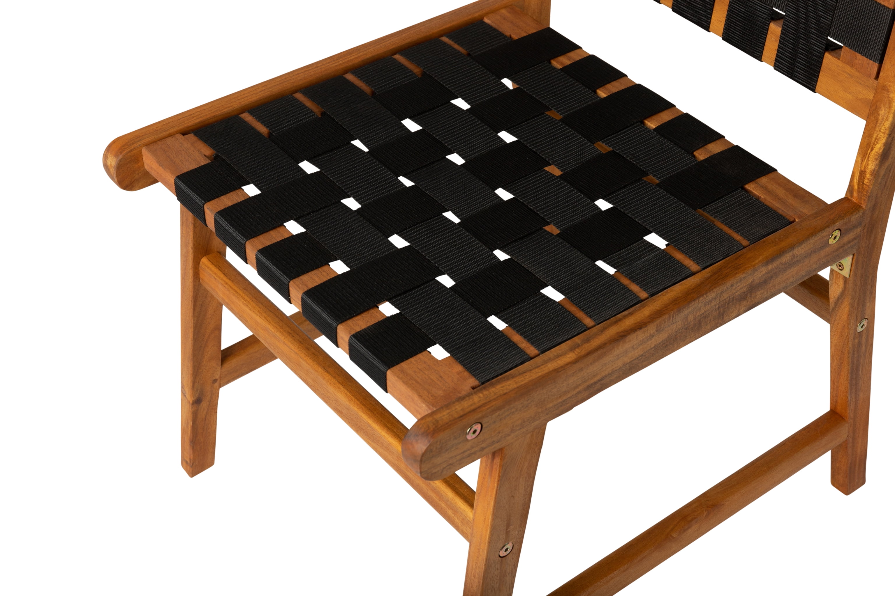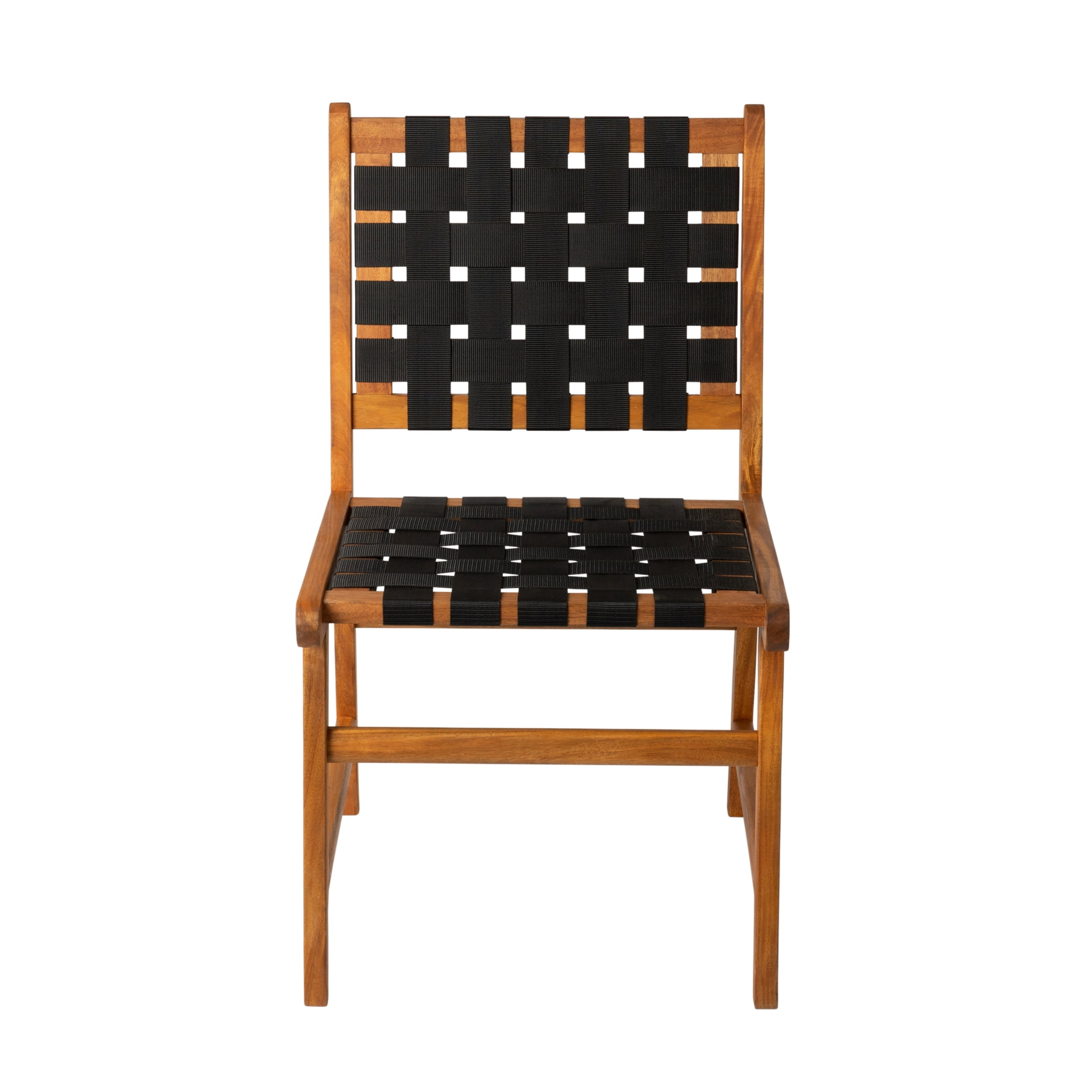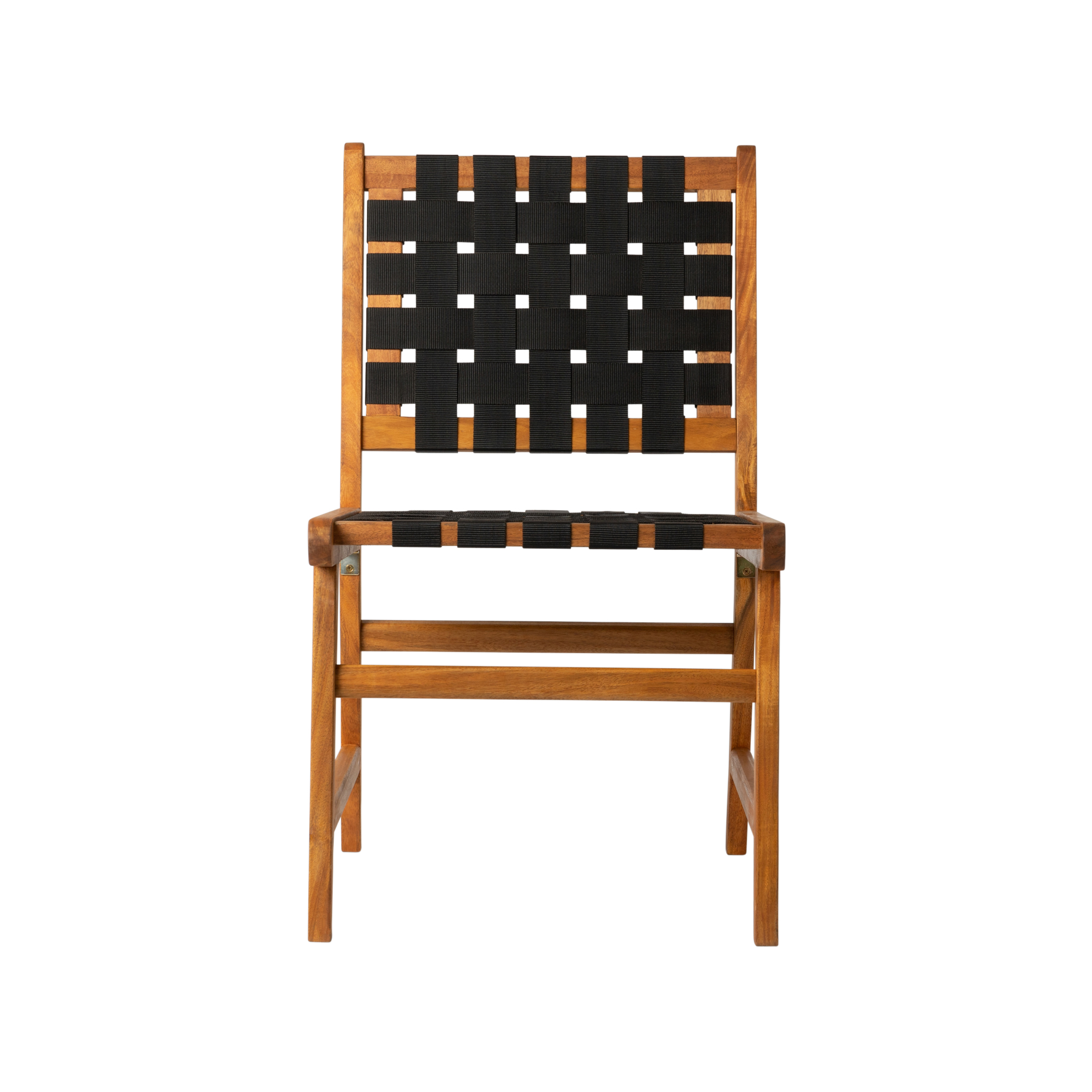 Balkene Home Sava Indoor Outdoor Armless Dining Side Chair, Portable Seating, Acacia Wood Woven Seat – Black Webbing