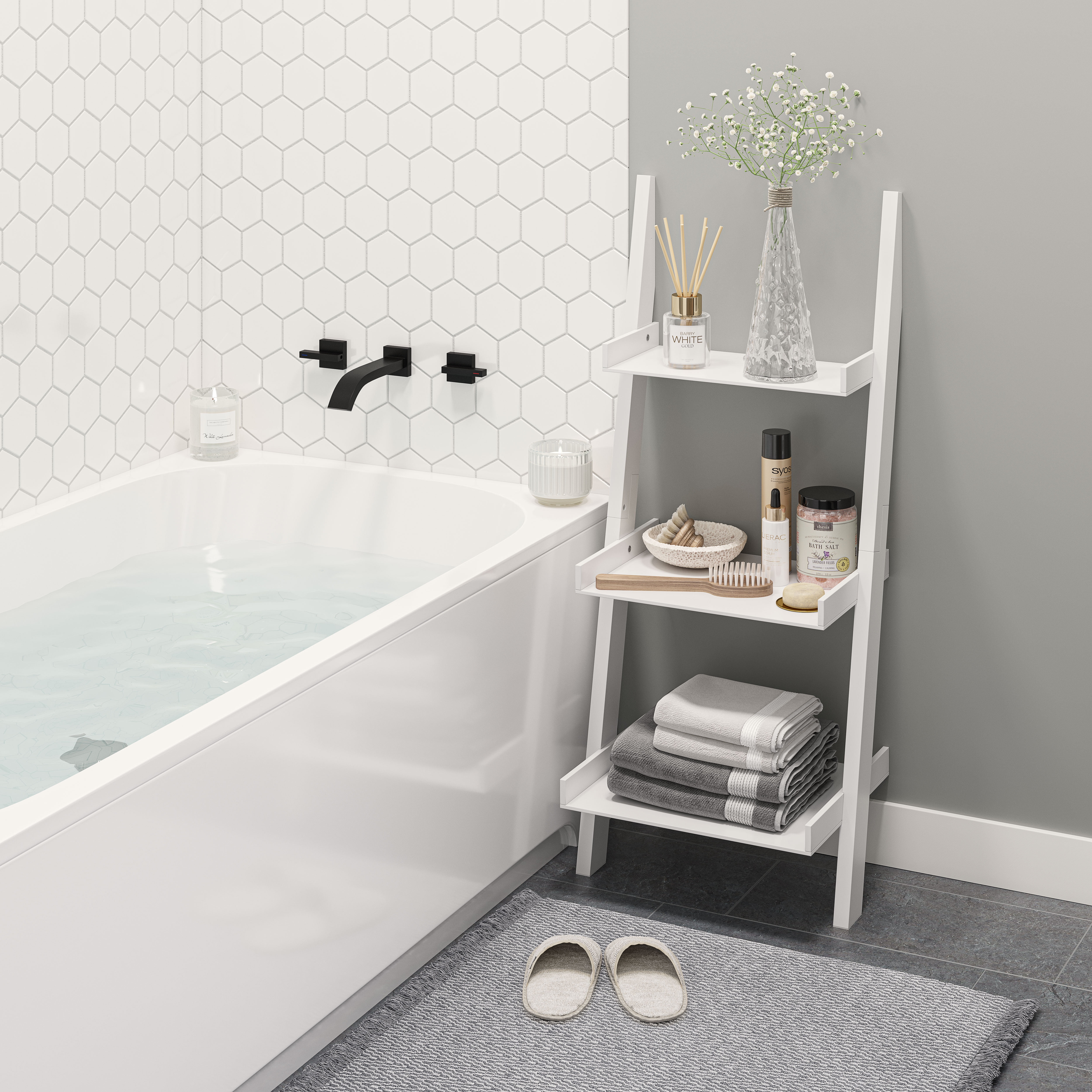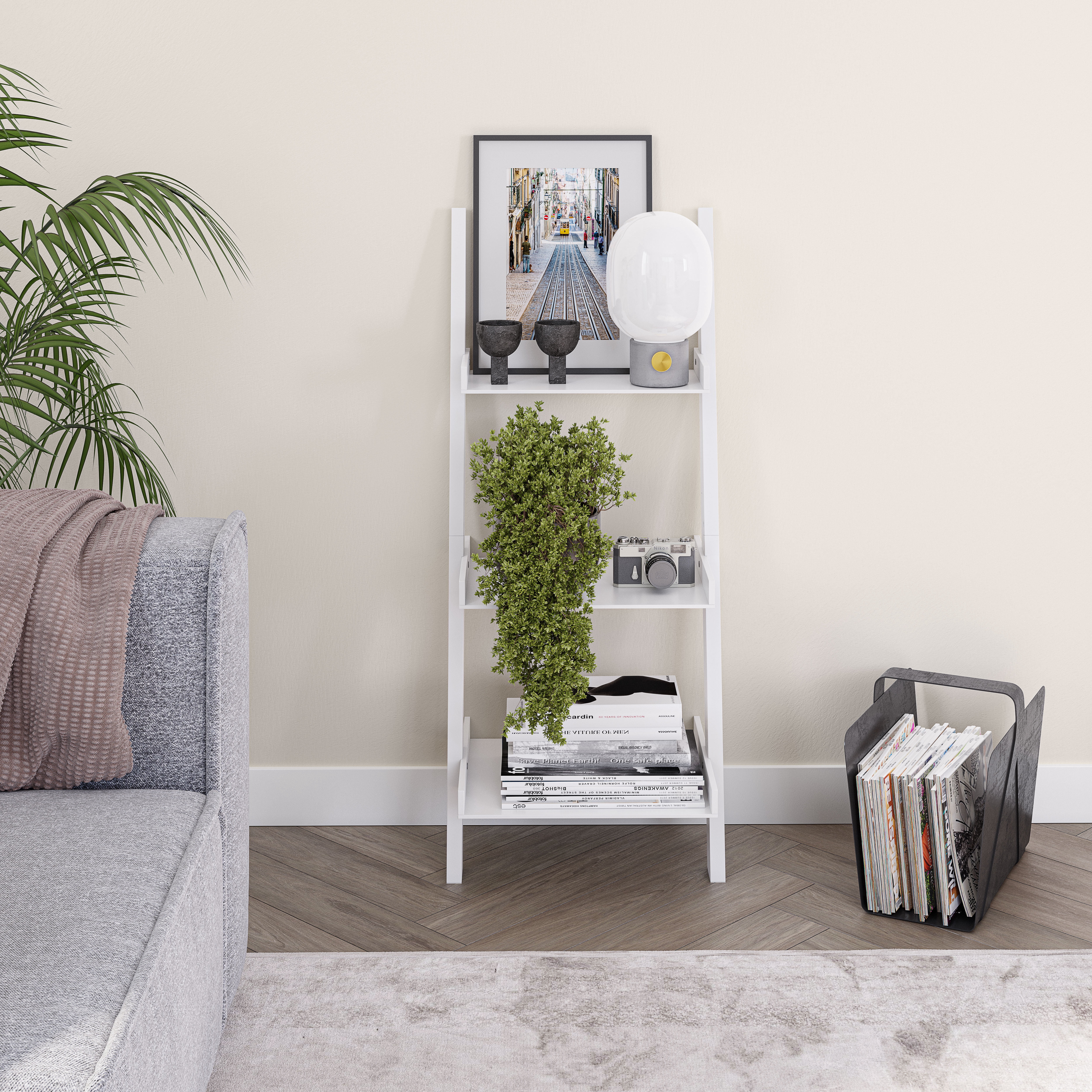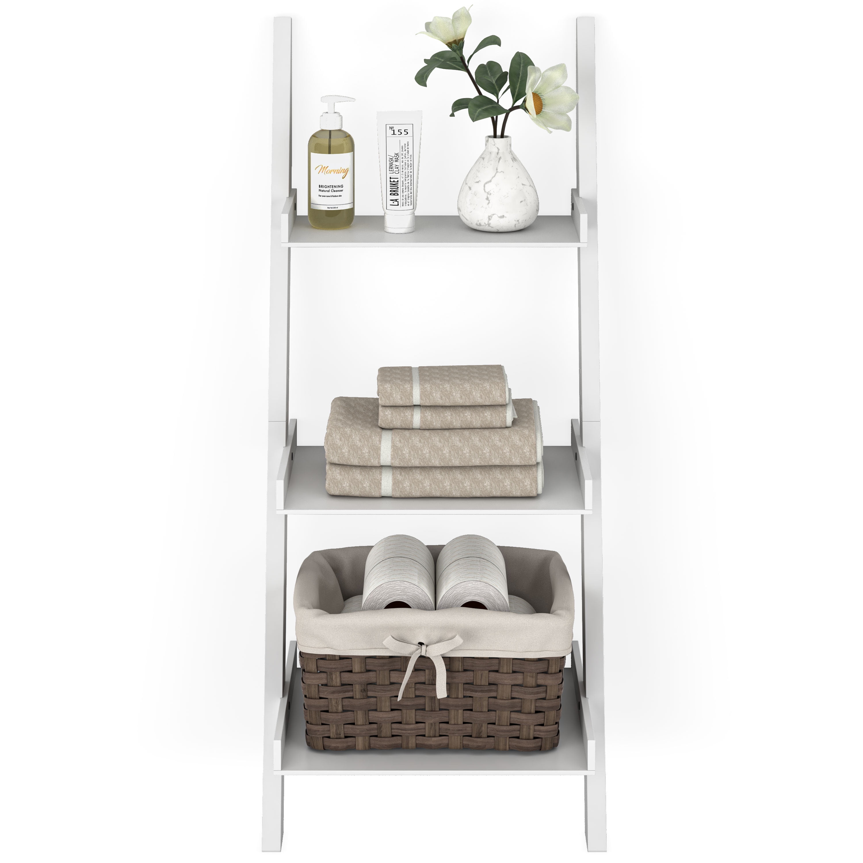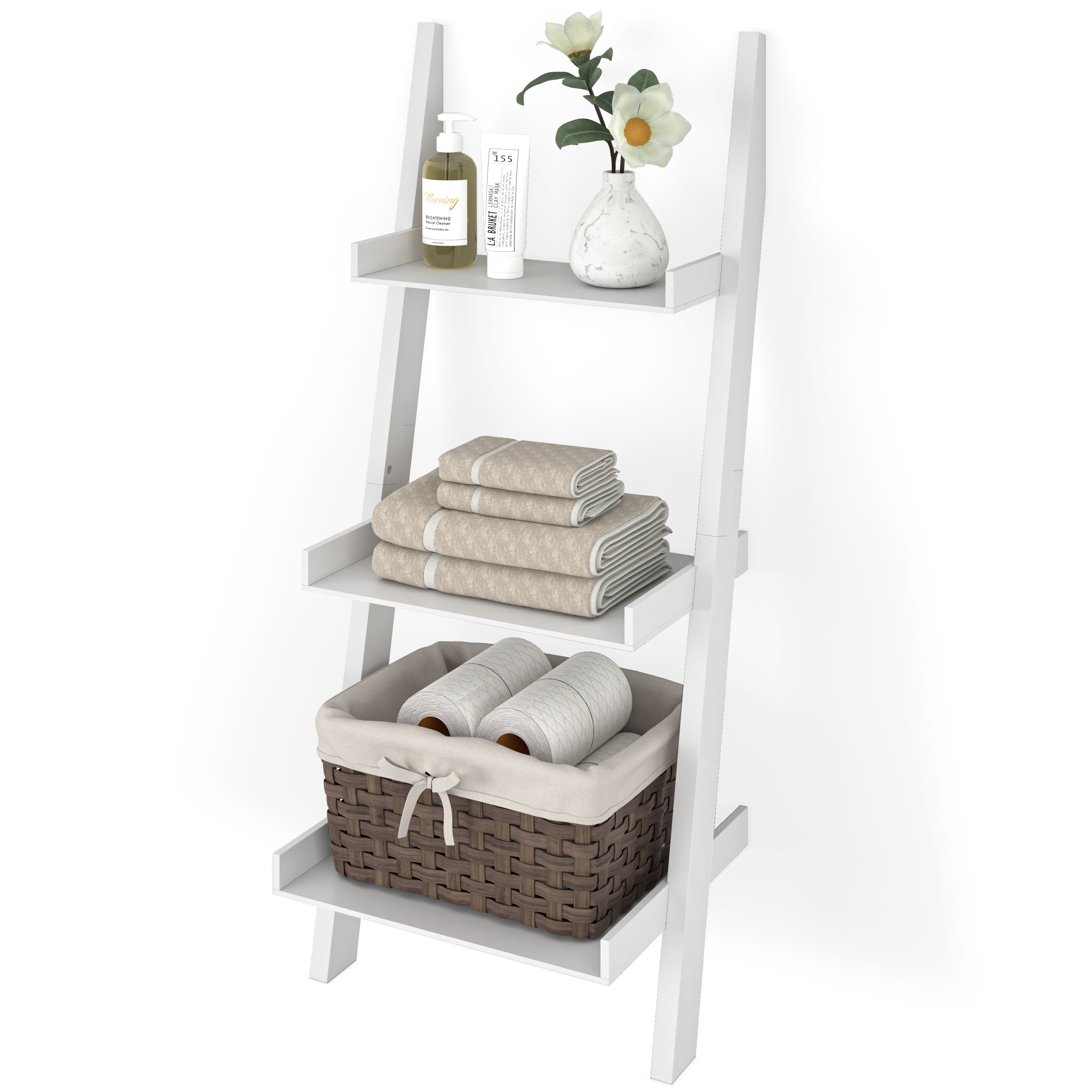 Organize your space with this Ballucci 3-Tier Storage Ladder Shelf Bookcase, Wood Leaning Ladder Bookshelf, White. A modern minimalist marvel, our COLOR ladder shelves for living room, bedroom, kitchen, and more help you arrange items and reduce clutter to transform your rooms into a clean and organ