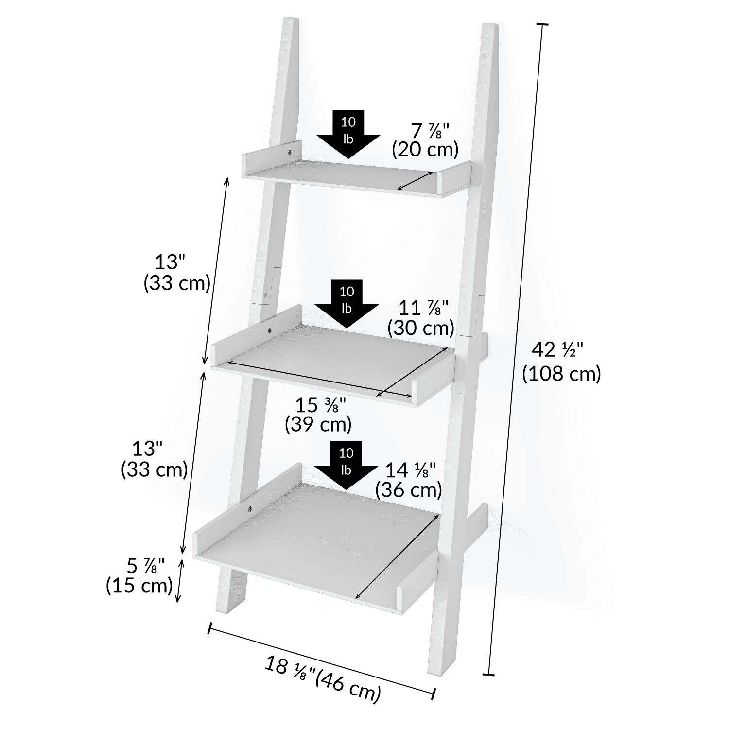 Organize your space with this Ballucci 3-Tier Storage Ladder Shelf Bookcase, Wood Leaning Ladder Bookshelf, White. A modern minimalist marvel, our COLOR ladder shelves for living room, bedroom, kitchen, and more help you arrange items and reduce clutter to transform your rooms into a clean and organized space. Stick to a contemporary minimalist bookshelf stand organizer that doesn’t sacrifice sturdiness for style. With a sleek, modern design and straight lines, these ladder shelves are made with durable wood that can hold up to 10 lbs per shelf! With widened panels, you’re free to put as much or as little on the shelves of this rack. You can use its 3 roomy shelves to display and organize all your photos, books, plants, and other decorative items. This small bookshelf for small spaces has a lightweight design and can lean against wall surfaces. The open-shelving structure will add visual space to your living room, bedroom, bathroom, kitchen, office or any other room.