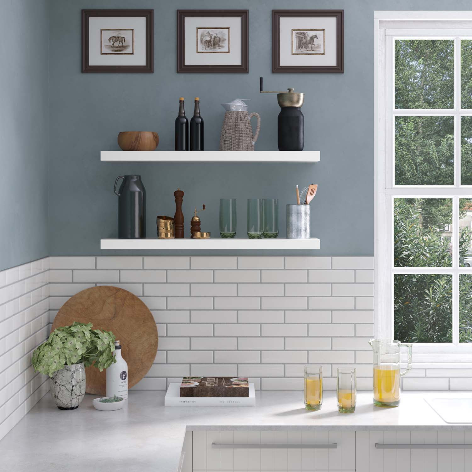 Ballucci 36″ Floating Shelves, 2-Pack Wood Wall Shelf Set with Invisible Brackets, 8″ Deep, White