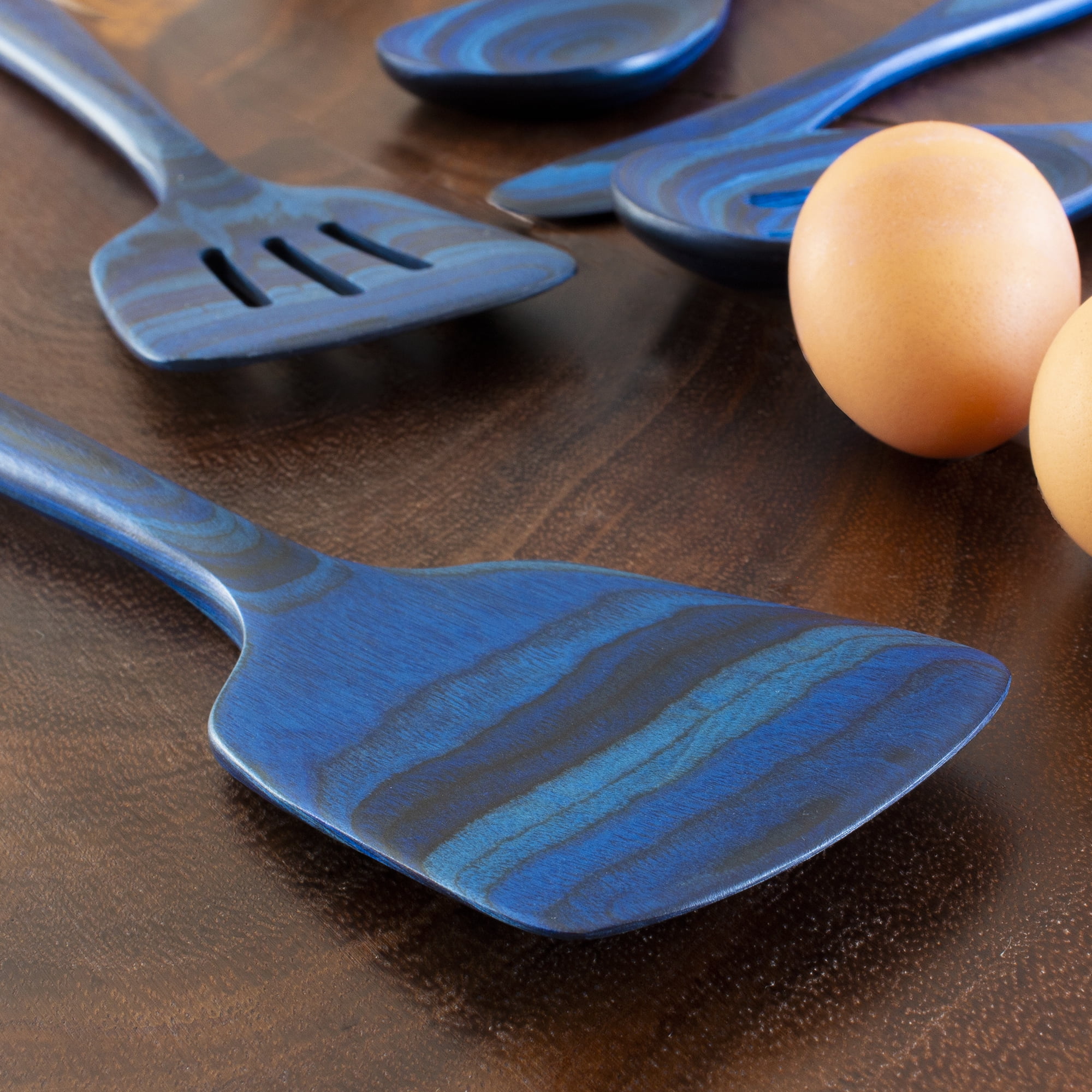 CRAFTED WITH COLOR: These gorgeous utensils feature a brilliant blend of deep blue colors A VARIETY OF FUNCTIONAL TOOLS: 4 piece utensil set includes a Mixing Spoon, Slotted Spoon, Spatula and Slotted Spatula MASTERFUL MIXING SPOONS: At 12-1/2 inches long, these beautiful mixing spoons can reach even the deepest of cooking pots; they’re perfect for stirring up soups and sauces SPLENDID SPATULAS: These beautiful spatulas have ample length for flipping and turning food as well as for serving guests AN ESCAPE FROM ORDINARY UTENSILS: Our Malta Collection takes inspiration from the deep blue waters surrounding the picturesque Mediterranean island