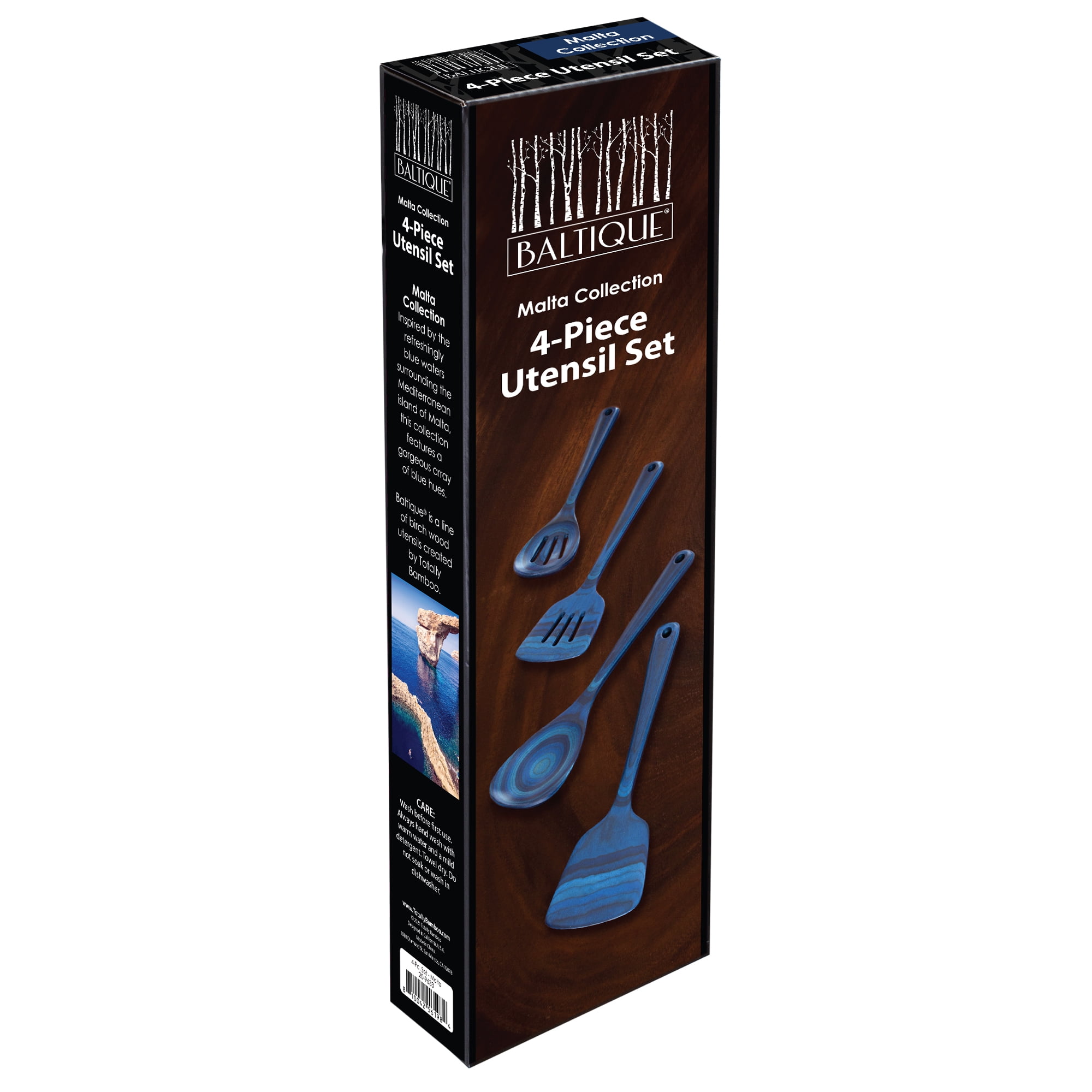Baltique Malta Collection 4 Piece Wooden Cooking Utensil Set, Safe for Nonstick