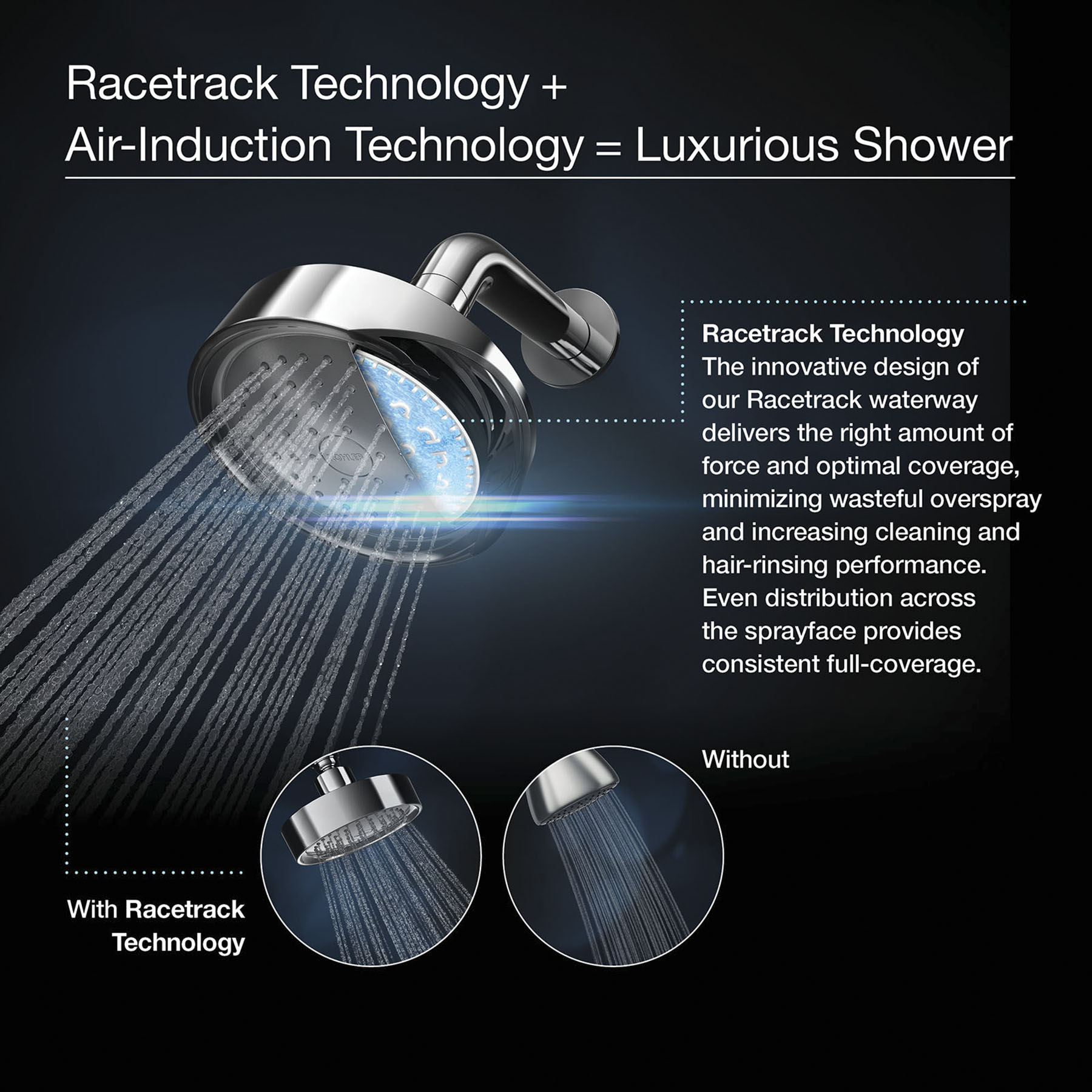 This Bancroft single-function showerhead brings innovation to your bathroom with Katalyst, a cutting-edge technology that intensifies the flow of water for a completely indulgent showering experience. With a new nozzle pattern, internal waterway design, and air-induction system, this technology maximizes every water drop and creates a richer, more intense flow of water that heightens the shower’s sensory experience. By infusing two liters of air per minute, Katalyst delivers a powerful, voluptuous spray that clings to the body with larger, fuller water drops.