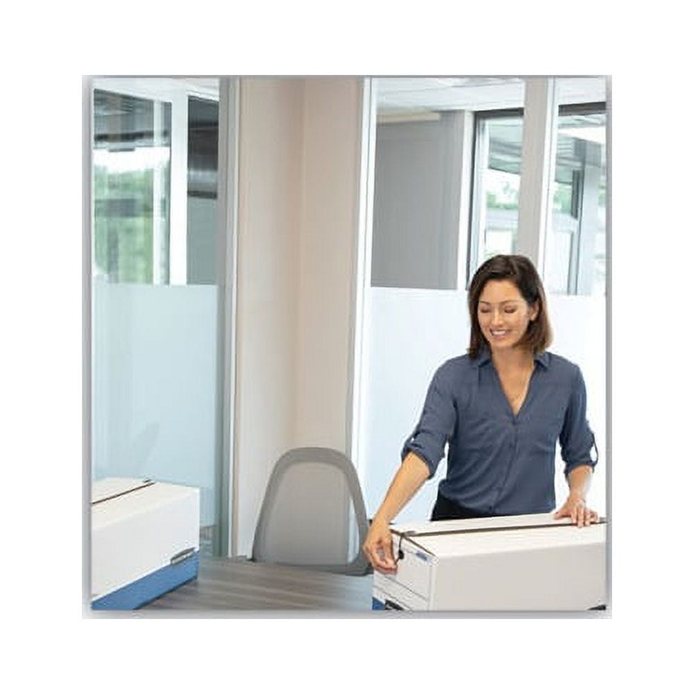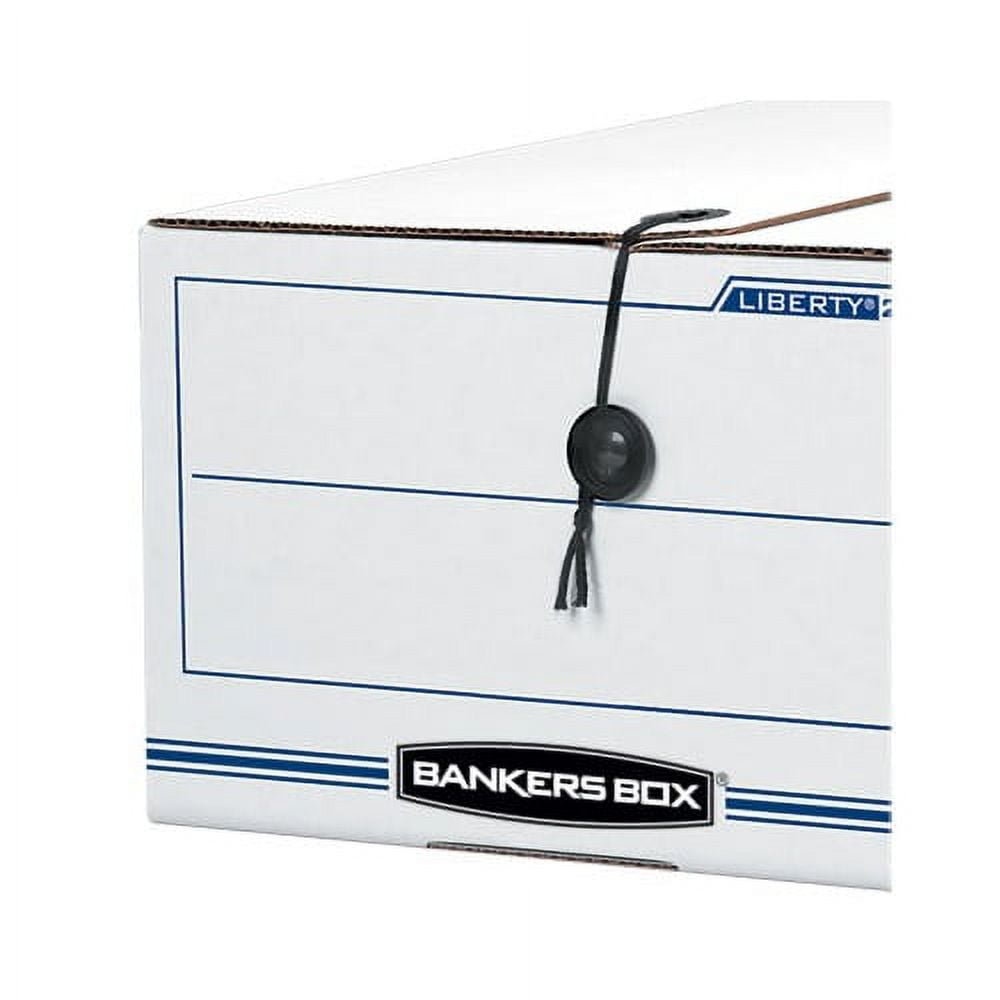 Strong, durable storage boxes are designed for frequent access and maximum stackability. Maximum security box with string-and-button closure keeps your record form-size files secure, even if box is overturned. Reinforced plastic handle makes it easy to pull box off shelving. Storage boxes offer easy one-step FastFold setup. Stacking weight is 375 lb.Bankers Box Liberty Check and Form Boxes, White, Blue, 12 / Carton (Quantity)