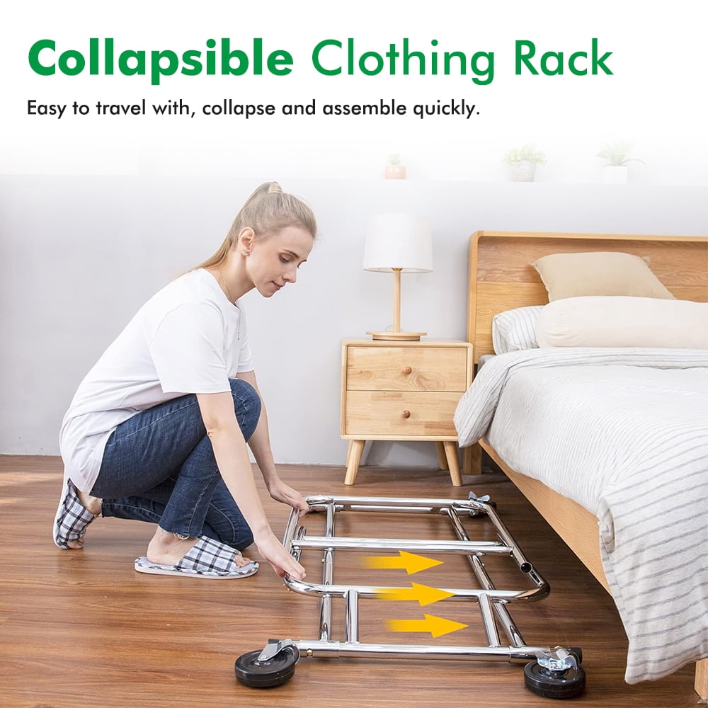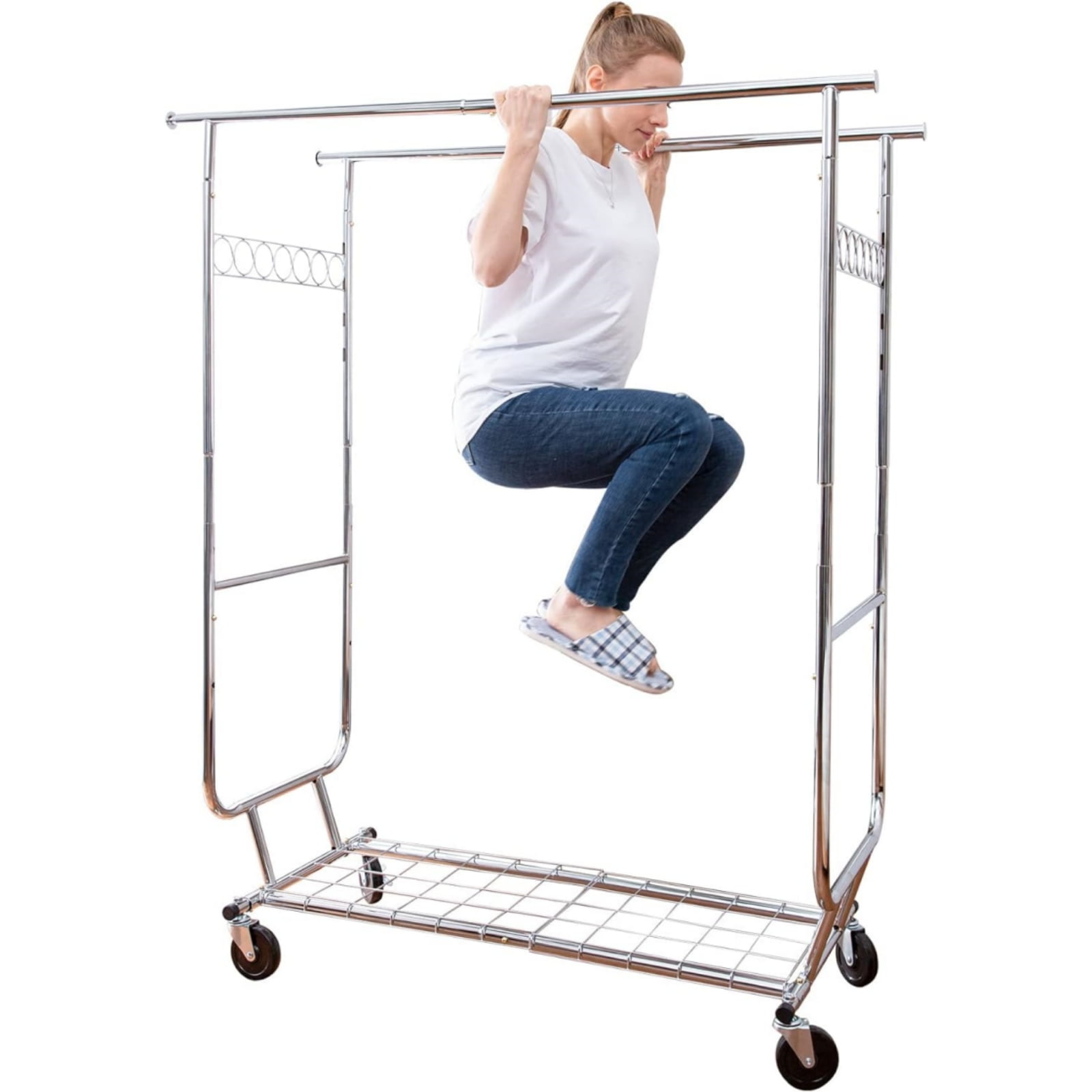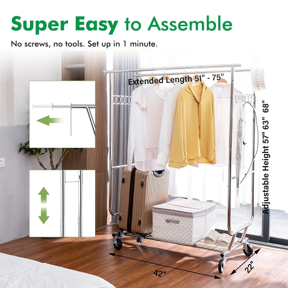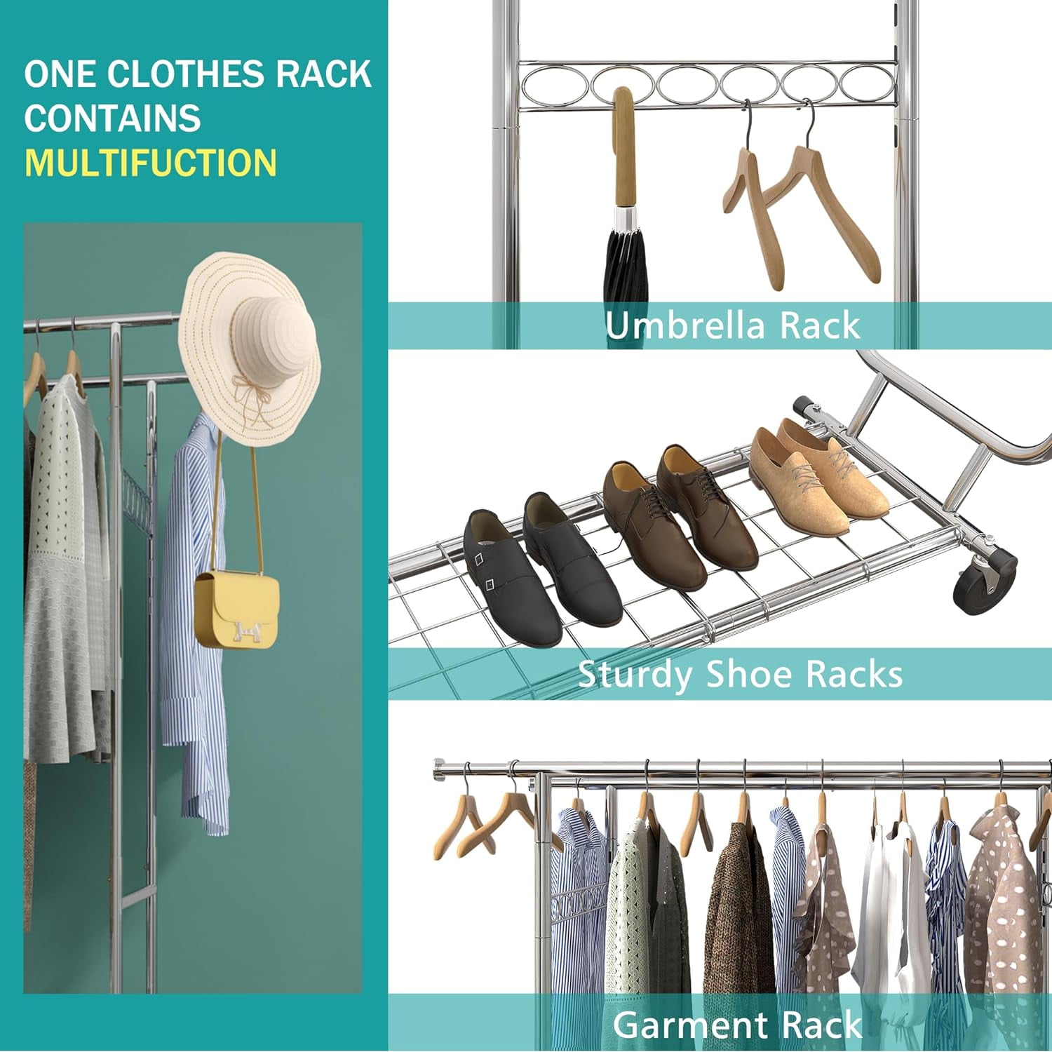 Baokaler 620 lbs Heavy Duty Garment Rack with Shelves Collapsible Clothing Racks on Wheels Rolling Clothes Rack for Hanging Clothes Portable Adjustable, Chrome Finish