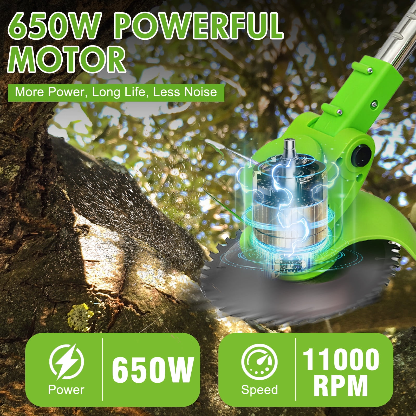 Lightweight and powerful design for effortless lawn trimming Cordless operation eliminates the hassle of wires and motor burnout Durable motor with a noload speed of 18,000 RPM for efficient performance Weighs only 3.6 pounds, making it easy to handle for all users Equipped with two rechargeable 2000mAh highcapacity 24V batteries for extended use
