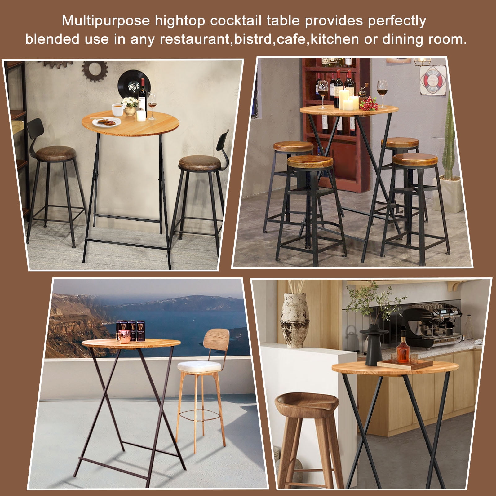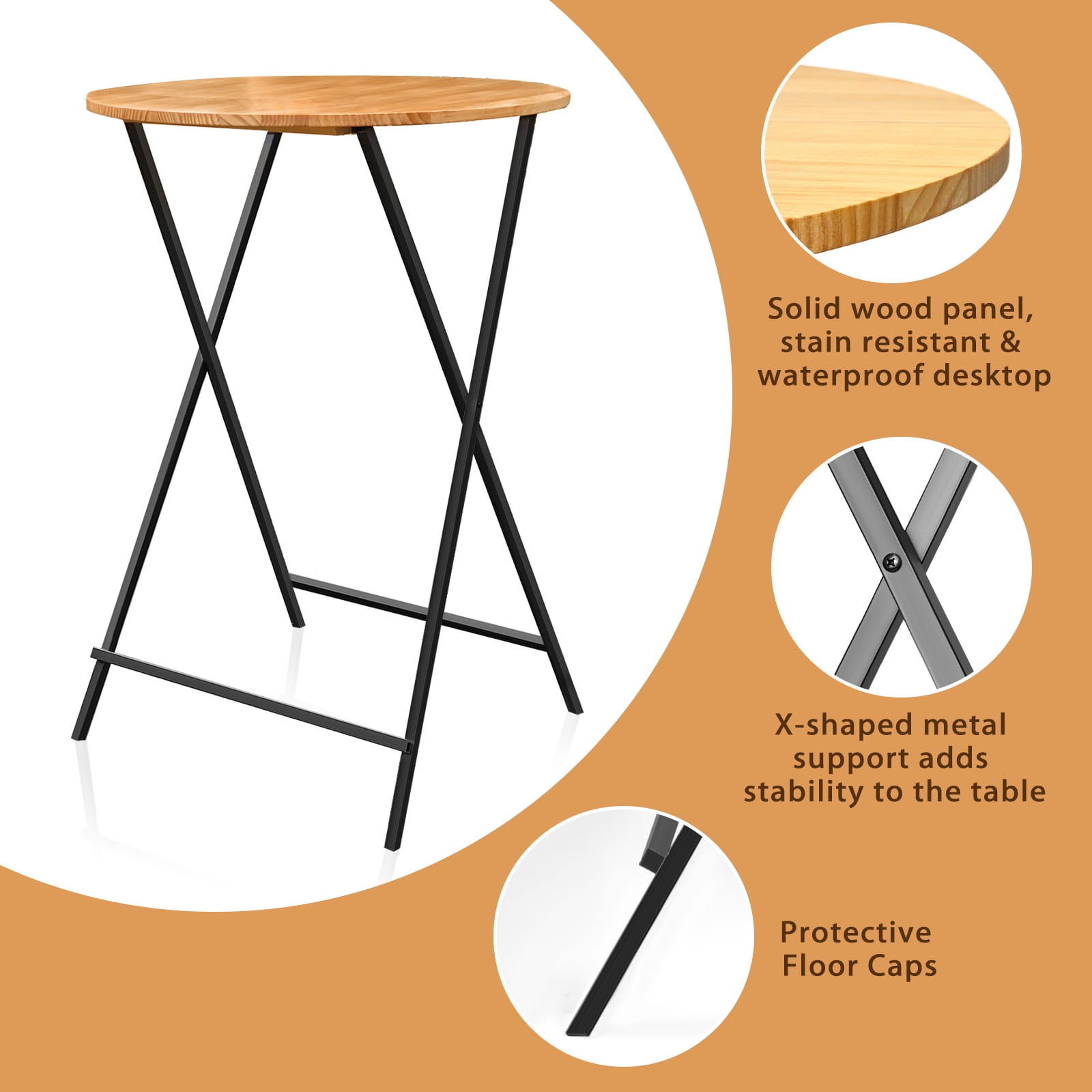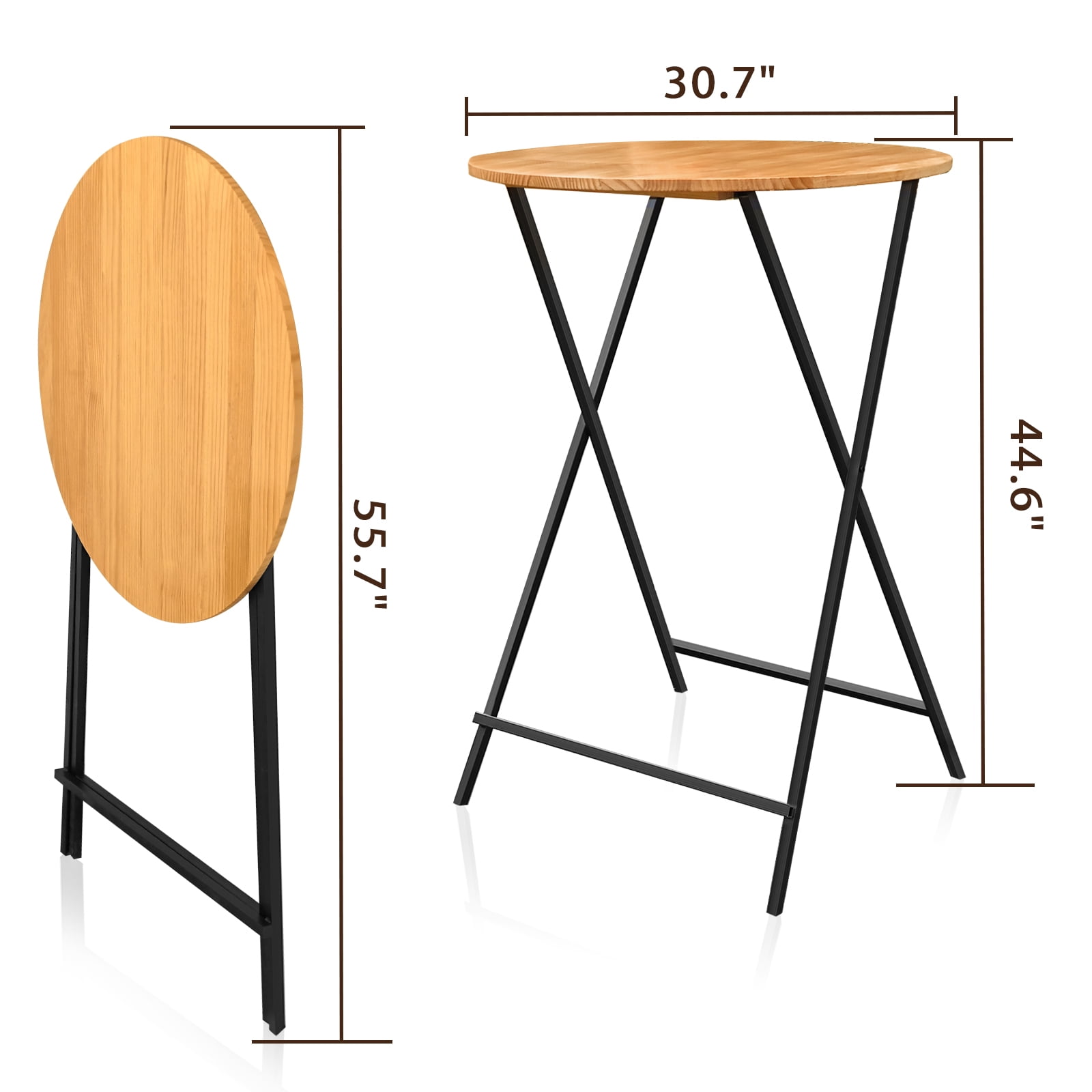 【Package Includes】1 * bar table. This versatile bar table is sturdy, uses solid wood, and folds for easy storage and transportation. When you’re done, just fold the metal legs and you’re ready to ship. 【Fit For Decoration】Wooden tabletop is suitable for any decoration in the room, adding color to your room while also giving you extra desk space. This is a good side table. 【Easy To Clean】Wooden tabletop is easy to clean, just wipe with a damp cloth, you can clean the stains on the table. Not easy to stain.