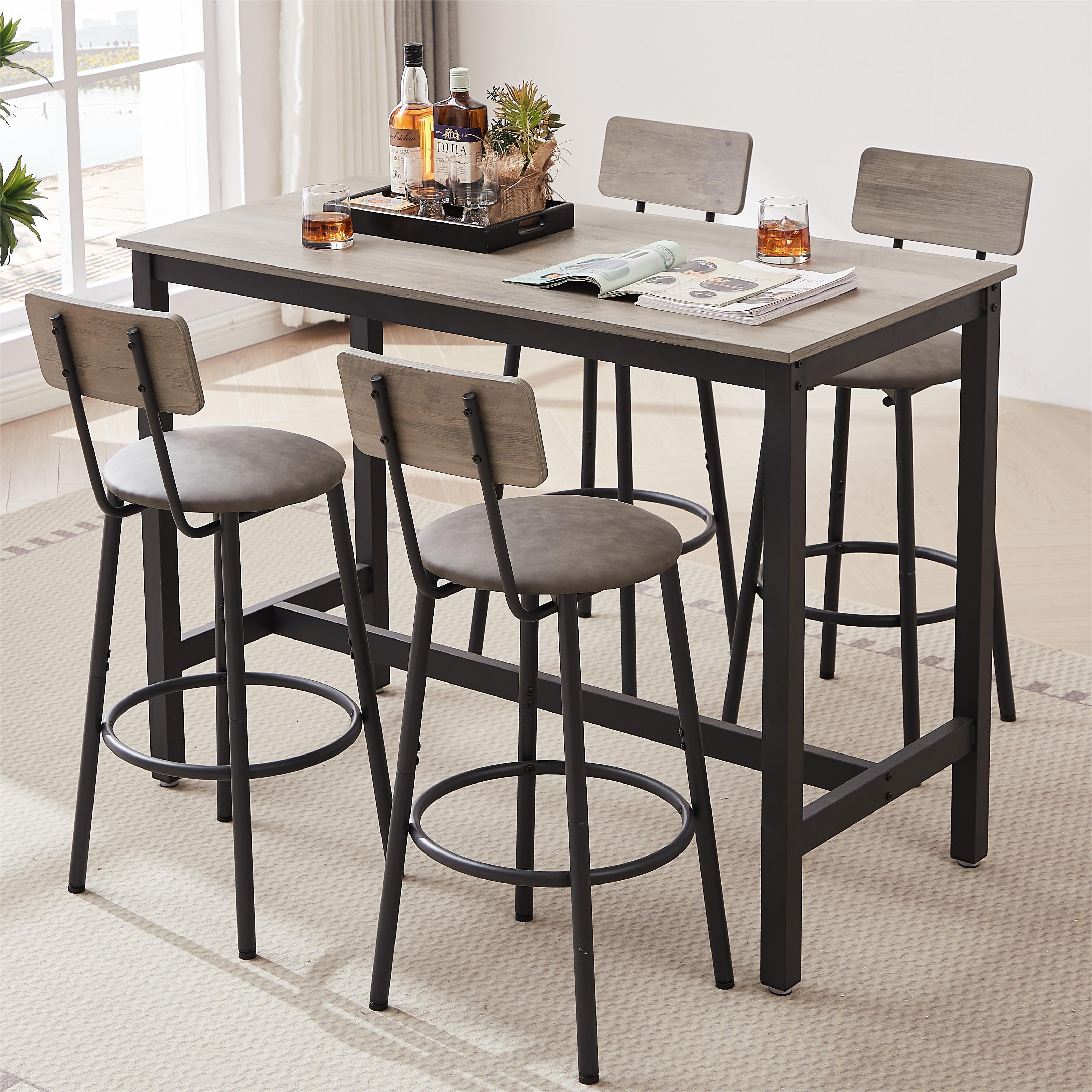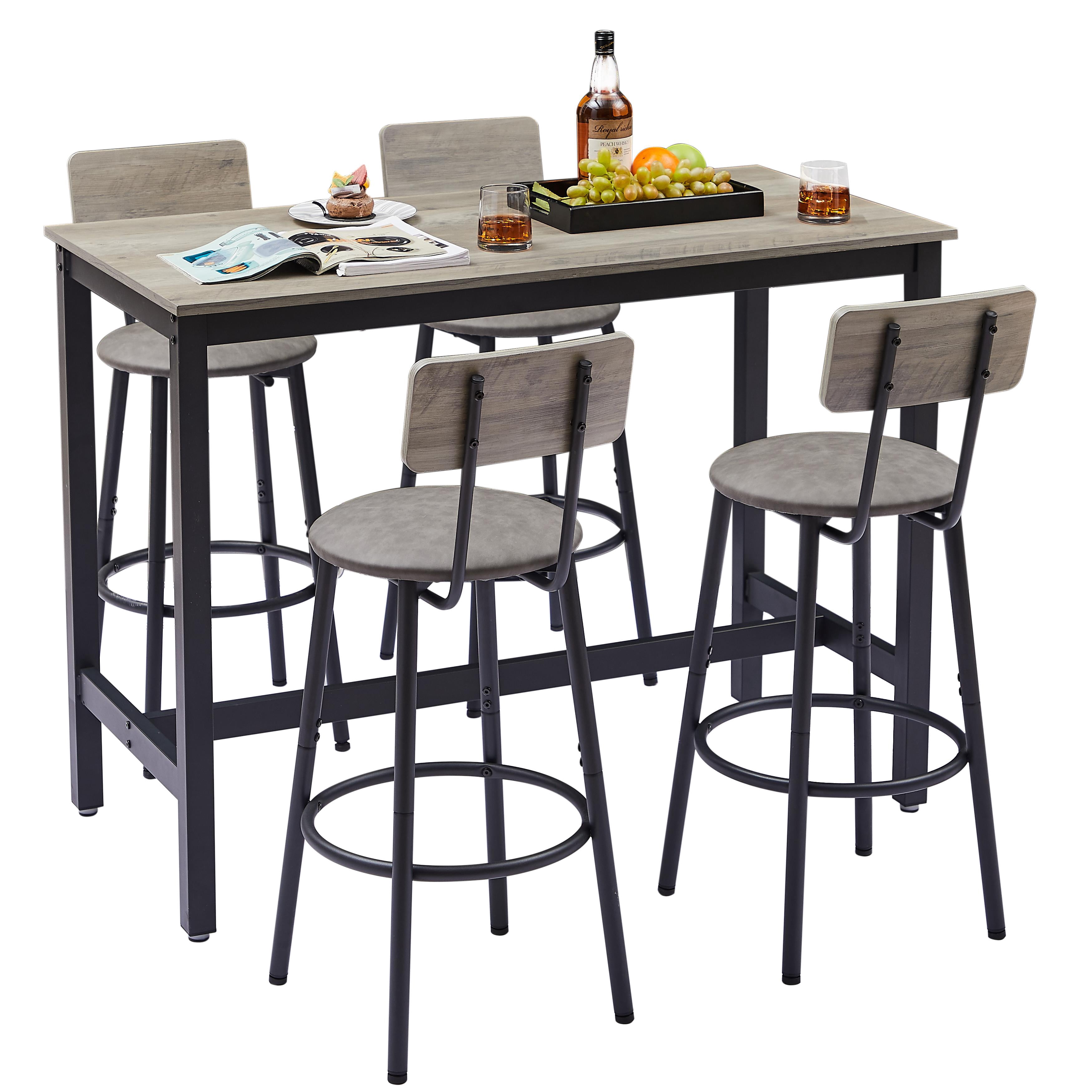 Bar Table Set with 4 Chairs Set Industrial Counter Height Pub Table, Kitchen Dining Table, 47″ Breakfast Table Set with 4 PU Backrest Stools,5 Pieces Home Kitchen Set,Grey