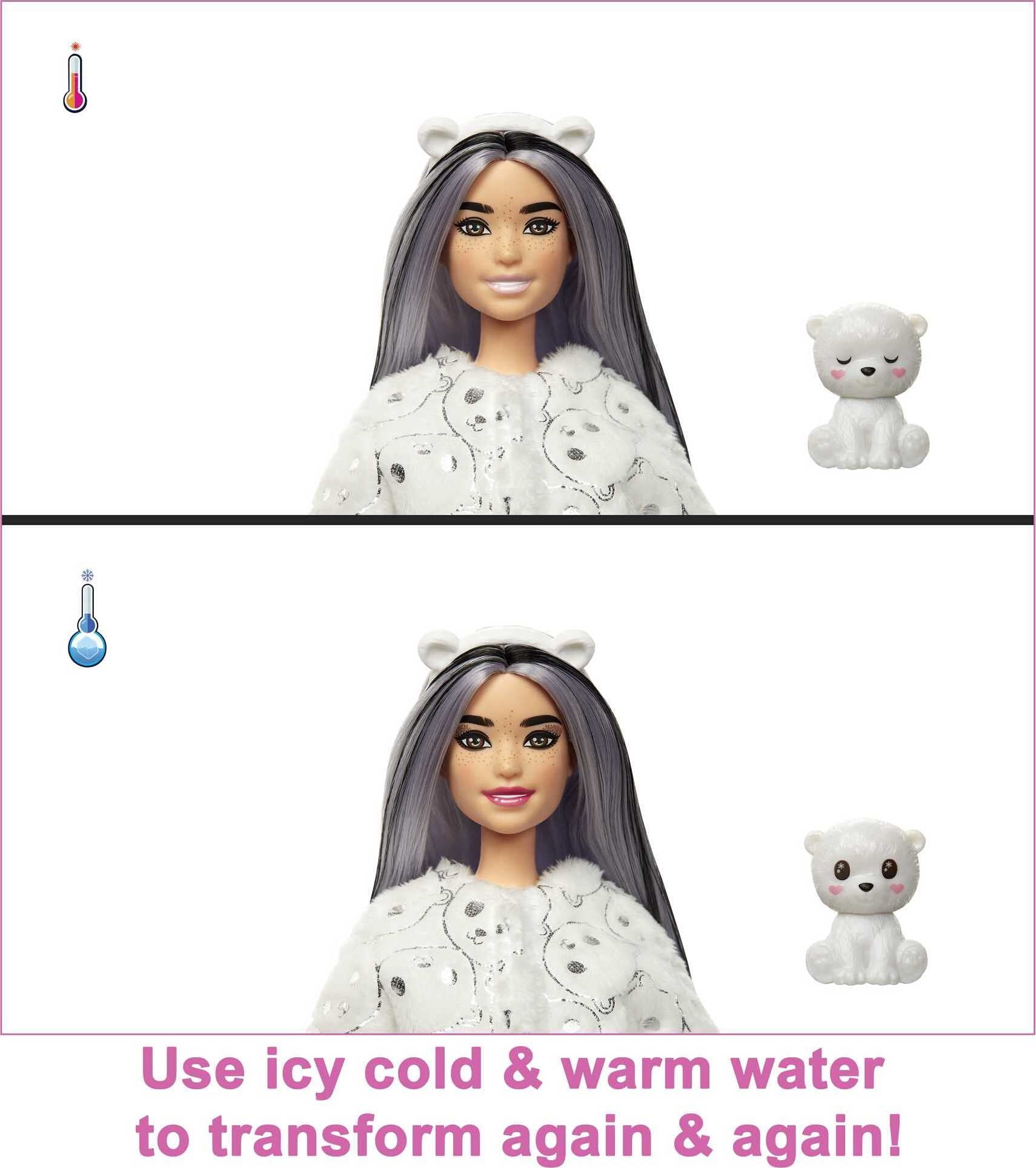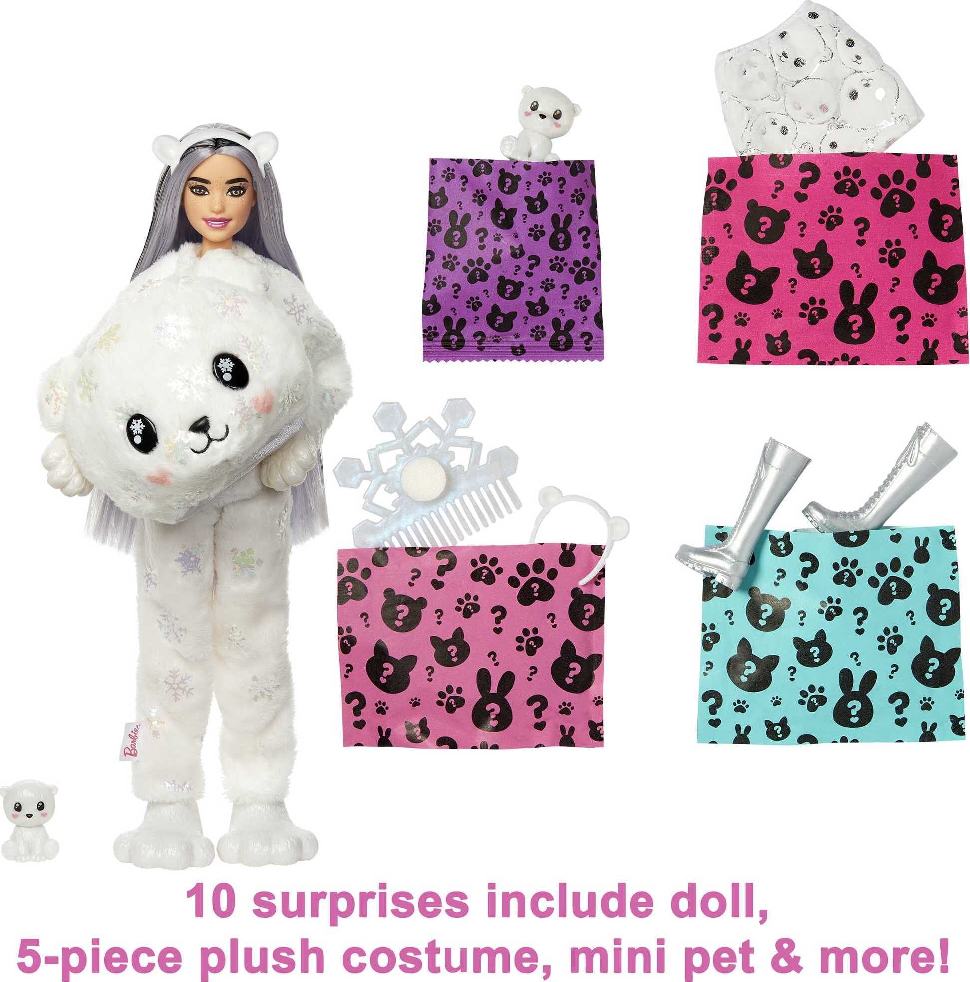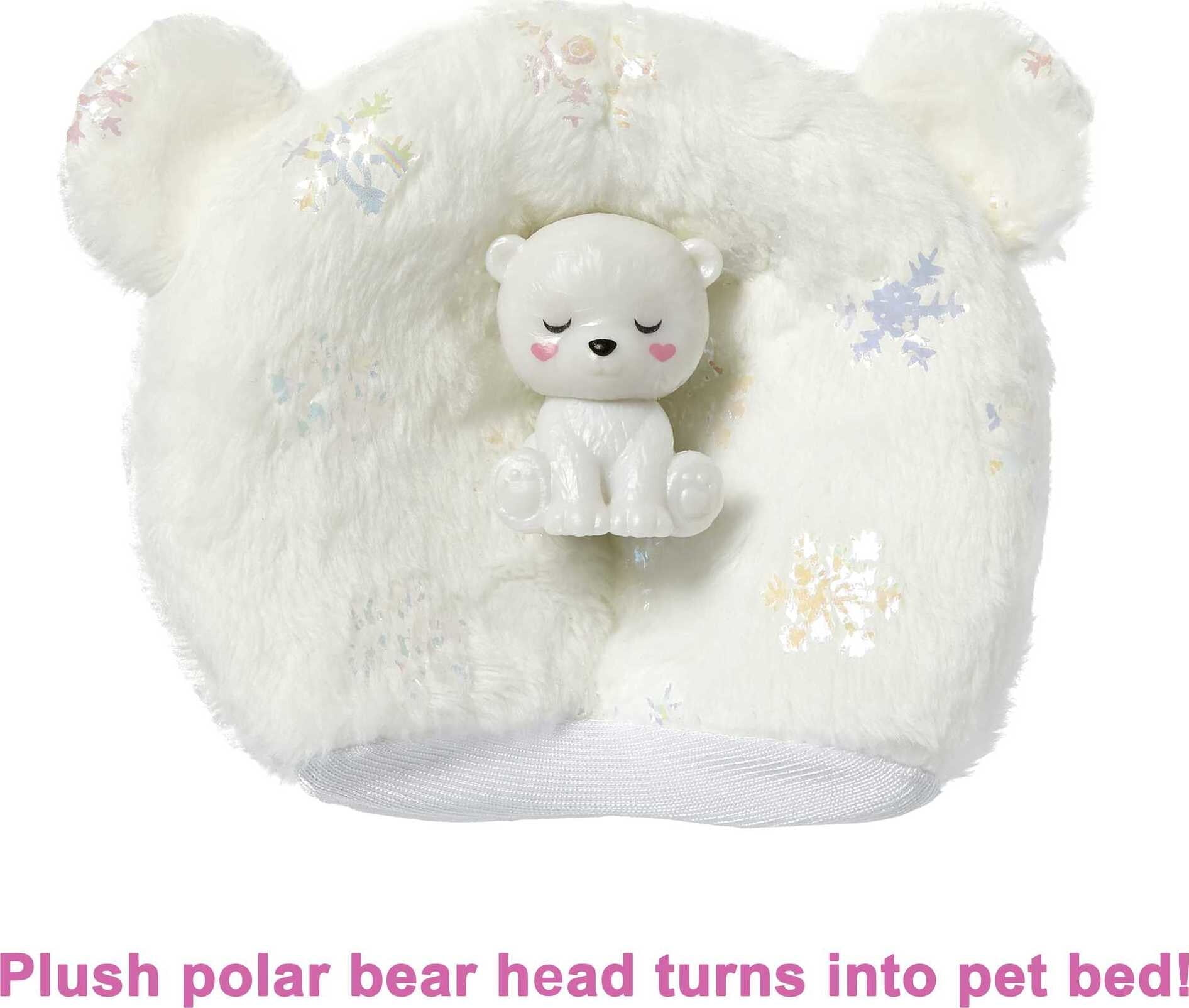 Barbie Cutie Reveal Snowflake Sparkle Fashion Doll, Polar Bear Plush Costume, Mini Pet & Accessories