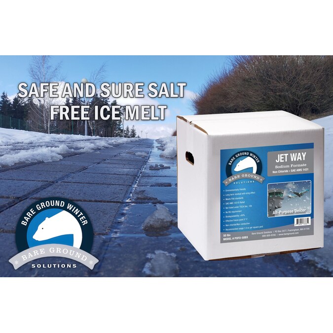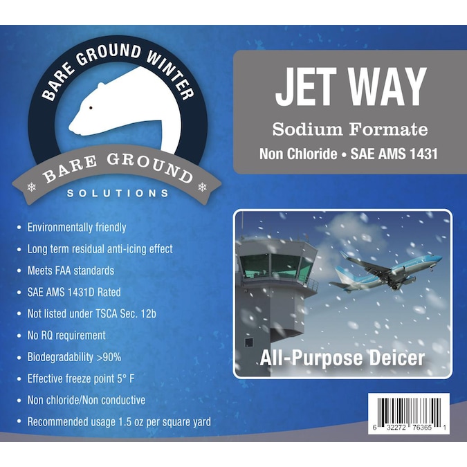 Bare Ground jet way sodium formate deicer is a non chloride/non conductive granular deicer that promotes faster melting with long-term anti icing effect.
