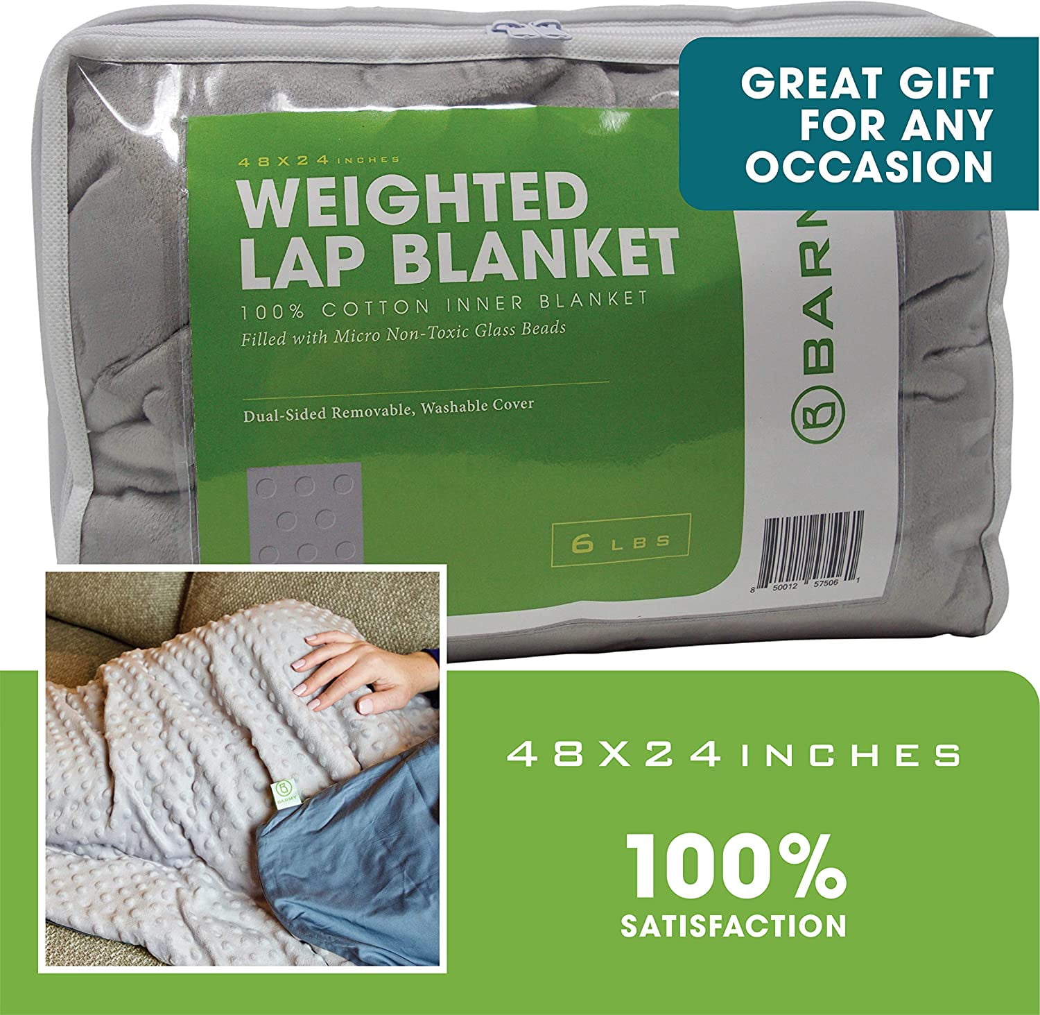 Barmy Weighted Lap Blanket for Adults (48 x 24 inches, 6lbs) Cool Gray, Removable, Washable Cover