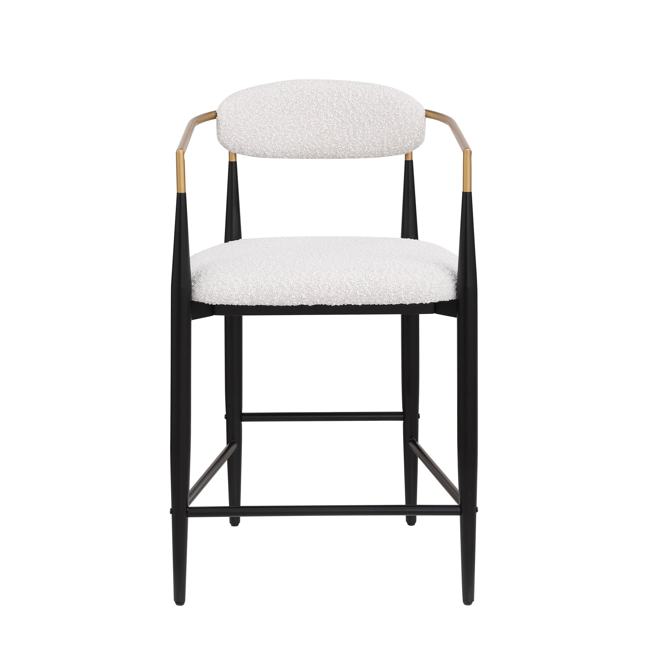 This modern glam beige, black, & gold colored cushioned counter stool is a sophisticated and eye-catching addition to any contemporary dining or bar setting. These stools seamlessly combines modern design elements with a touch of glamour, creating a visually striking and luxurious piece of furniture.