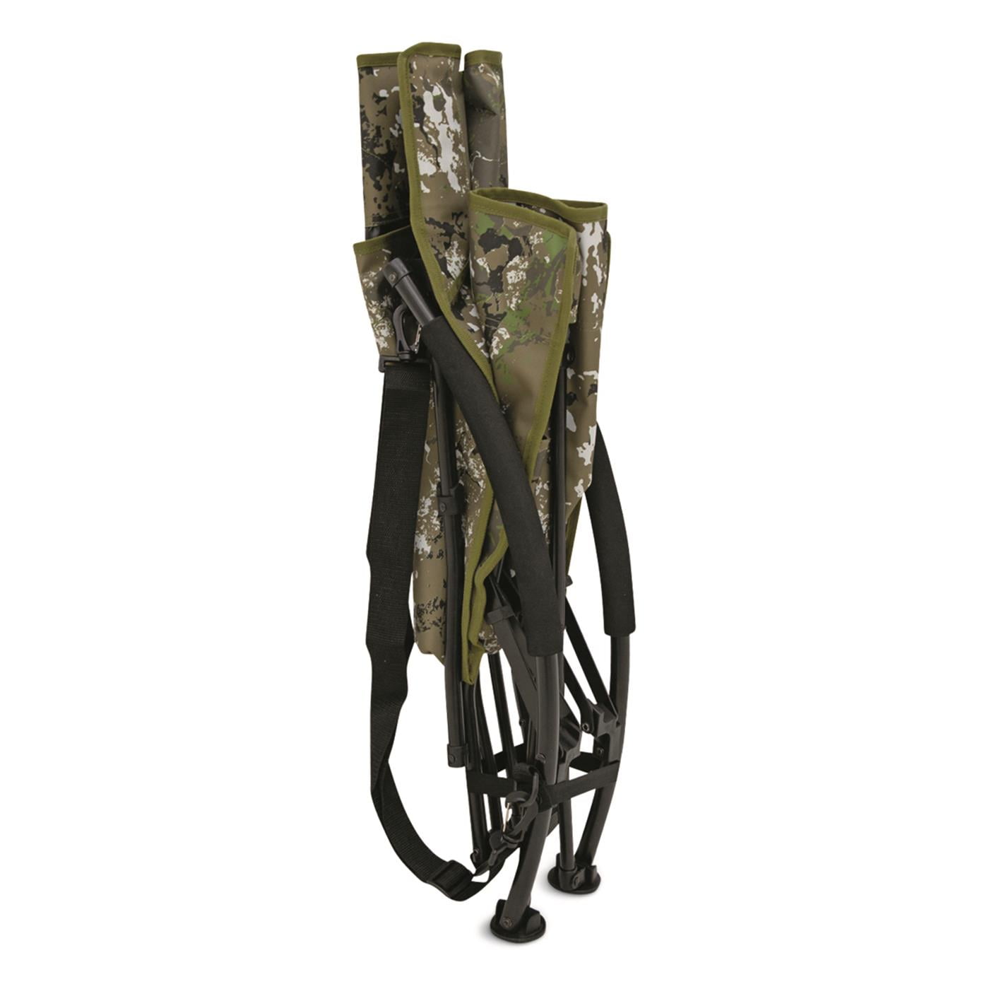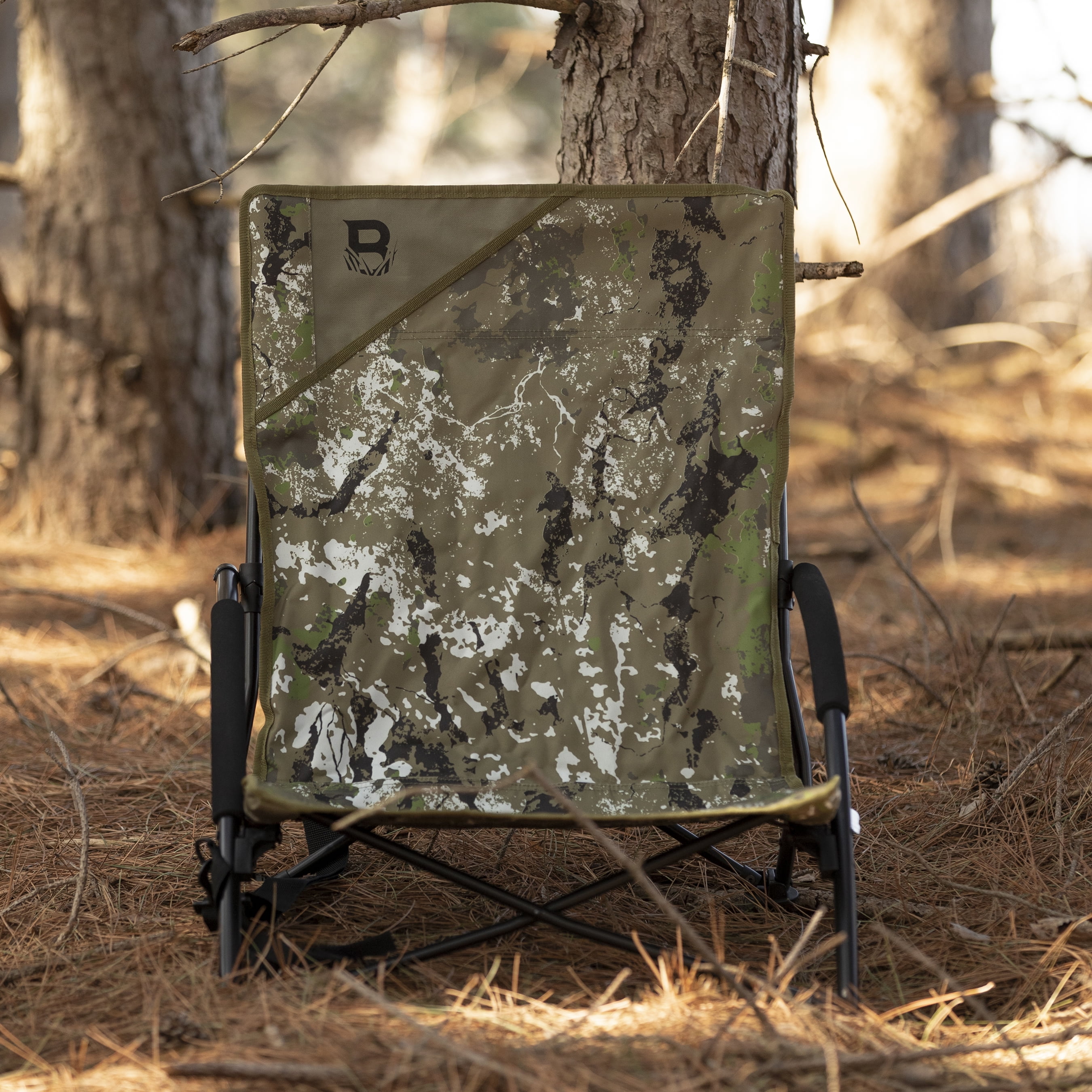The low profile design of the Barronett Blinds® Ground Gobbler Chair keeps you dry and off the ground for run and gun hunting. Its seat comfortably angles back, relieving pressure off your legs while the padded armrests dampen noise and add comfort. The chair folds up for easy transport with its integrated carry strap.