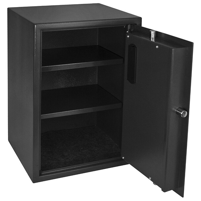 - This safes interior features two adjustable shelves and a protective floor mat