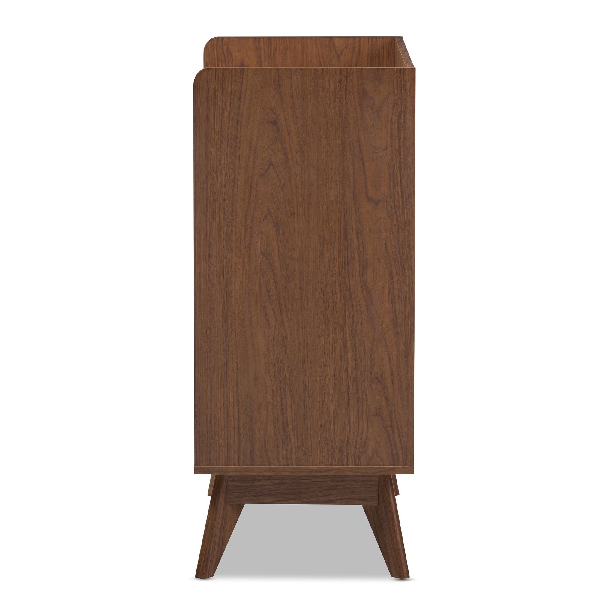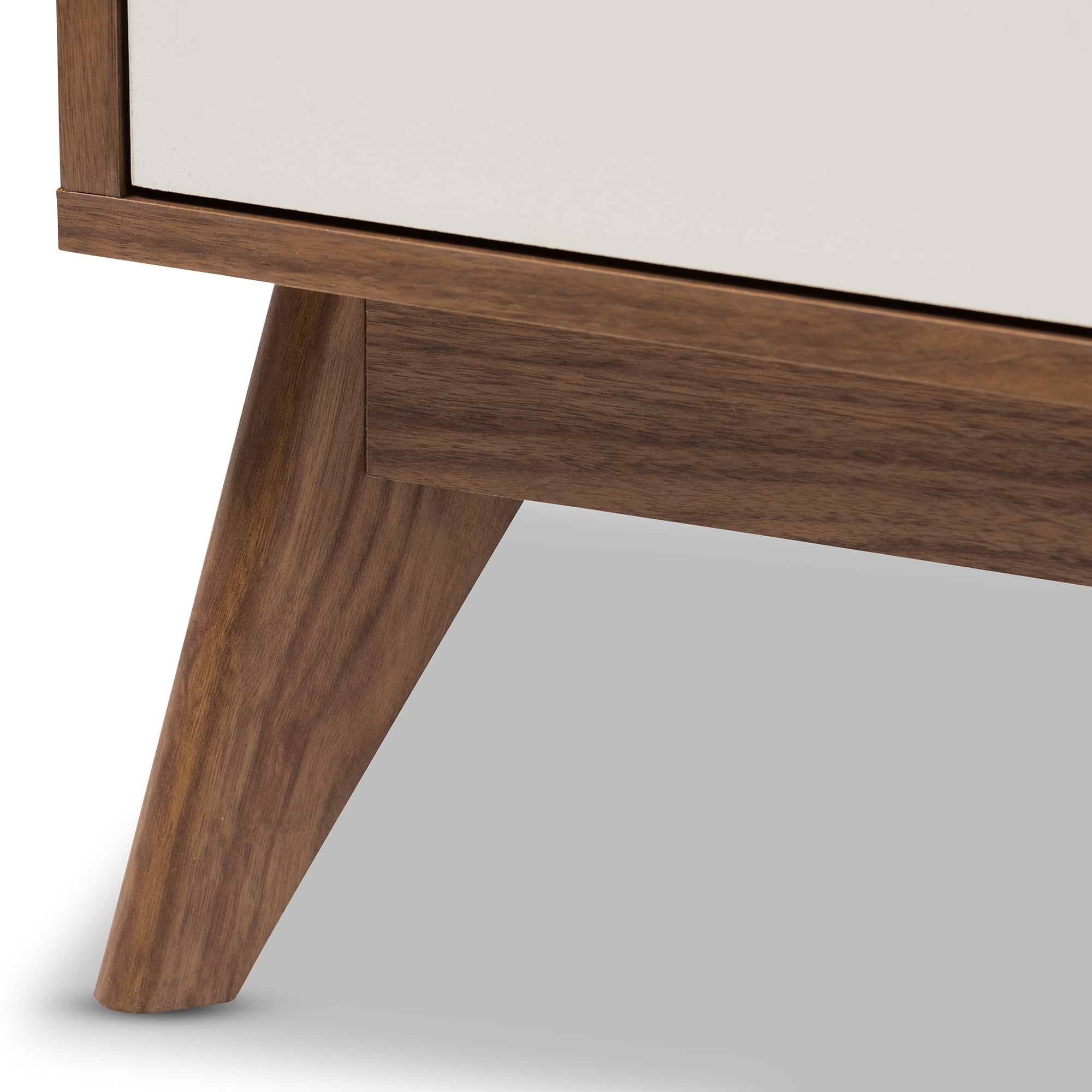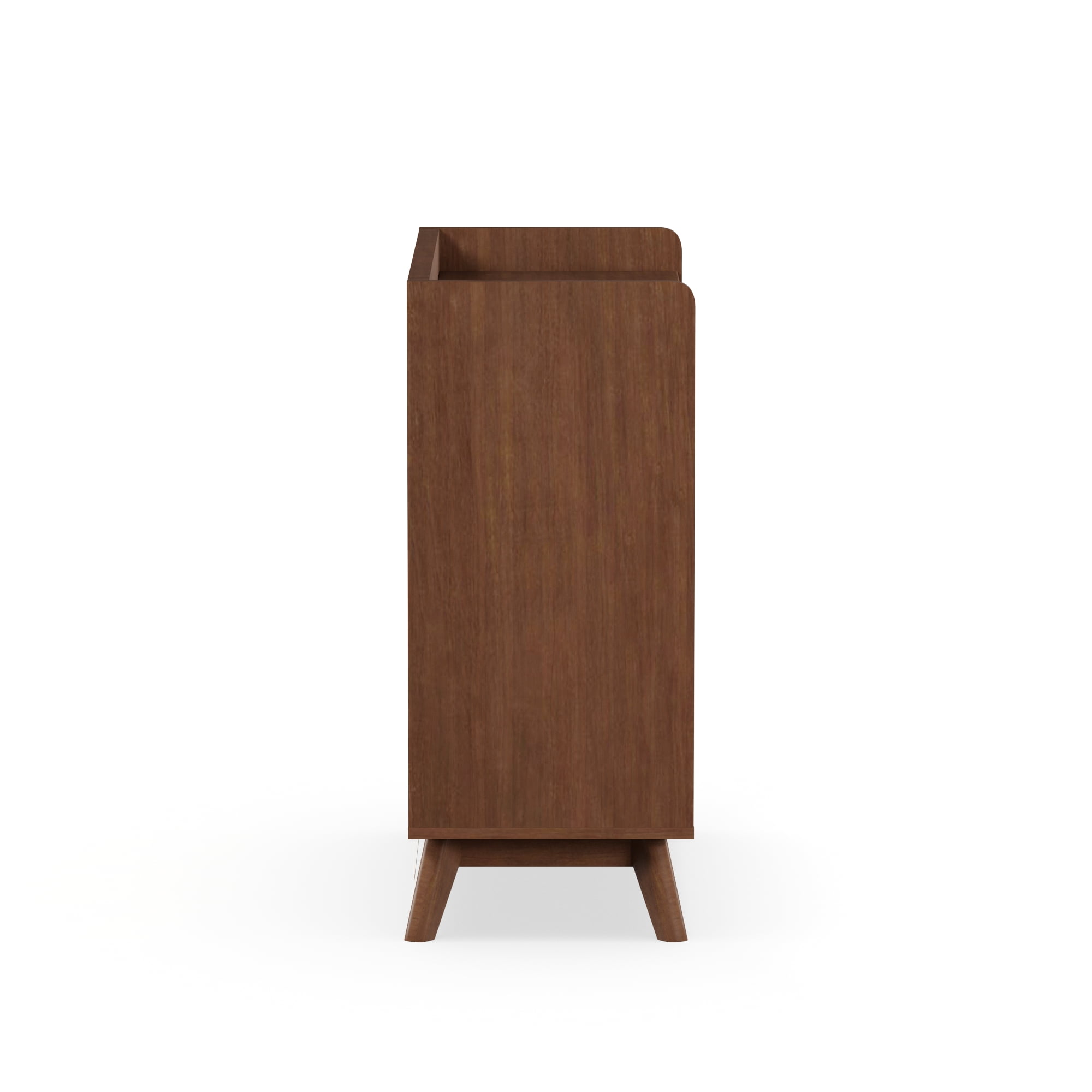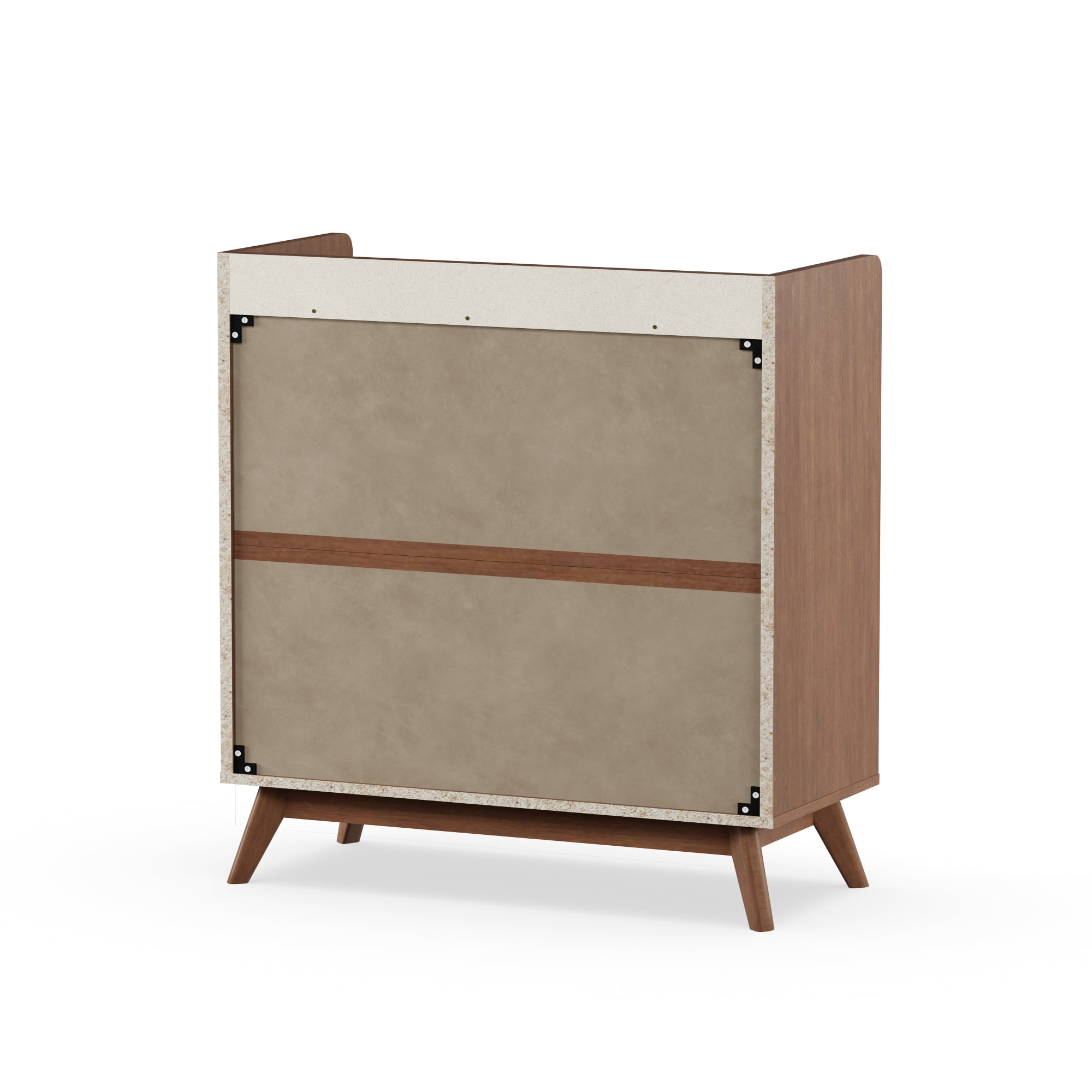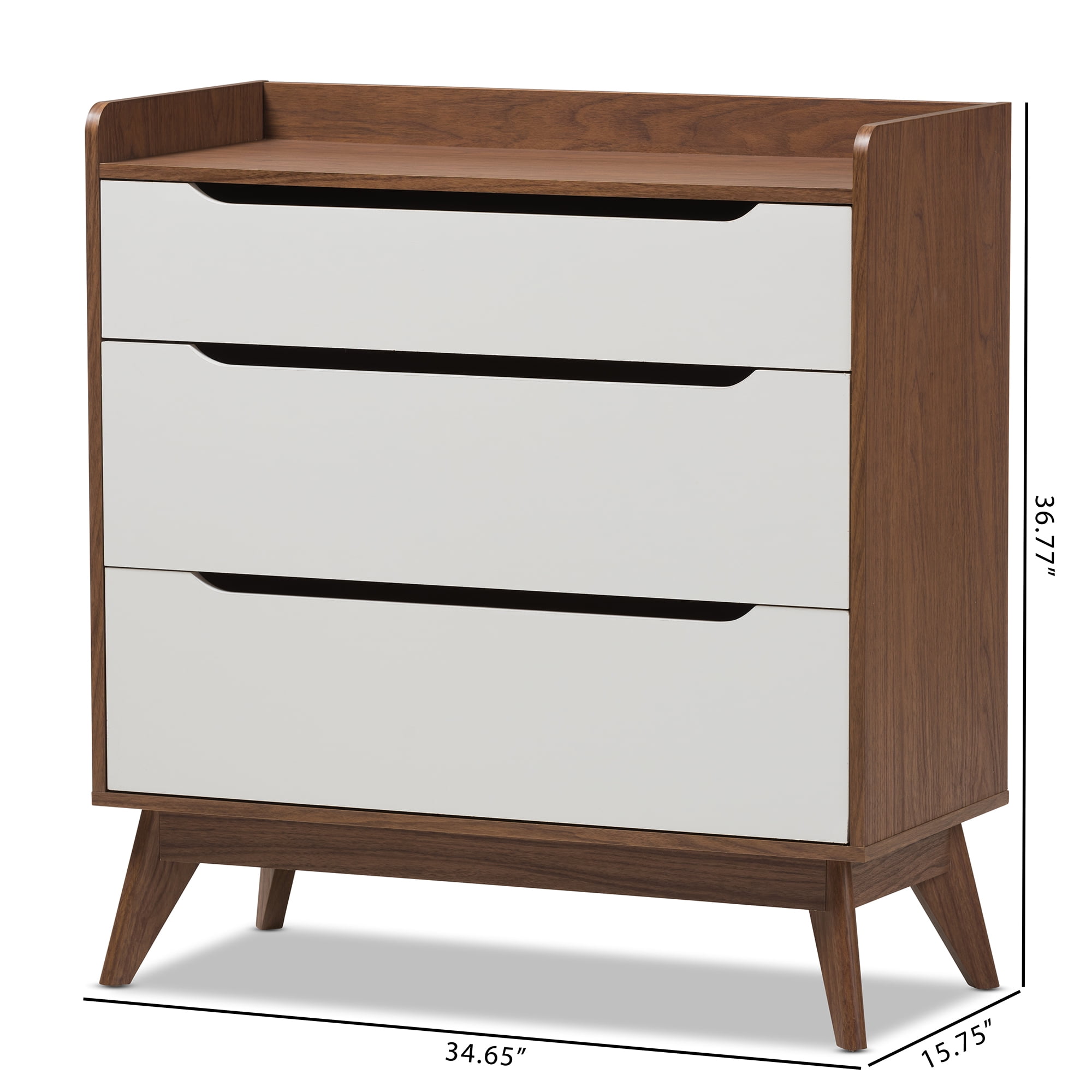 Bartel collection is a remake of a mid-century classic and bestseller, offering versatile storage with its drawers and shelf. Constructed of engineered wood and MDF, the Bartel 3-drawer storage chest is finished in white and walnut veneer for lasting good looks, suiting interiors from Scandinavian to contemporary. Featuring drawers with cut-out handles for a sleek and clean look, the Bartel provides storage solution for your clothes, lingerie’s, linen and your bedroom essentials. Practical top shelf surface allows you to decorate with flowers, photo frames and as an additional spot for books. Angular legs, for Scandinavian vibes in your space complete the look. Made in Malaysia, the Bartel 3-drawer chest requires assembly.