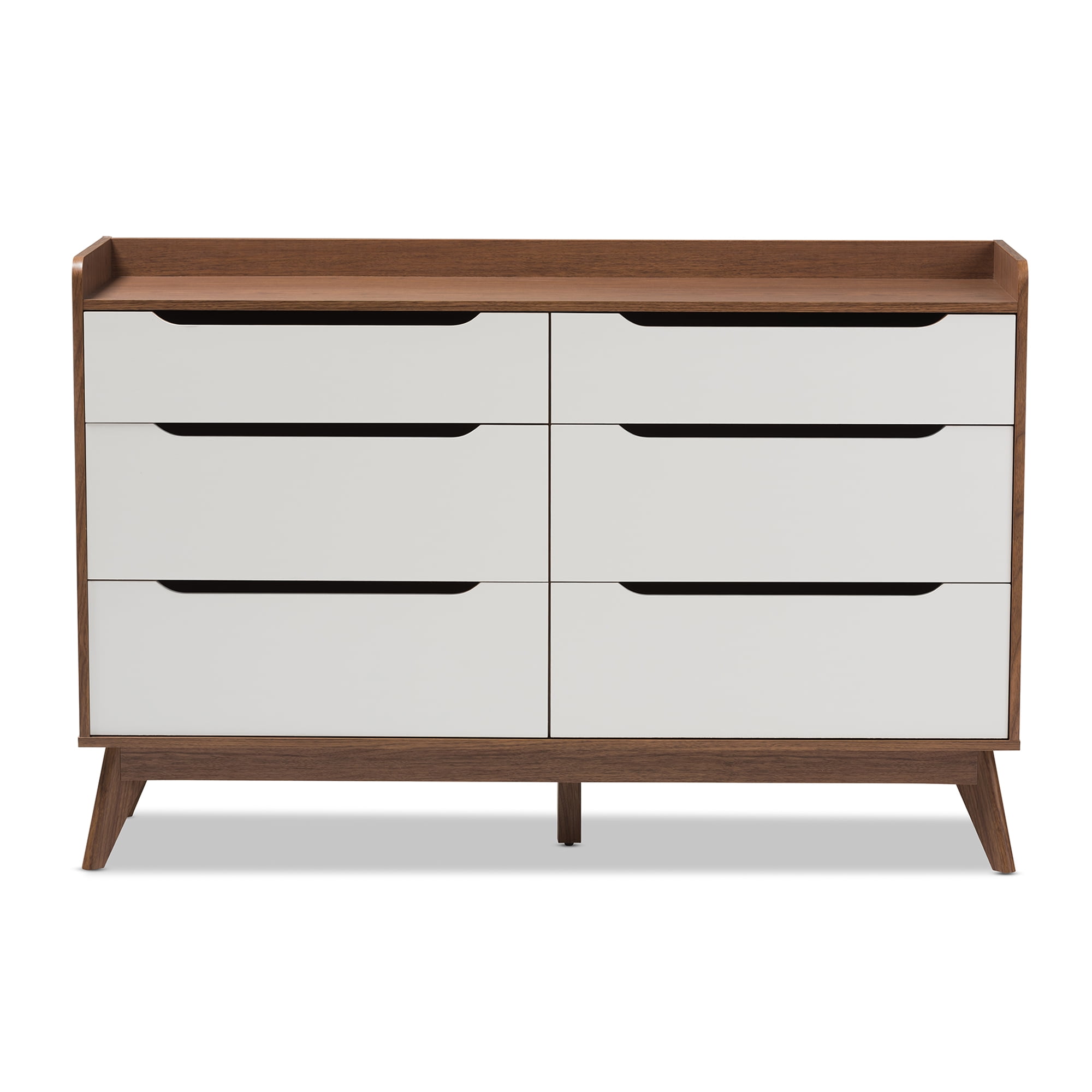 Bartel Modern White and Walnut Wood 6-Drawer Storage Dresser by Bellamy Studios