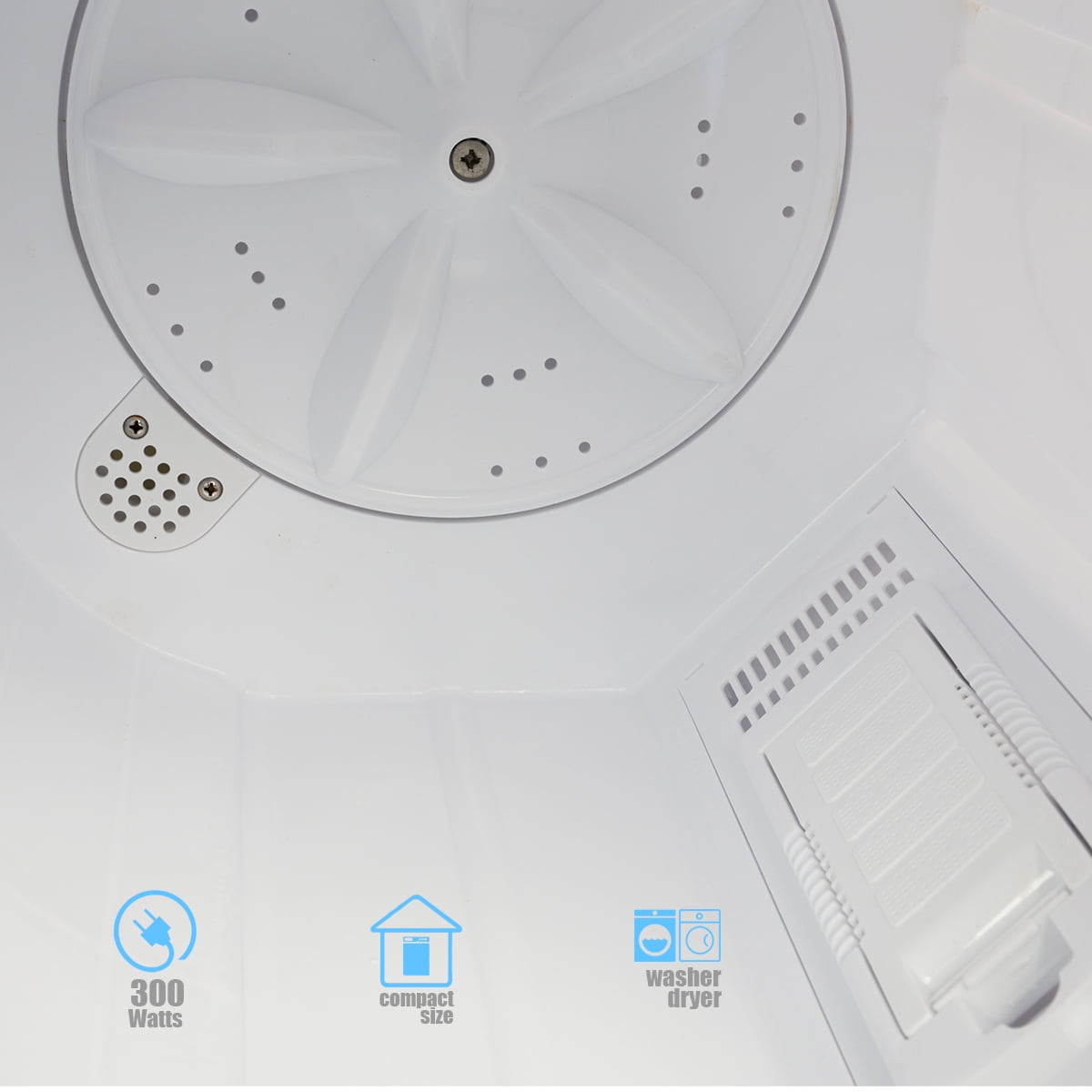 The portable compact washing machine is perfect solution for doing laundry in a compact environment. The washer features load capacity for doing light to medium laundry loads. Easily select wash or dry spin and the machine will automatically stop when the load is done. Our machine features a drainage tube which allows you to easily drain out dirty water. Save water and electricity by only washing what is needed. Features: Great for dorms, apartments, condos, motor homes, garage, RV’s, camping and more Easy to operate, and powerful allows you to simply put in your load of clothes, fill with water, set the timer and start washing Top Load allows you to simply put in your load of clothes, fill with water, set the timer and start washing This machine is ideal for doing small loads of delicate clothing like under garments, socks, towels and printed T-shirts Clear Lid allows you to see the wash and dry cycle and monitor the water condition Dual Function allows for a spin wash and spin dry at the same time Timer Control Washing machine with spin basket up to 15 minutes (WASH) and 5 minutes (SPIN) with the control timer Specifications: Color: White/Grey Wash Power: 300W Spin Power: 150W Voltage: 115/60Hz Load Type: Top Load Spin Timer: up to 5 minutes Wash Timer: up to 15 minutes Waterproof Rating: IPX4 Drain Type: Drain Pump Wash Capacity: 8.8lb (4KG) Spin Capacity: 4.4LB (2KG) Overall Dimensions: 31″(W) x 16″(L) x 25″(H) Package Content: Electric Washing Machine Inlet Hose Drainage Tube Please understand it’s not a fully automatic washer, you may need a little more work between washing and spinning