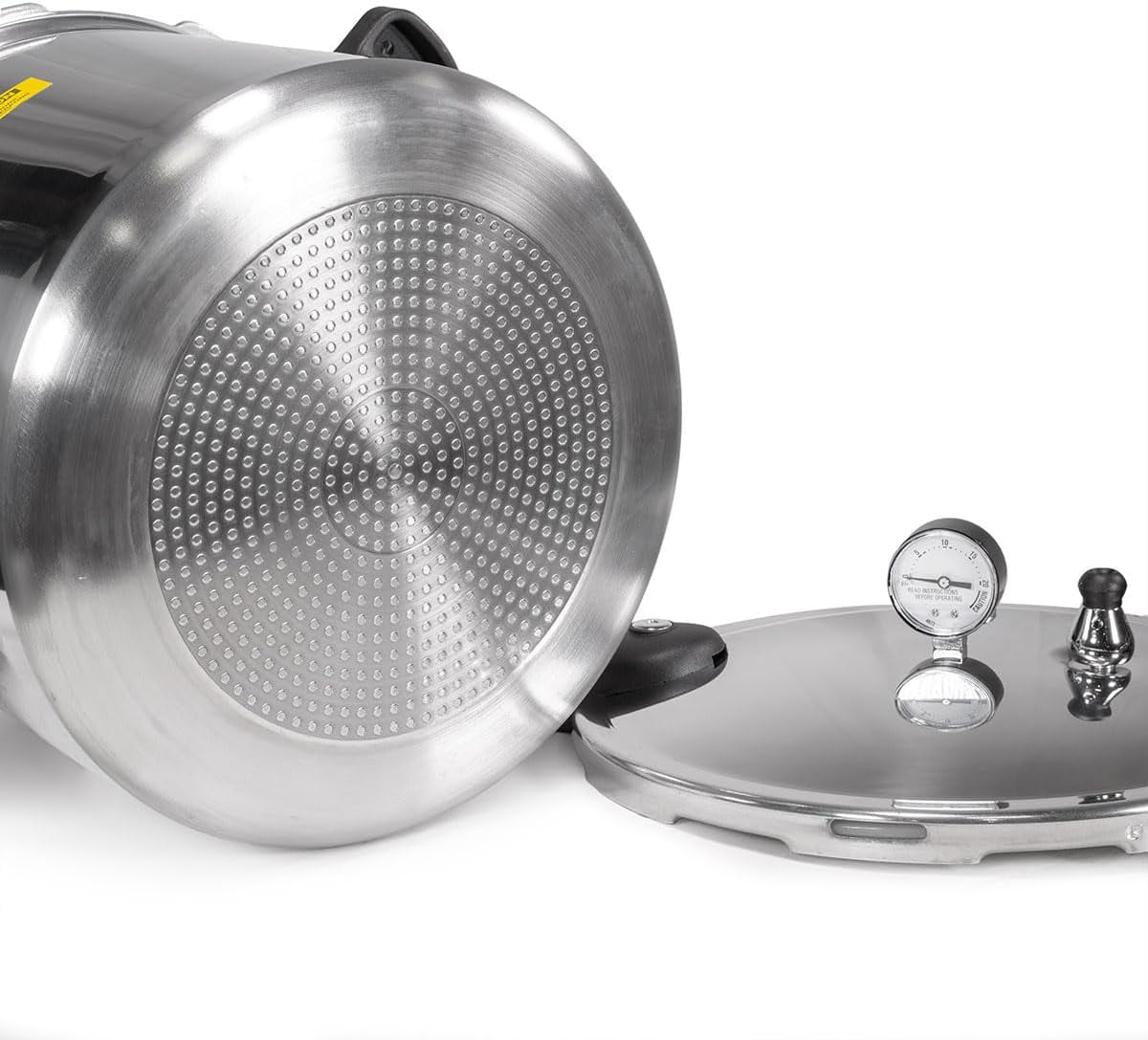 Dual Canning Capability: Use it for both pressure canning low-acid foods like meats and vegetables, or as a boiling water bath for acidic recipes such as fruits and pickles. Premium Gauge Monitoring: Equipped with a deluxe pressure dial gauge that measures from 0 to 20 PSI for accurate and consistent processing, even in high-altitude regions. Heavy-Duty Aluminum Build: Crafted from polished, rustproof aluminum, this canner delivers reliable performance, quick heating, and long-lasting durability. Advanced Safety Systems: Designed with a spring-loaded safety device and a secure locking lid to ensure the cooker is never pressurized unless properly sealed. Versatile Cooktop Compatibility: Works seamlessly with a wide range of stovetops—including gas, electric, induction, and ceramic—making it easy to integrate into any kitchen. From preserving seasonal harvests to preparing meal-ready pantry staples, the Barton 22-Quart Pressure Canner is the dependable choice for home canning. Safe, precise, and made for every kitchen.