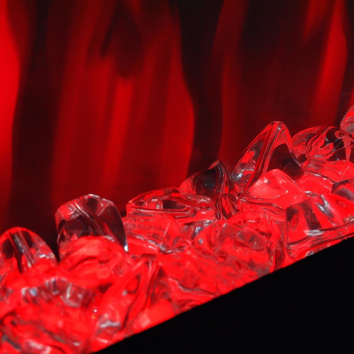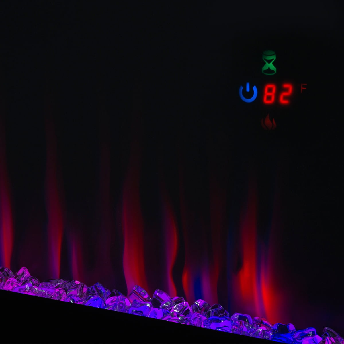 Barton provides a beautiful wall mount/built in fireplace option to enhance your favorite indoor living space. The slim design allows for either a wall mounted application. The crystal clear cube ember bed accents the modern flame appearance while the high power LED lights enhance the flames both day or night with various color options to customize your fireplace appearance. Features: All year around ambiance – Flame effect can be operated with or without heat, can work as non-heaters in warm days. The supplemental zone heating is for up to 400 square feet. It only takes 5 minutes to warm the room Slim Installation – 6-1/2″ inch depth allows partial recess installation* while unit simply plugs into standard 120V household outlet Realistic Flame Effects – 3 flame color modes, you can control them separately as you wish. It provides many kinds of combinations Safety and Comfort -,, Certificate Approved. It also has auto-heat kill safety to avoid the super heating. The infrared heat is good for maintaining the natural humidity within the air without making the room too dry This versatile fireplace also adds a cozy touch to a living room, bedroom, or office Specifications: Color: Black Power: 750/1500W Voltage: 120V/60Hz Amp: 12.5 Material: Steel, Tempered Glass Vent Direction: Top Heat Setting: 62-82F Timer: 1-8hr Certification: ,, Listed Heater Depth: 6-1/2″ Heater Width: 50″ Package Content: Electric Heater Remote Control Wallmount Bracket Pack of crystals Manual