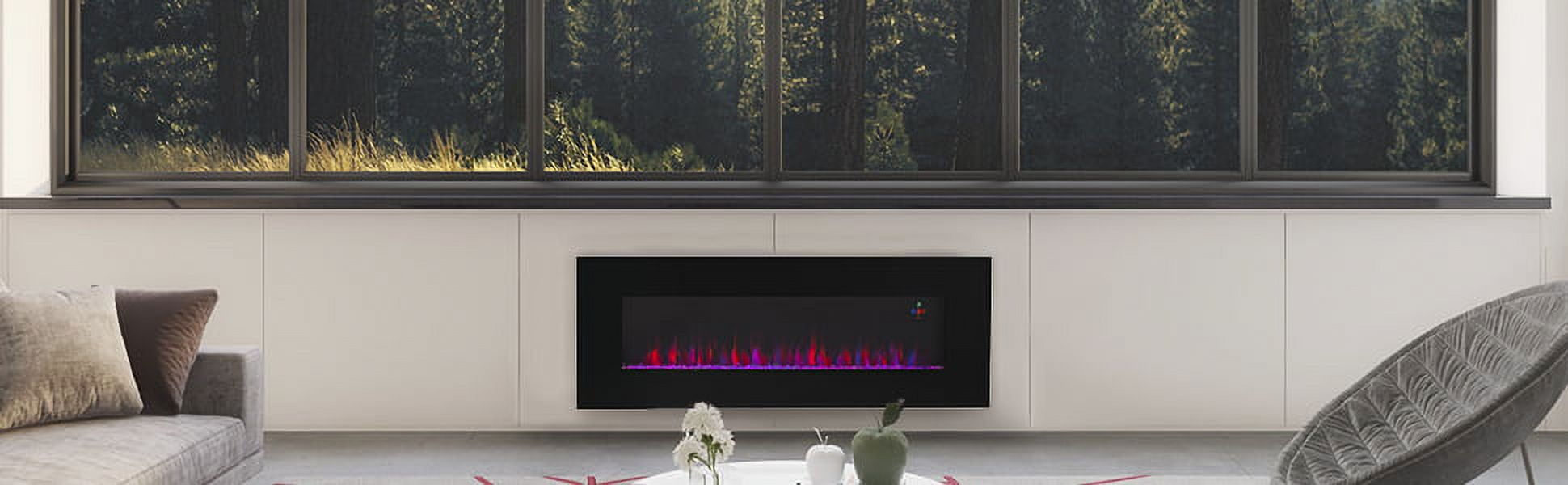 Barton 50″ Wall Mount Electric Fireplace Changeable Flame Glass + Remote Control, 750W/1500W